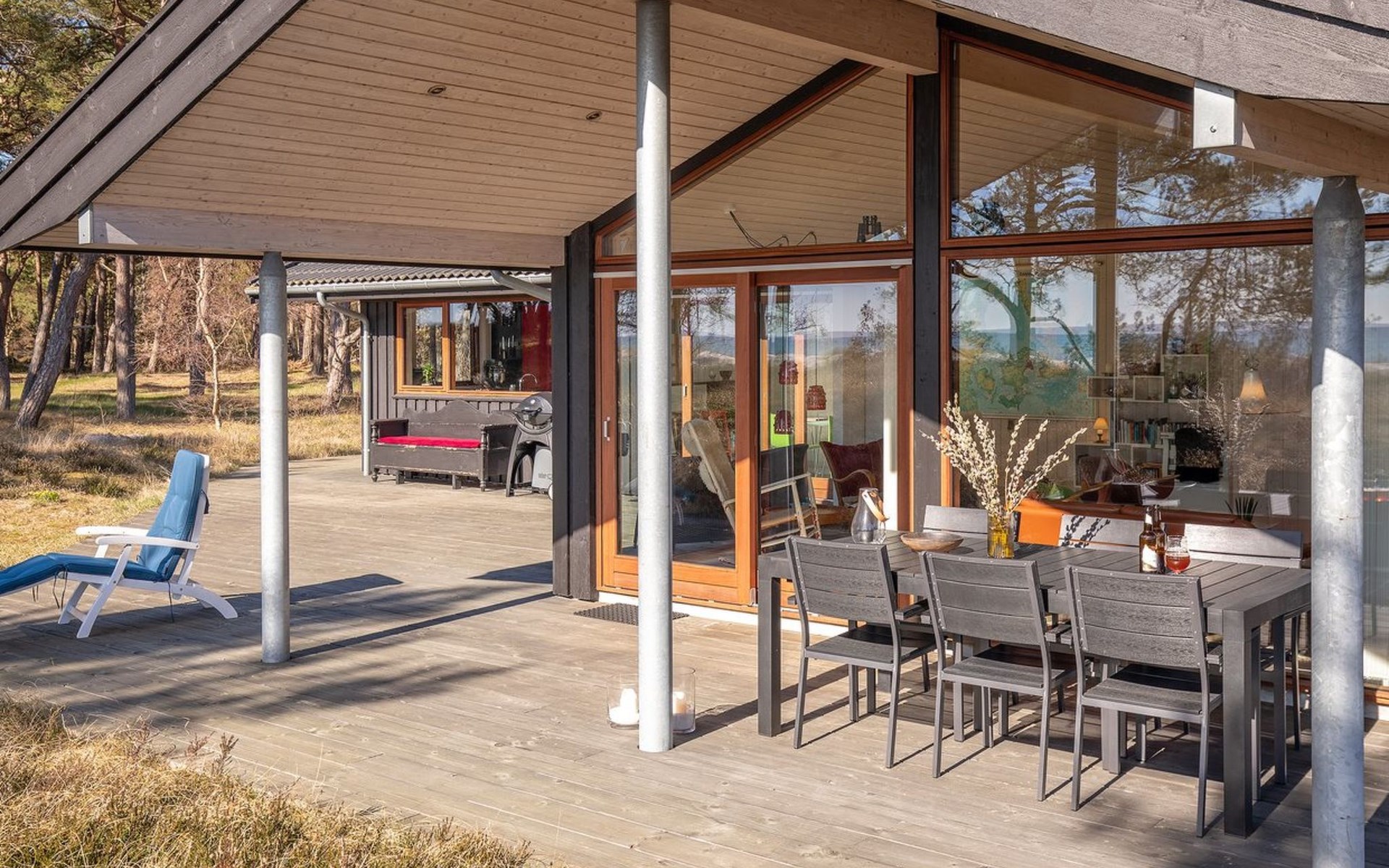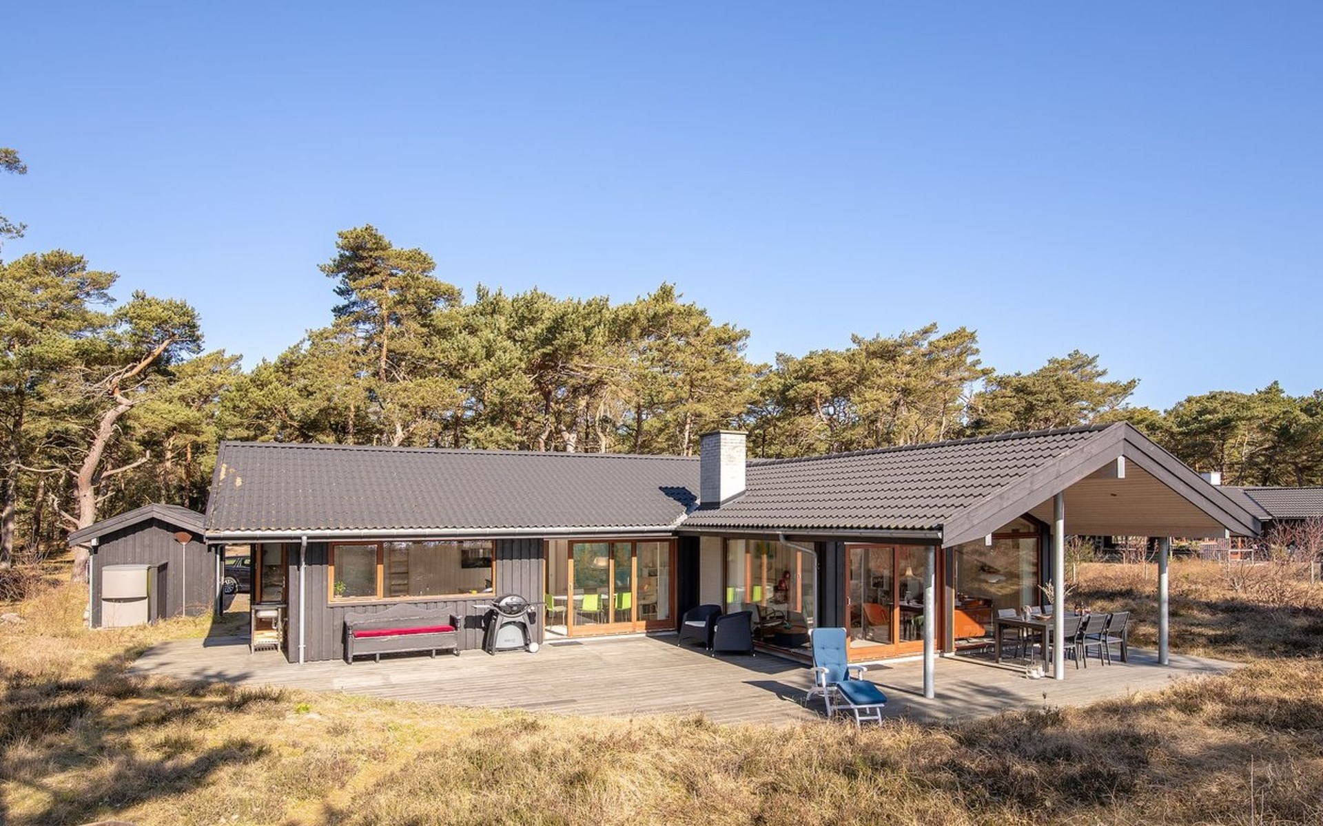 Einfamilienhaus, Baujahr 2013. 25 m vom Meer. Zur Alleinbenutzung: Grundstück 6'000 m2. Aussendusche, Terrasse (75 m2), Grill. Im Hause: Waschmaschine, Wäschetrockner. Parkplatz beim Haus. E-Ladestation. Lebensmittelgeschäft 1 km. Golfplatz 3 km. Der Besitzer akzeptiert keine Jugendgruppen.