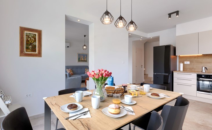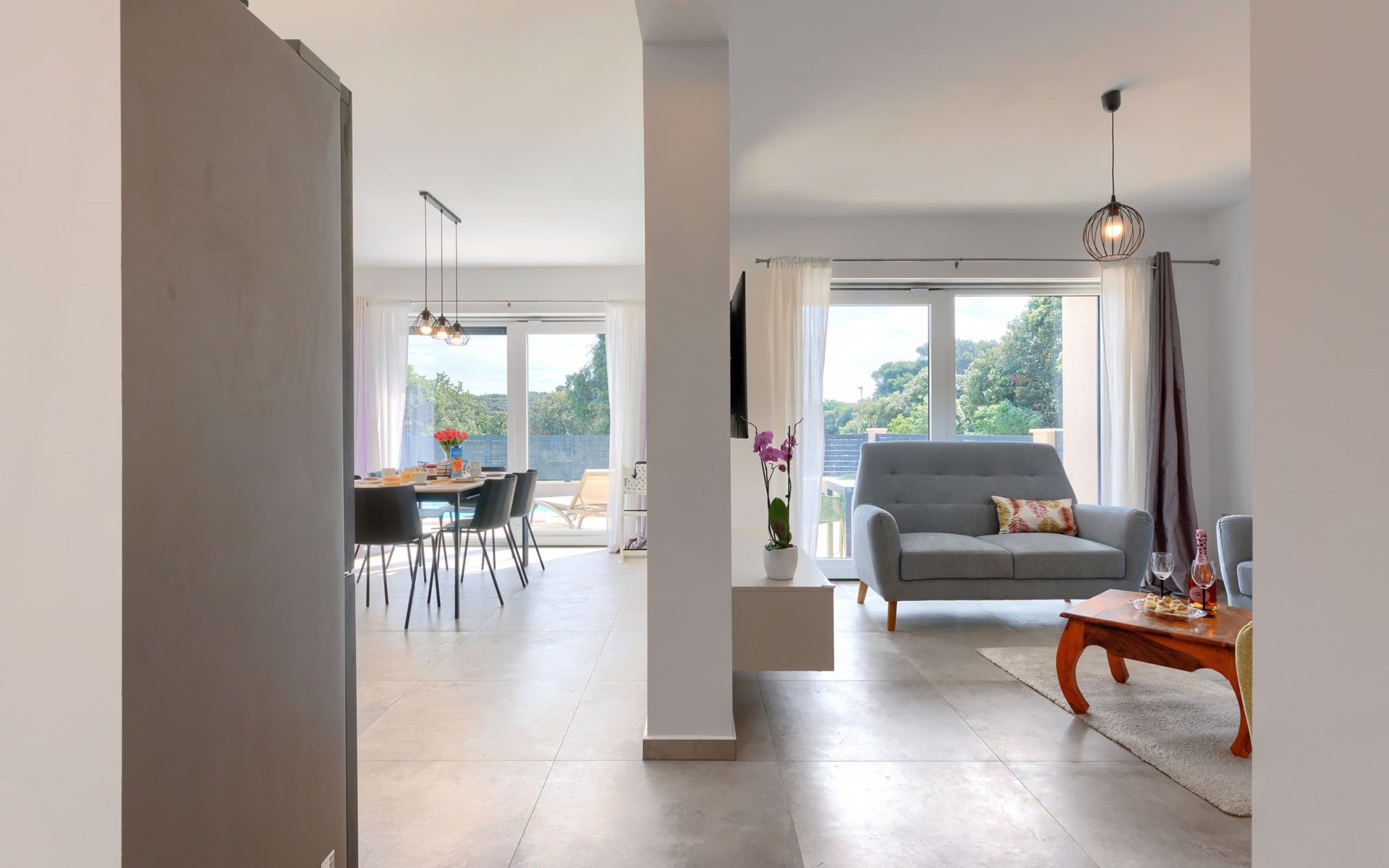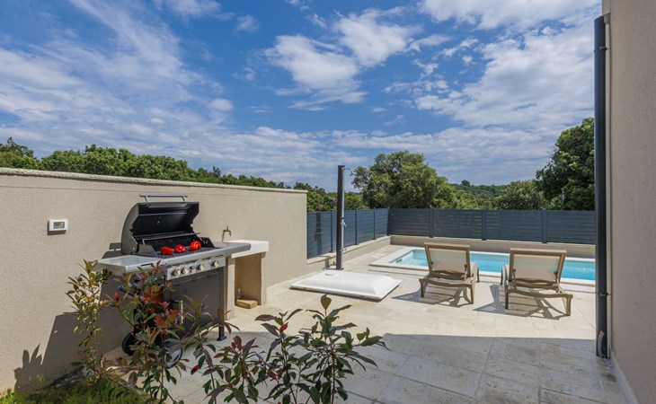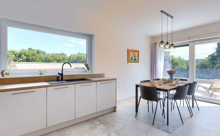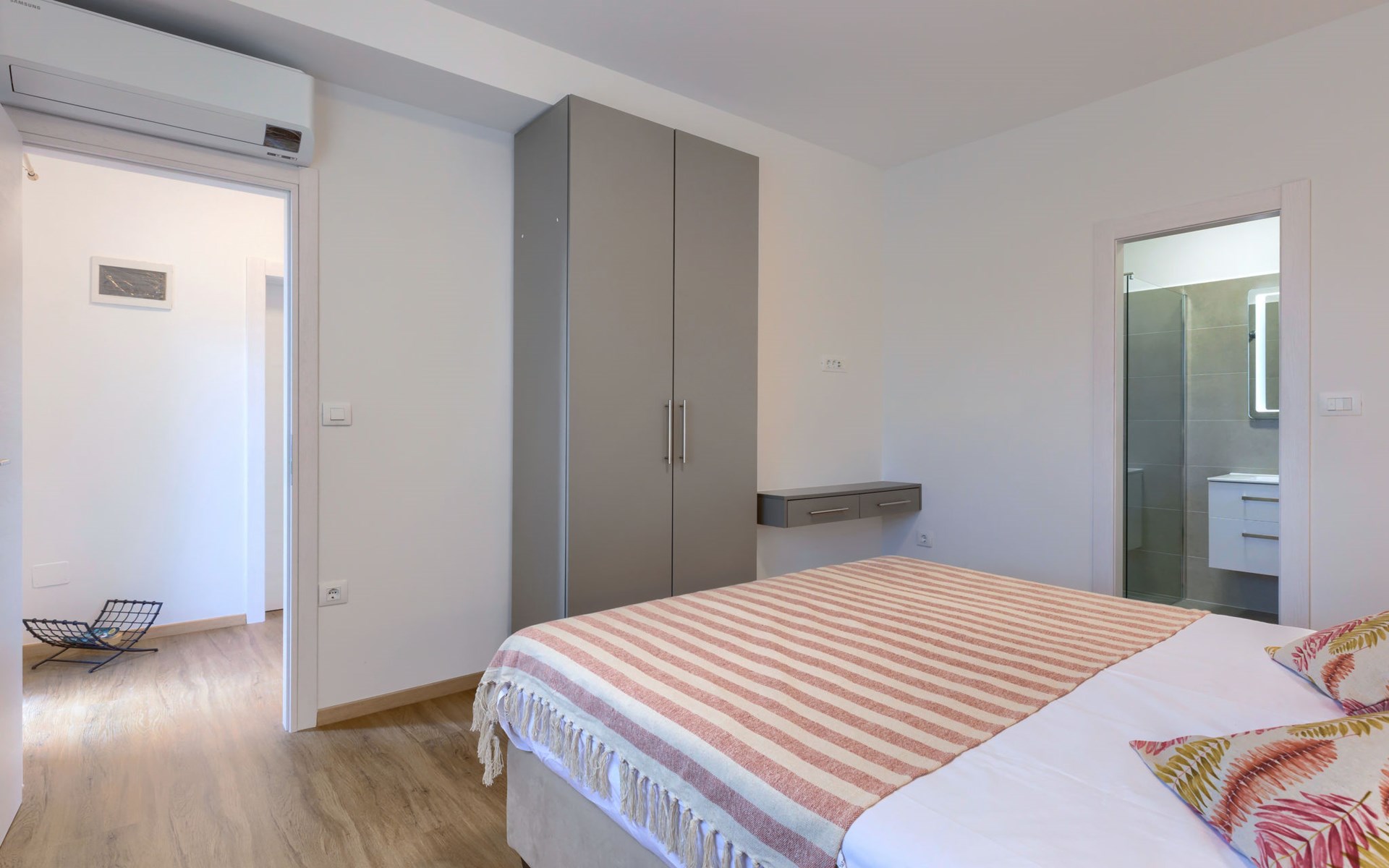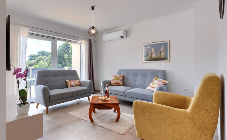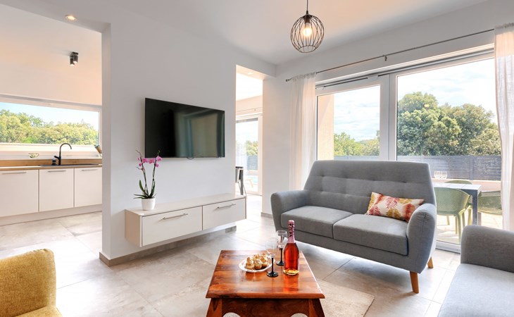 Doppelhaus "Villa Karlo". 4 km vom Zentrum von Pula, sonnige Lage, 900 m vom Meer. Zur Alleinbenutzung: Grundstück 300 m2 (eingezäunt), kleiner Garten mit Pflanzen, Schwimmbad eckig (6 x 3 m, 140 cm tief, saisonale Verfügbarkeit: 01.Mai. - 15.Okt.) mit Innentreppe. Aussendusche, Grill. Im Hause: Internetzugang, Tischtennis, Waschmaschine. Zufahrt (50 m Naturweg). Parkplatz (für 2 Autos) beim Haus auf dem Grundstück. Einkaufsgeschäft 100 m, Supermarkt 3 km, Restaurant 150 m, Bushaltestelle 260 m, Kieselstrand, Felsstrand 900 m. Surfschule 9 km, Tennis 9 km, Reitstall 9 km, Wanderwege ab Haus 100 m, Radweg 150 m. Der Besitzer akzeptiert keine Jugendgruppen.