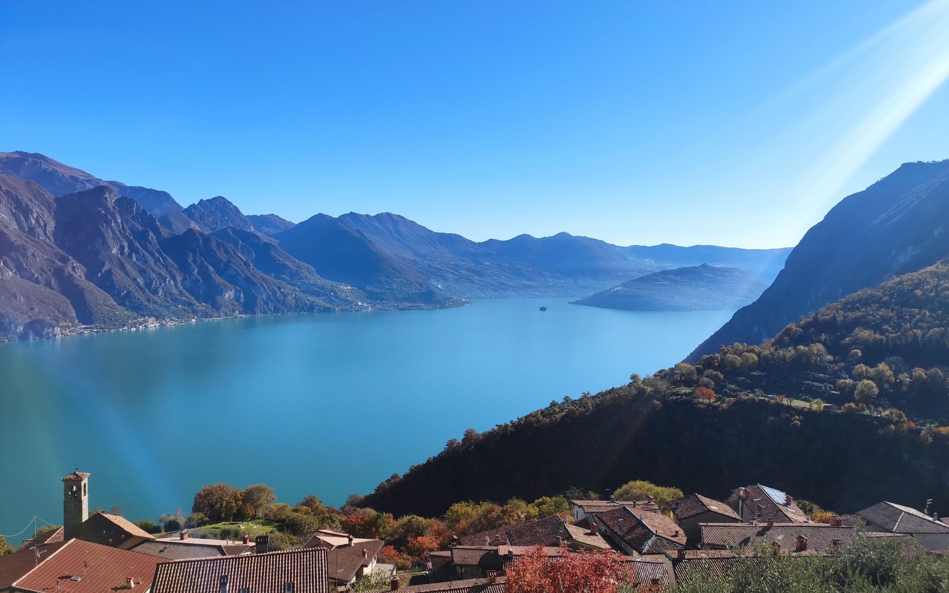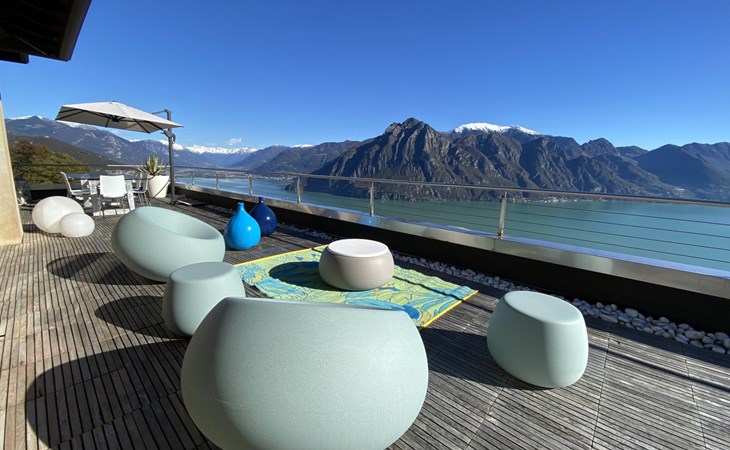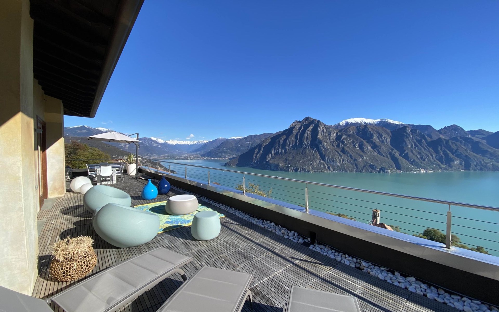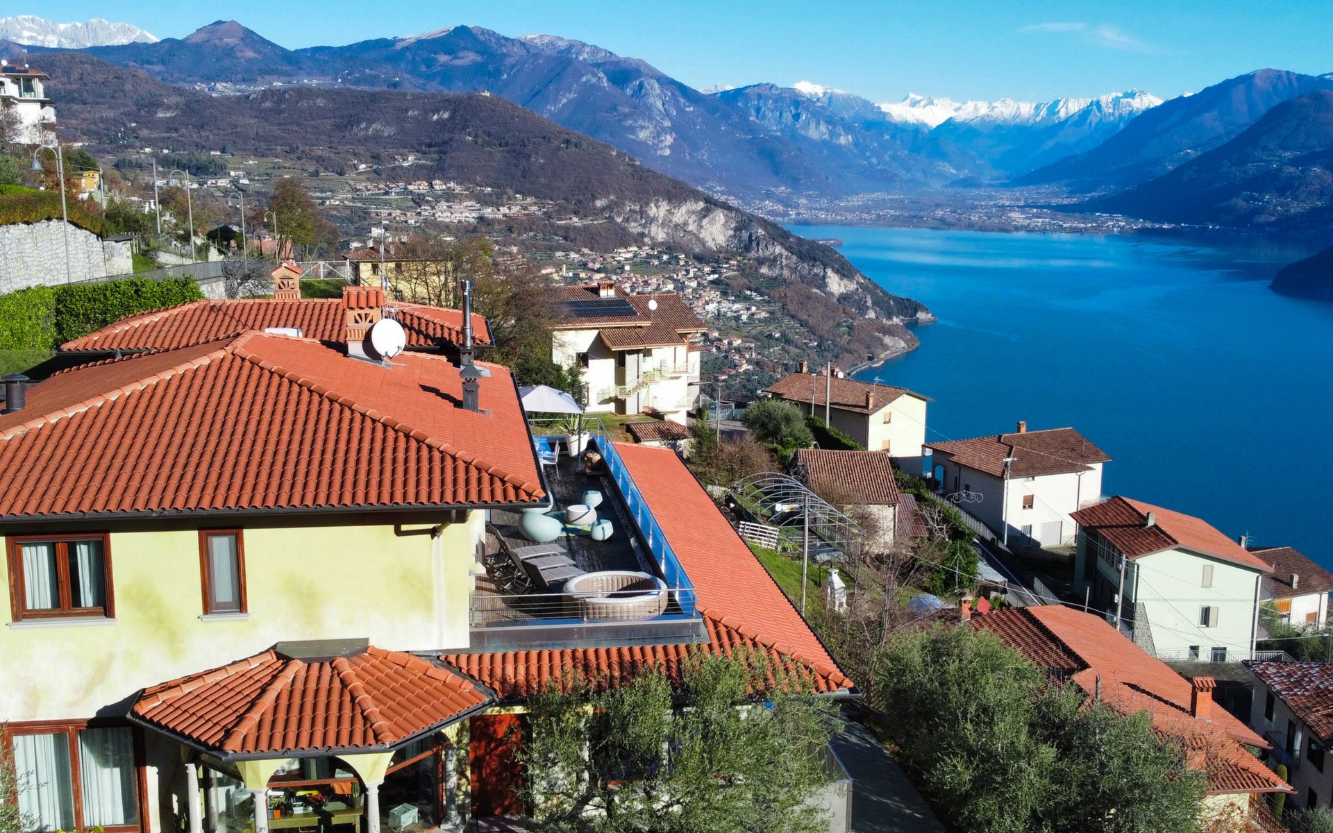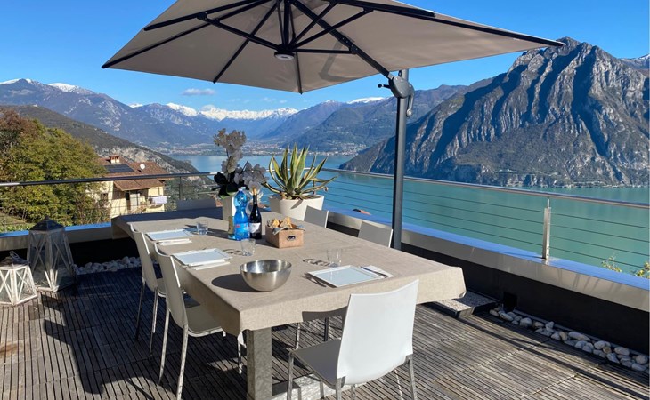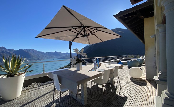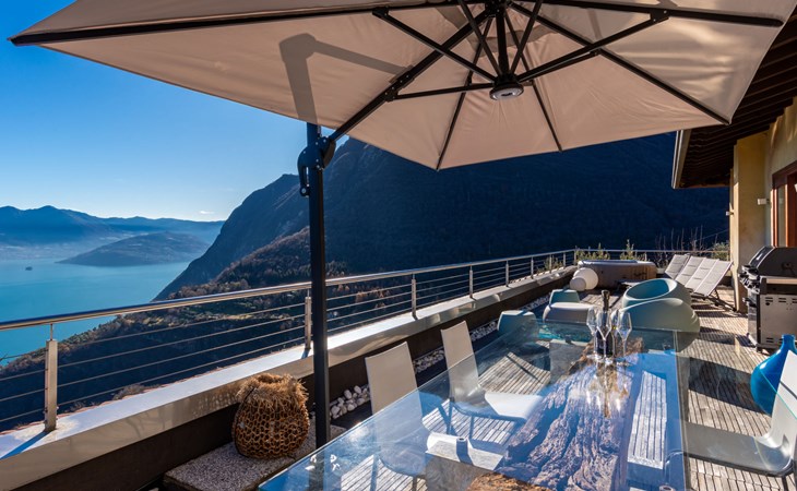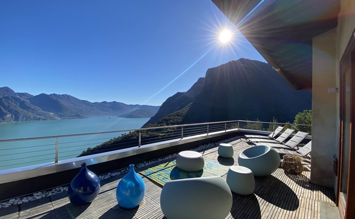 Schönes, freistehendes, komfortables Zweifamilienhaus "Xino Terrace View", 600 m.ü.M., auf 2 Stockwerken, umgeben von Bäumen. Im Weiler Xino, 2 km vom Zentrum von Fonteno, 6 km vom Zentrum von Riva di Solto, ruhige, sonnige Lage am Hang, im Villenviertel, 6 km vom See, Richtung Osten. Zur Alleinbenutzung: terrassierter Garten (eingezäunt) mit Bäumen, Liegewiese. Im Hause: Einstellraum für Fahrräder. Parkplatz (für 2 Autos) beim Haus, öffentliche Parkplätze auf der Strasse. Supermarkt 2 km, Restaurant, Bar 500 m, Bushaltestelle 1 km, Fähre "Riva di Solto" 6 km, Thermalbad "Boario Terme" 28 km. Nahe gelegene Sehenswürdigkeiten: Lovere 11 km, Sarnico 25 km, Franciacorta (DOCG wine region) 30 km, Iseo 35 km, Bergamo 41 km, Milano 90 km. Bitte beachten: Fahrzeug empfohlen.