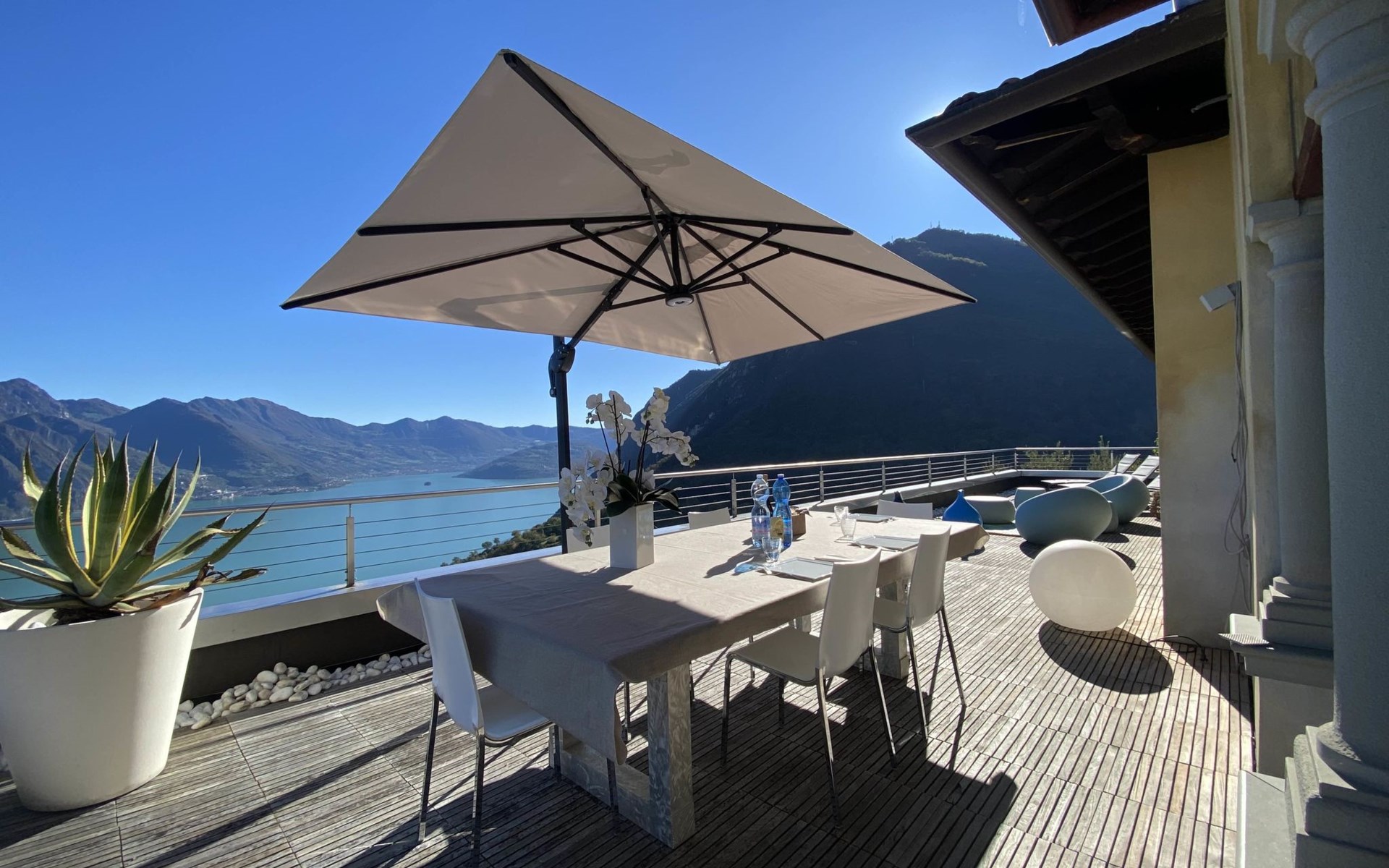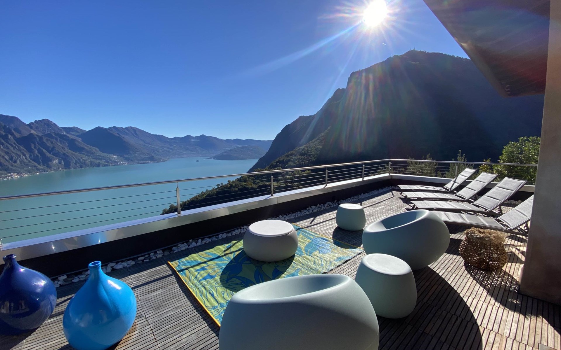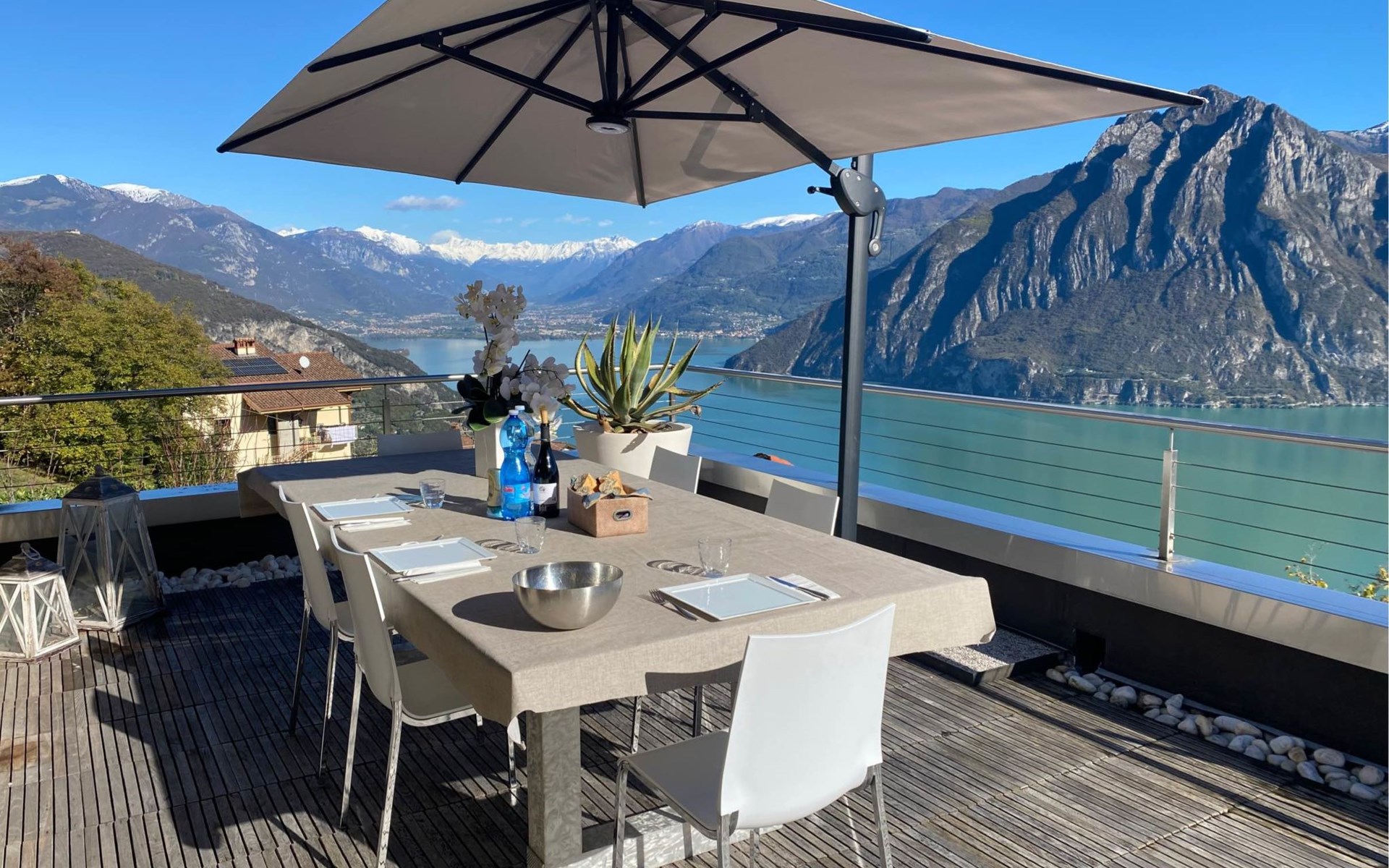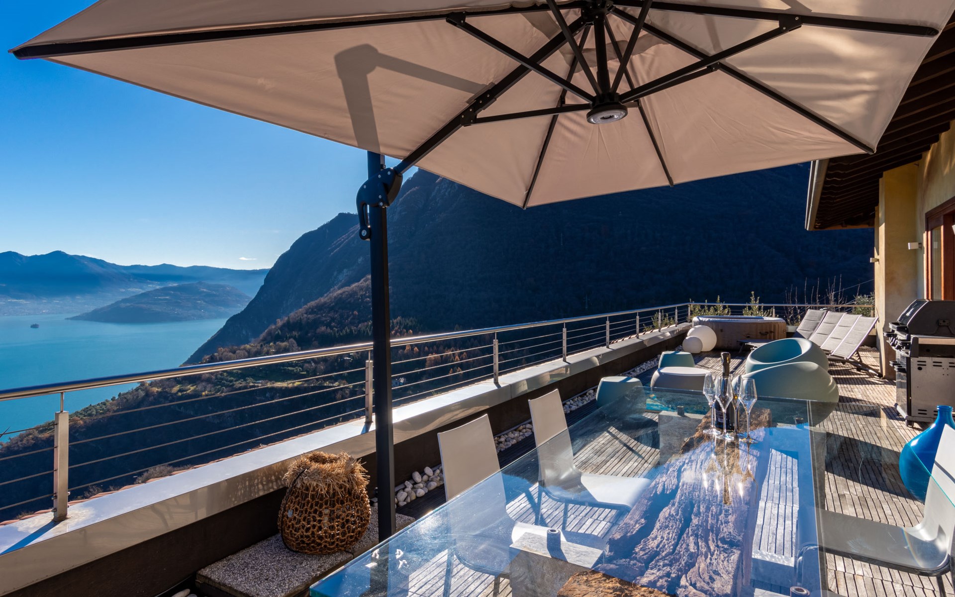 Schönes, freistehendes, komfortables Zweifamilienhaus "Xino Terrace View", 600 m.ü.M., auf 2 Stockwerken, umgeben von Bäumen. Im Weiler Xino, 2 km vom Zentrum von Fonteno, 6 km vom Zentrum von Riva di Solto, ruhige, sonnige Lage am Hang, im Villenviertel, 6 km vom See, Richtung Osten. Zur Alleinbenutzung: terrassierter Garten (eingezäunt) mit Bäumen, Liegewiese. Im Hause: Einstellraum für Fahrräder. Parkplatz (für 2 Autos) beim Haus, öffentliche Parkplätze auf der Strasse. Supermarkt 2 km, Restaurant, Bar 500 m, Bushaltestelle 1 km, Fähre "Riva di Solto" 6 km, Thermalbad "Boario Terme" 28 km. Nahe gelegene Sehenswürdigkeiten: Lovere 11 km, Sarnico 25 km, Franciacorta (DOCG wine region) 30 km, Iseo 35 km, Bergamo 41 km, Milano 90 km. Bitte beachten: Fahrzeug empfohlen.