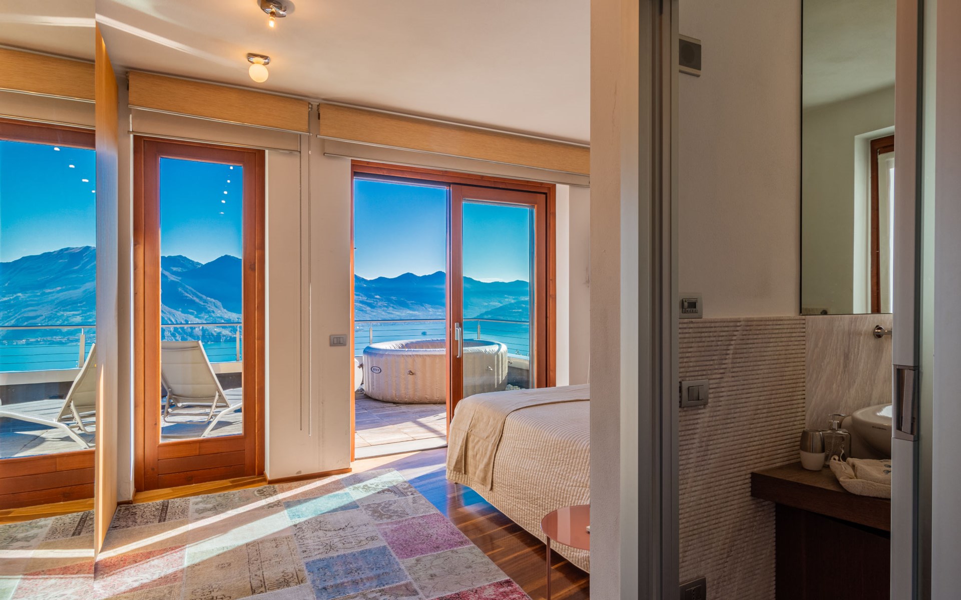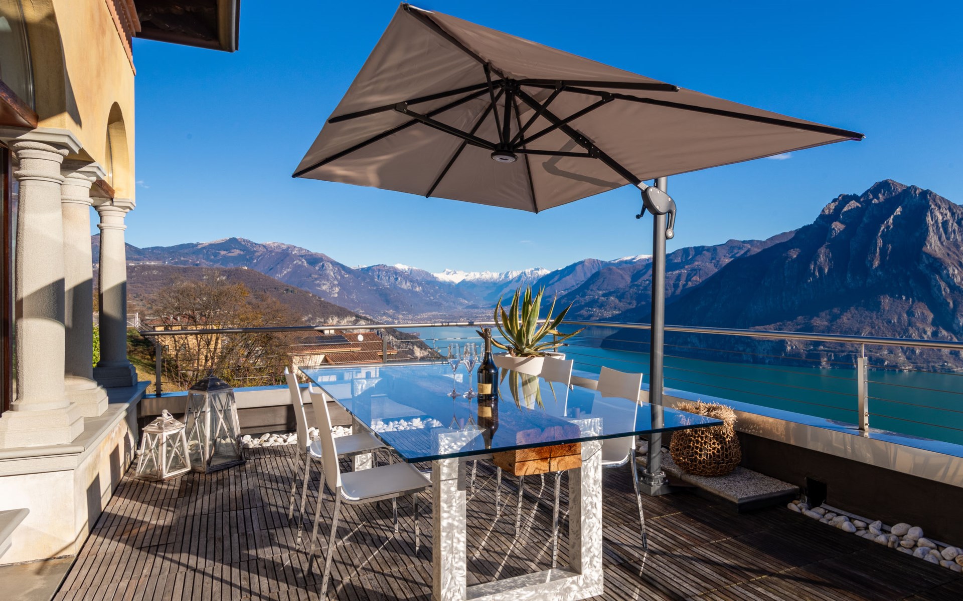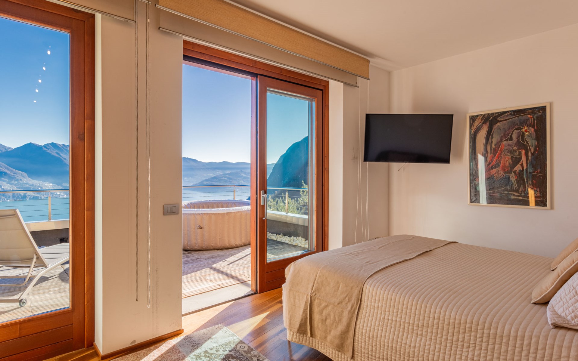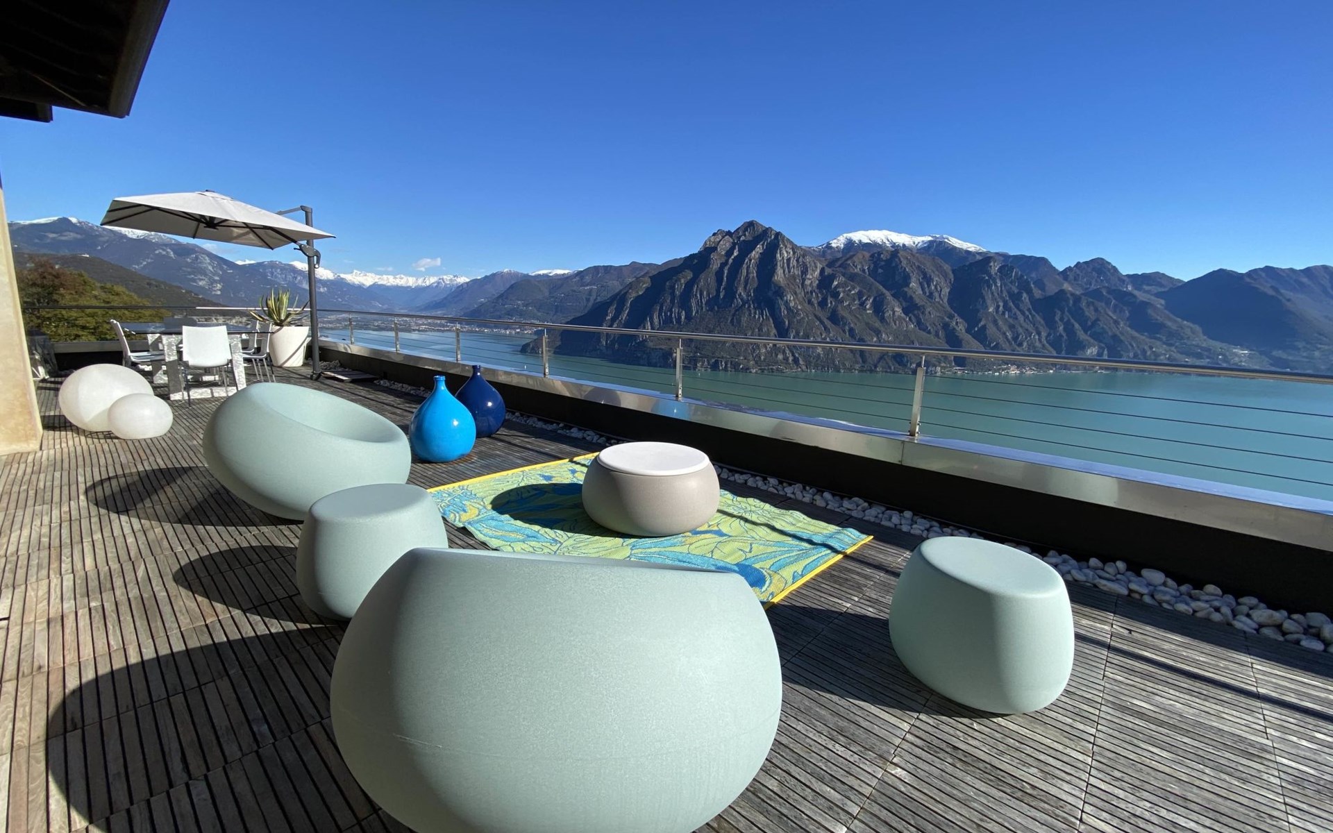 Schönes, freistehendes, komfortables Zweifamilienhaus "Xino Terrace View", 600 m.ü.M., auf 2 Stockwerken, umgeben von Bäumen. Im Weiler Xino, 2 km vom Zentrum von Fonteno, 6 km vom Zentrum von Riva di Solto, ruhige, sonnige Lage am Hang, im Villenviertel, 6 km vom See, Richtung Osten. Zur Alleinbenutzung: terrassierter Garten (eingezäunt) mit Bäumen, Liegewiese. Im Hause: Einstellraum für Fahrräder. Parkplatz (für 2 Autos) beim Haus, öffentliche Parkplätze auf der Strasse. Supermarkt 2 km, Restaurant, Bar 500 m, Bushaltestelle 1 km, Fähre "Riva di Solto" 6 km, Thermalbad "Boario Terme" 28 km. Nahe gelegene Sehenswürdigkeiten: Lovere 11 km, Sarnico 25 km, Franciacorta (DOCG wine region) 30 km, Iseo 35 km, Bergamo 41 km, Milano 90 km. Bitte beachten: Fahrzeug empfohlen.