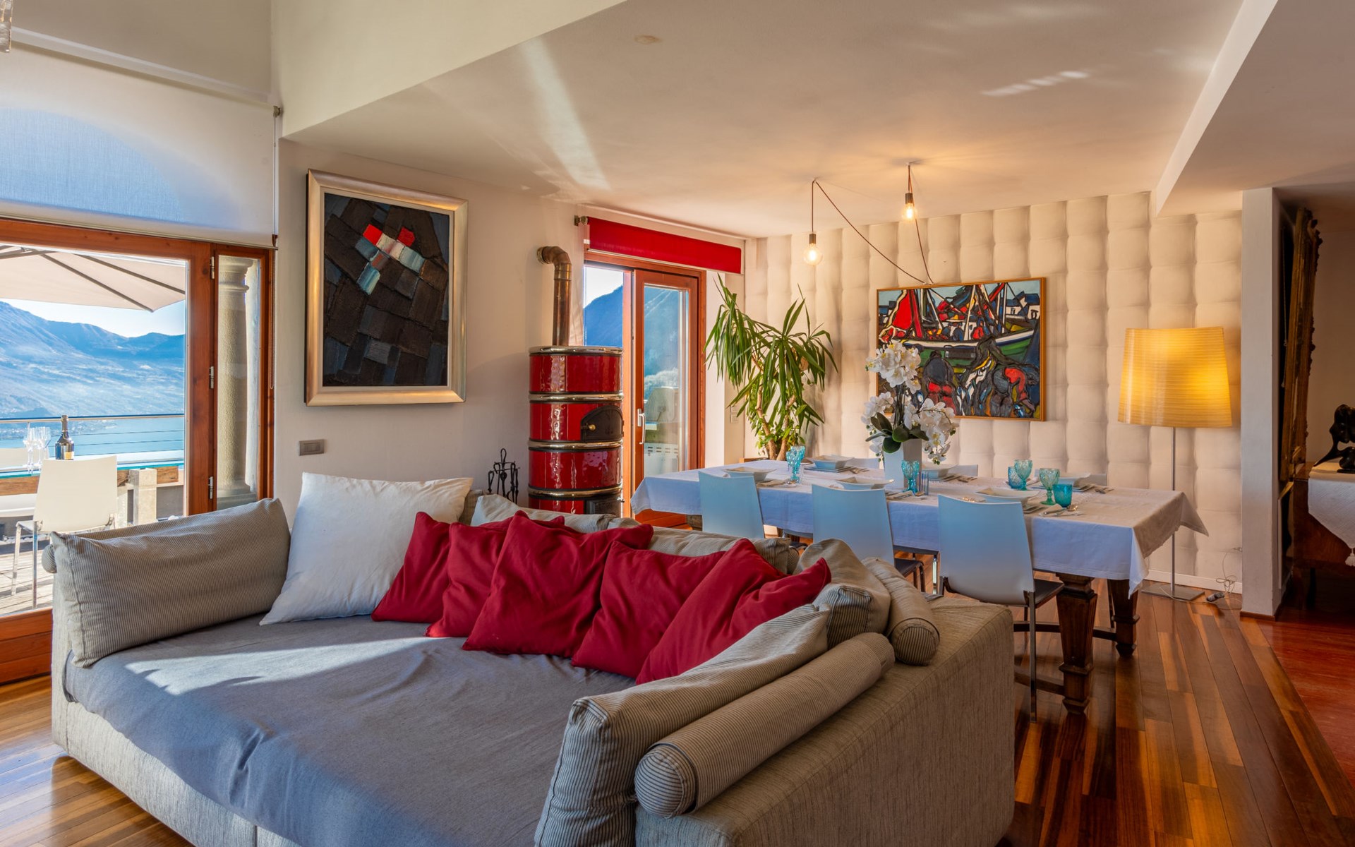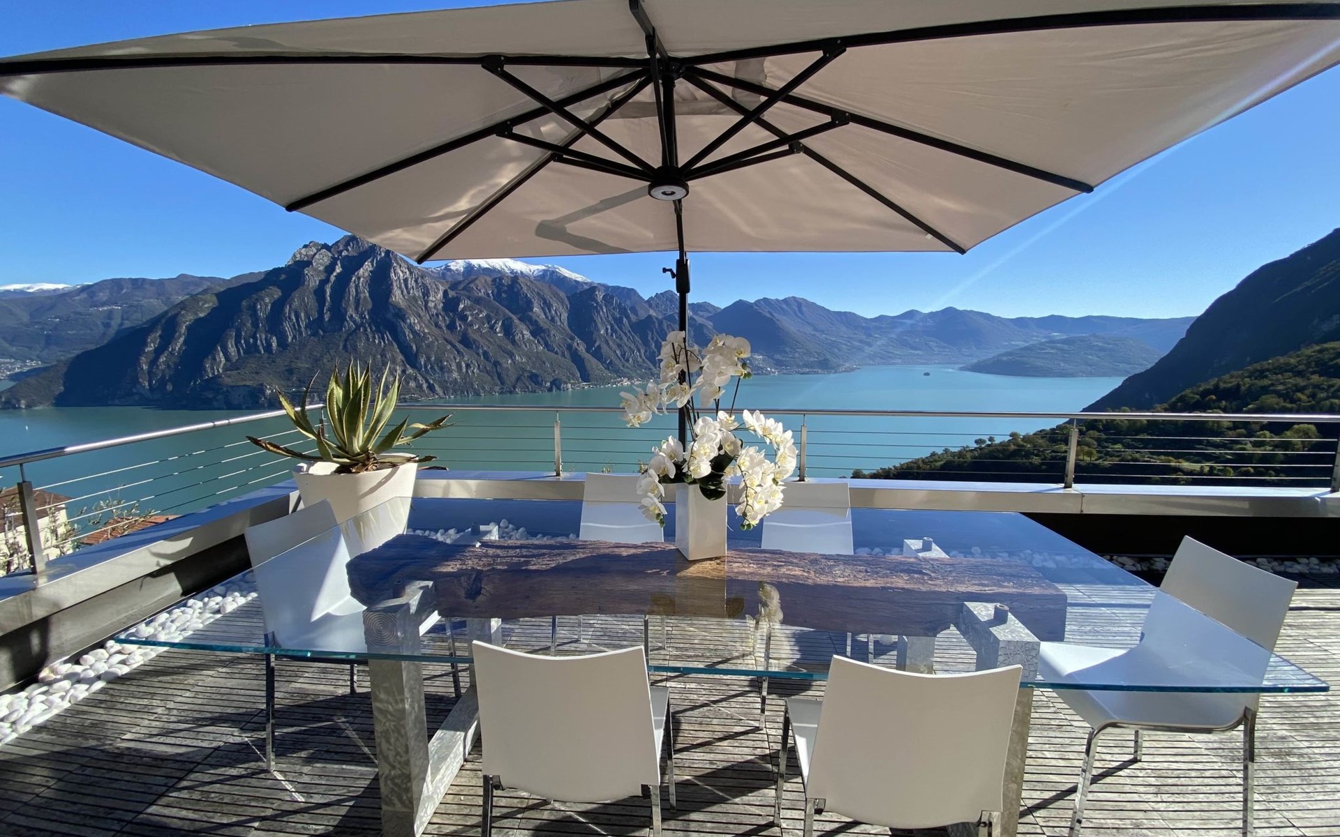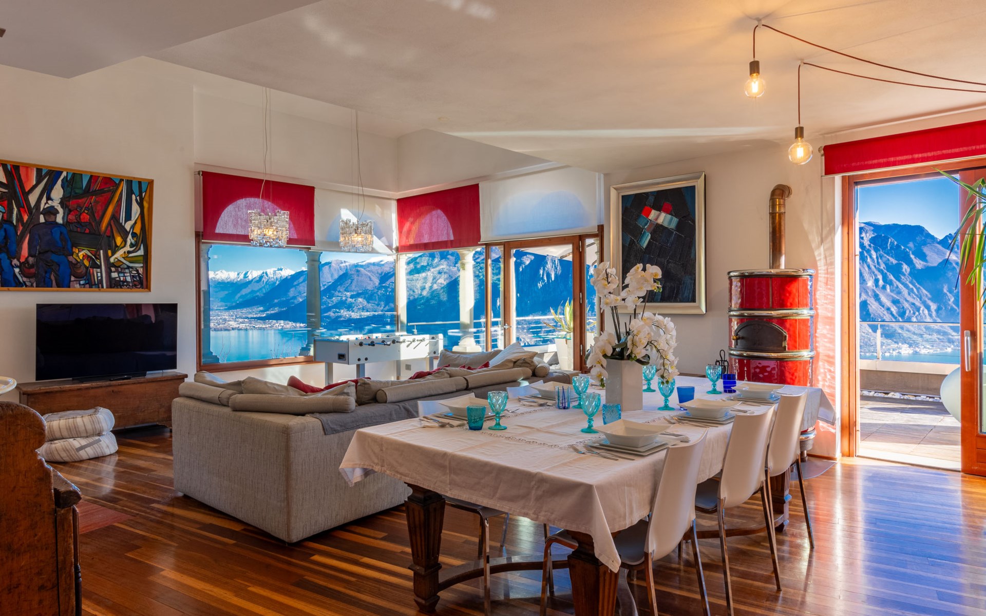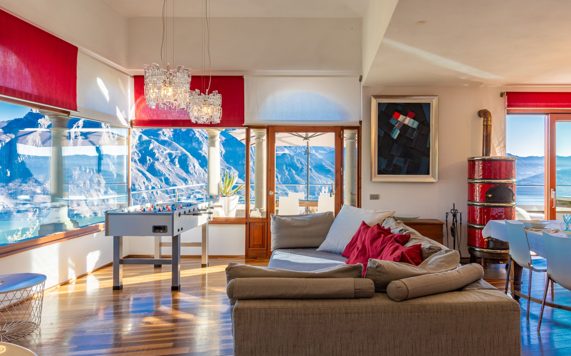 Schönes, freistehendes, komfortables Zweifamilienhaus "Xino Terrace View", 600 m.ü.M., auf 2 Stockwerken, umgeben von Bäumen. Im Weiler Xino, 2 km vom Zentrum von Fonteno, 6 km vom Zentrum von Riva di Solto, ruhige, sonnige Lage am Hang, im Villenviertel, 6 km vom See, Richtung Osten. Zur Alleinbenutzung: terrassierter Garten (eingezäunt) mit Bäumen, Liegewiese. Im Hause: Einstellraum für Fahrräder. Parkplatz (für 2 Autos) beim Haus, öffentliche Parkplätze auf der Strasse. Supermarkt 2 km, Restaurant, Bar 500 m, Bushaltestelle 1 km, Fähre "Riva di Solto" 6 km, Thermalbad "Boario Terme" 28 km. Nahe gelegene Sehenswürdigkeiten: Lovere 11 km, Sarnico 25 km, Franciacorta (DOCG wine region) 30 km, Iseo 35 km, Bergamo 41 km, Milano 90 km. Bitte beachten: Fahrzeug empfohlen.
