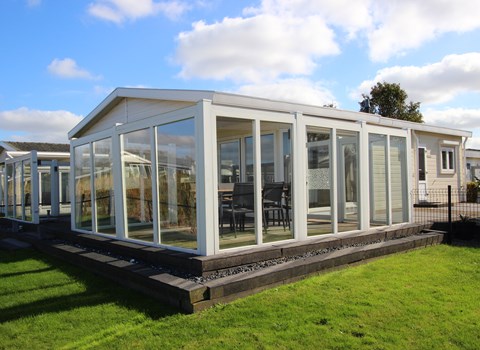 Draußen erwartet Sie eine große Terrasse mit Gartenmöbeln, ideal zum Entspannen an der frischen Luft. Einige Lodges verfügen sogar über ein Gartenhaus. Zudem gibt es einen privaten Parkplatz für ein Auto.