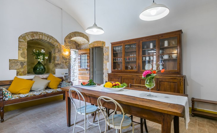 Stigliano 2 km von Rosia: Sehr alte, historische Residenz "La Torre", auf 5 Stockwerken, aus dem 12. Jahrhundert, umgeben von Bäumen und Wiesen. 3 Wohnungen im Ferienhaus. Oberhalb von Stigliano, 1 km vom Zentrum von Rosia, 5 km vom Zentrum von Sovicille, 20 km vom Zentrum von Siena, sonnige, erhöhte Lage, 100 m vom Waldrand, 70 km vom Meer, 4.5 km vom Fluss. Zur Mitbenutzung: Grundstück 1'000 m2 (eingezäunt), terrassierter Garten Bäumen. Grill. Im Hause: Aufenthaltsraum mit TV, Waschmaschine (zur Mitbenutzung). Parkplatz beim Haus auf dem Grundstück. Einkaufsgeschäft 2 km, Lebensmittelgeschäft 2 km, Supermarkt 2 km, Restaurant 300 m, Bäckerei 2 km, Bushaltestelle "Rosia" 2 km, Bahnstation "Siena" 20 km, Sandstrand "Follonica" 70 km, Thermalbad "Terme di Petriolo" 21 km. Golfplatz (18 Loch) 7.5 km. Nahe gelegene Sehenswürdigkeiten: Montalcino 45 km, San Gimignano 46 km, Massa Marittima 52 km, Pienza 62 km, Firenze 87 km. Bitte beachten: kein Fahrstuhl vorhanden. Babyausstattung (inkl.). Besitzer wohnt in separatem Hausteil. Alle Häuser/Wohnungen sind individuell eingerichtet.