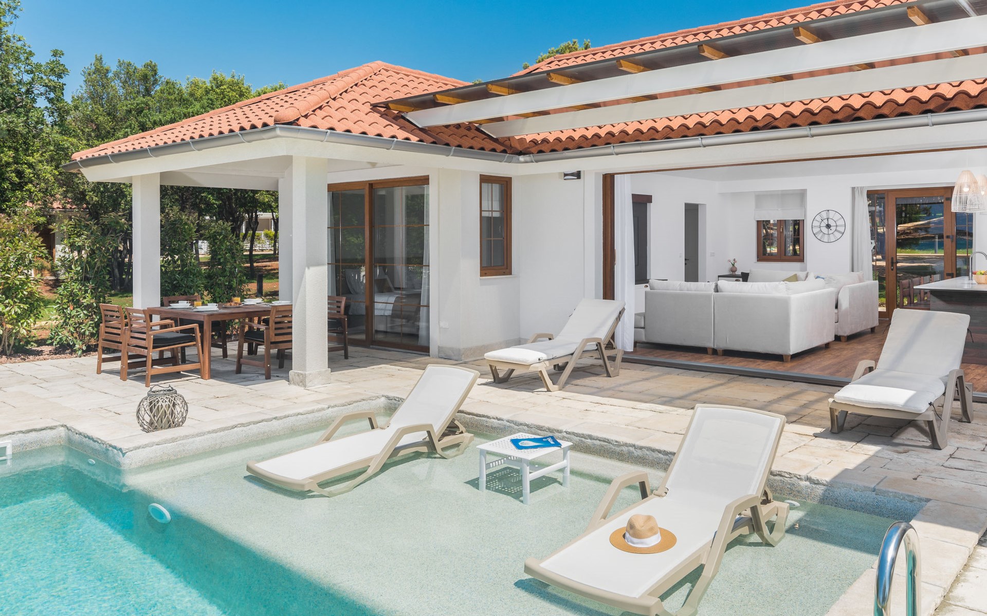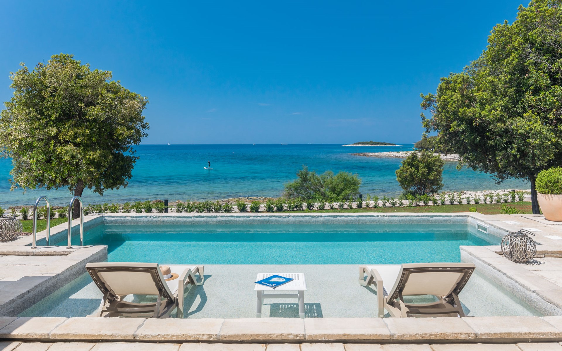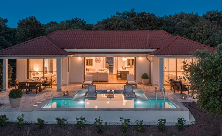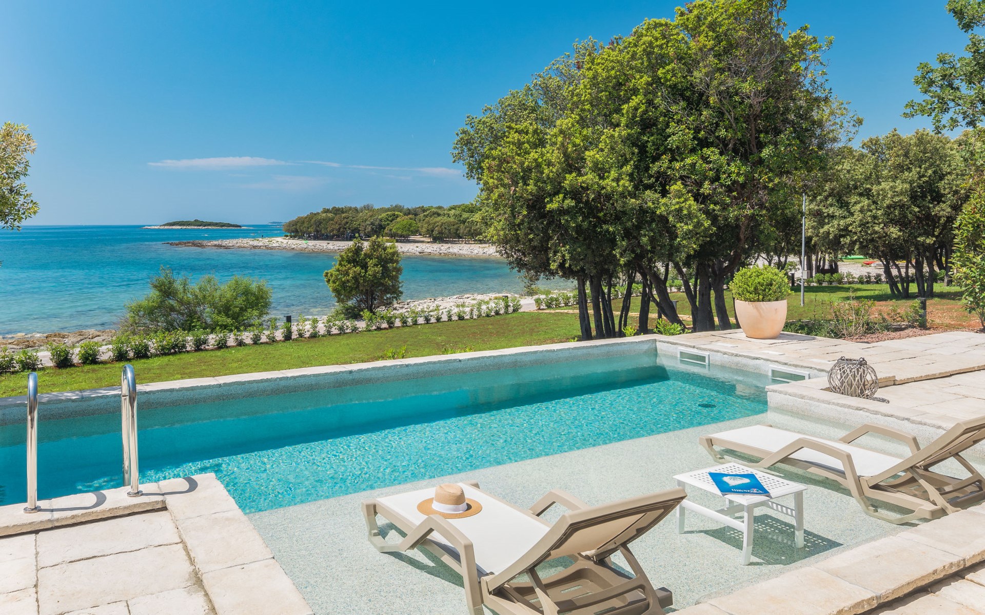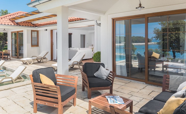 Kinderfreundliche Ferienanlage "Mon Perin". 6 km vom Zentrum von Bale, 17 km vom Zentrum von Rovinj, ruhige, sonnige Lage, direkt am Meer, direkt am Strand. Zur Mitbenutzung: Grundstück mit Bäumen, Schwimmbad (400 m2, 45 - 135 cm tief, saisonale Verfügbarkeit: 18.Mai. - 21.Sep.). Kinderbecken, Tennis, Basketball, Boccia, Beachvolleyball, Kinderspielplatz, Poolpflege durch den Besitzer/Gärtner. Zur Alleinbenutzung: Grundstück 1'000 m2 mit Rasen und Bäumen, Schwimmbad eckig, beheizt (6 x 3 m, 135 cm tief, saisonale Verfügbarkeit: 30.Mai. - 03.Okt.) mit Innentreppe. Terrasse, Poolpflege durch den Besitzer/Gärtner. In der Anlage: Restaurant, Bar, Internetzugang, Sauna (extra). Sprudelbad, Infrarotwärmekabine, Ruheraum, Wellnessbereich Hamam, Tischfussball, Einkaufsmöglichkeit, Wäscherei (zur Mitbenutzung, extra), Fahrradverleih. Parkplatz beim Haus auf dem Grundstück. E-Ladestation. Bushaltestelle 2.3 km, Kieselstrand "Mon Perin", Felsstrand "Mon Perin". Reitstall 500 m, Wanderwege ab Haus 100 m, Radweg 150 m. Bitte beachten: Animation. Das Camp verfügt über ein weiteres Kinderbecken (90 m2, 60 cm tiefe, geöffnet vom 01.06.-03.10.). Wellness und Spa mit Innenpool sind nur für Erwachsene ab 18 Jahren.