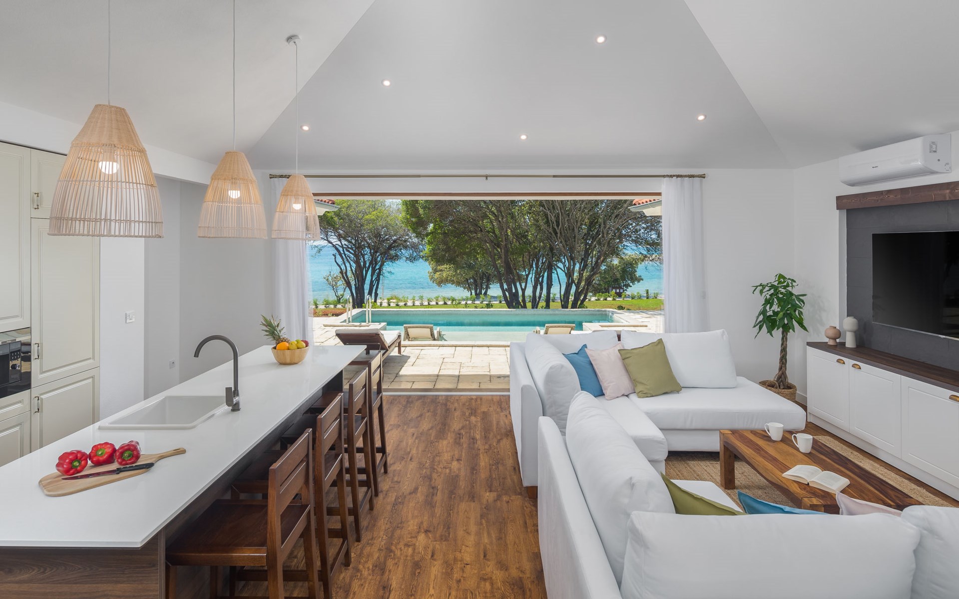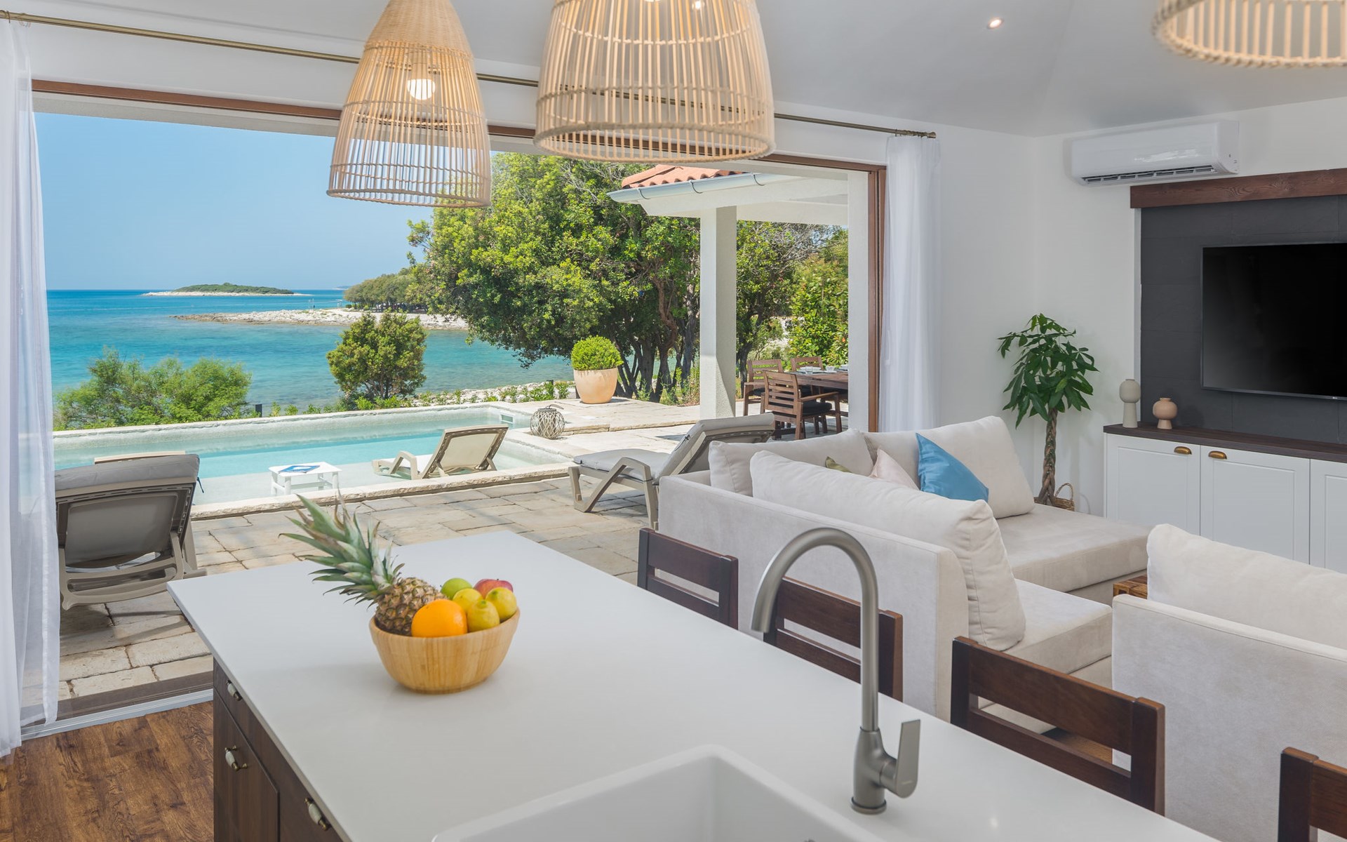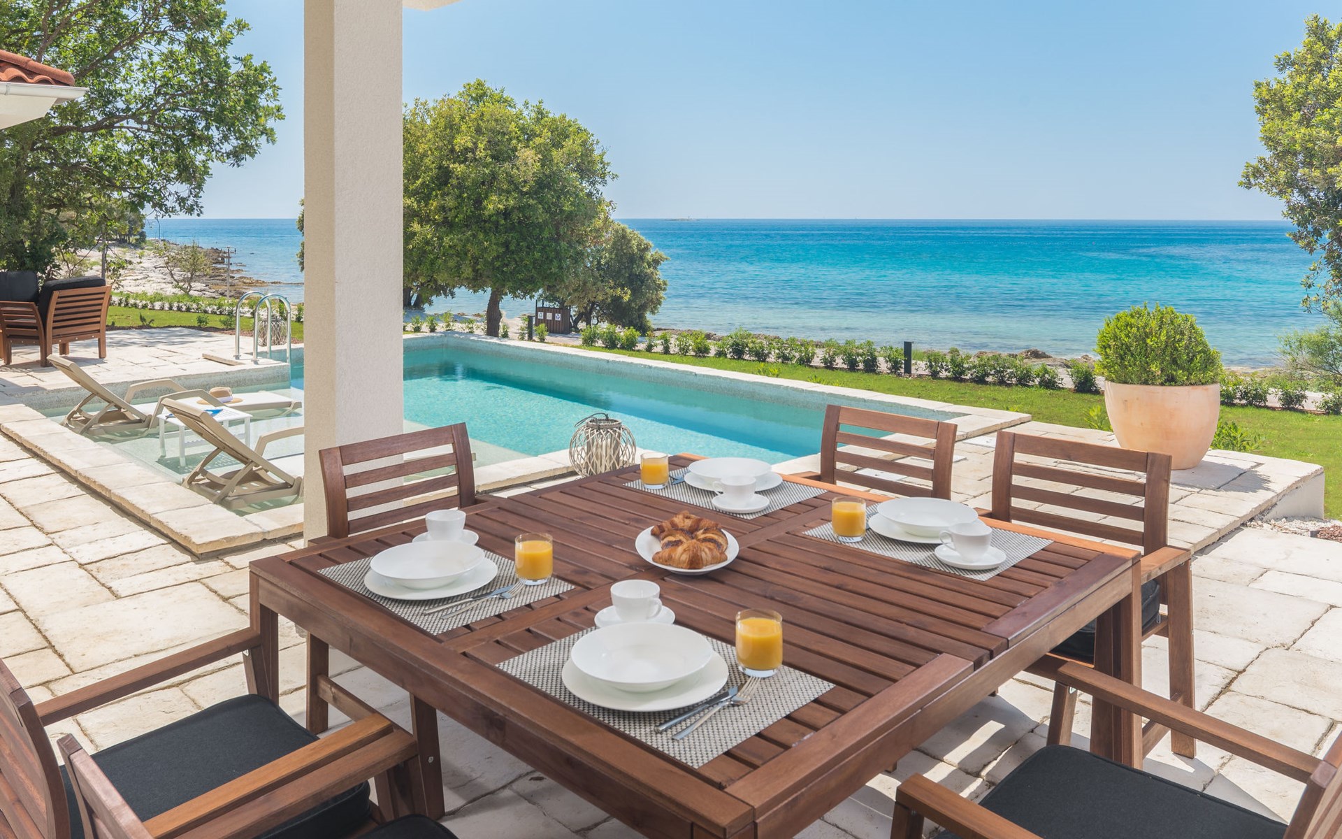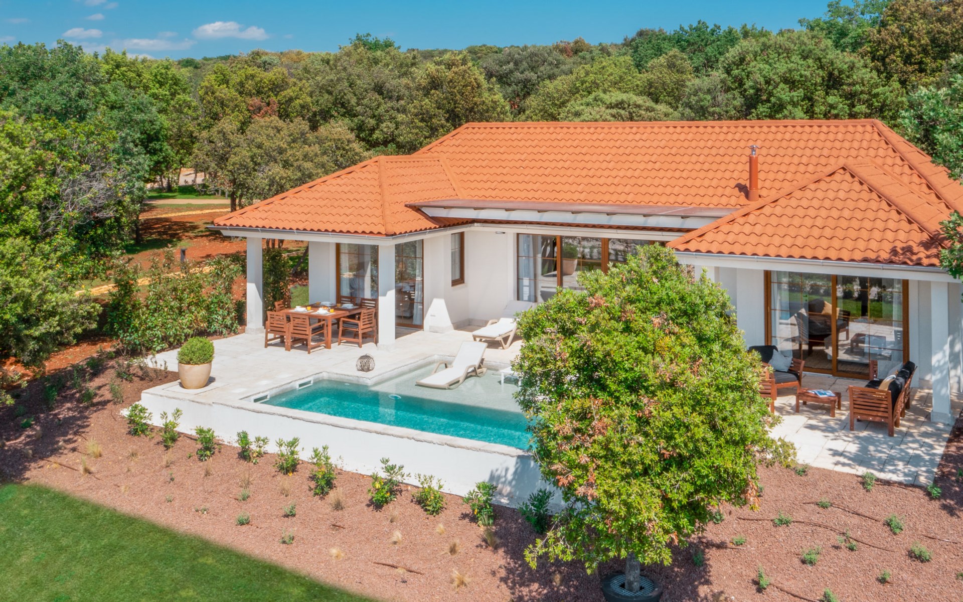 Kinderfreundliche Ferienanlage "Mon Perin". 6 km vom Zentrum von Bale, 17 km vom Zentrum von Rovinj, ruhige, sonnige Lage, direkt am Meer, direkt am Strand. Zur Mitbenutzung: Grundstück mit Bäumen, Schwimmbad (400 m2, 45 - 135 cm tief, saisonale Verfügbarkeit: 18.Mai. - 21.Sep.). Kinderbecken, Tennis, Basketball, Boccia, Beachvolleyball, Kinderspielplatz, Poolpflege durch den Besitzer/Gärtner. Zur Alleinbenutzung: Grundstück 1'000 m2 mit Rasen und Bäumen, Schwimmbad eckig, beheizt (6 x 3 m, 135 cm tief, saisonale Verfügbarkeit: 30.Mai. - 03.Okt.) mit Innentreppe. Terrasse, Poolpflege durch den Besitzer/Gärtner. In der Anlage: Restaurant, Bar, Internetzugang, Sauna (extra). Sprudelbad, Infrarotwärmekabine, Ruheraum, Wellnessbereich Hamam, Tischfussball, Einkaufsmöglichkeit, Wäscherei (zur Mitbenutzung, extra), Fahrradverleih. Parkplatz beim Haus auf dem Grundstück. E-Ladestation. Bushaltestelle 2.3 km, Kieselstrand "Mon Perin", Felsstrand "Mon Perin". Reitstall 500 m, Wanderwege ab Haus 100 m, Radweg 150 m. Bitte beachten: Animation. Das Camp verfügt über ein weiteres Kinderbecken (90 m2, 60 cm tiefe, geöffnet vom 01.06.-03.10.). Wellness und Spa mit Innenpool sind nur für Erwachsene ab 18 Jahren.