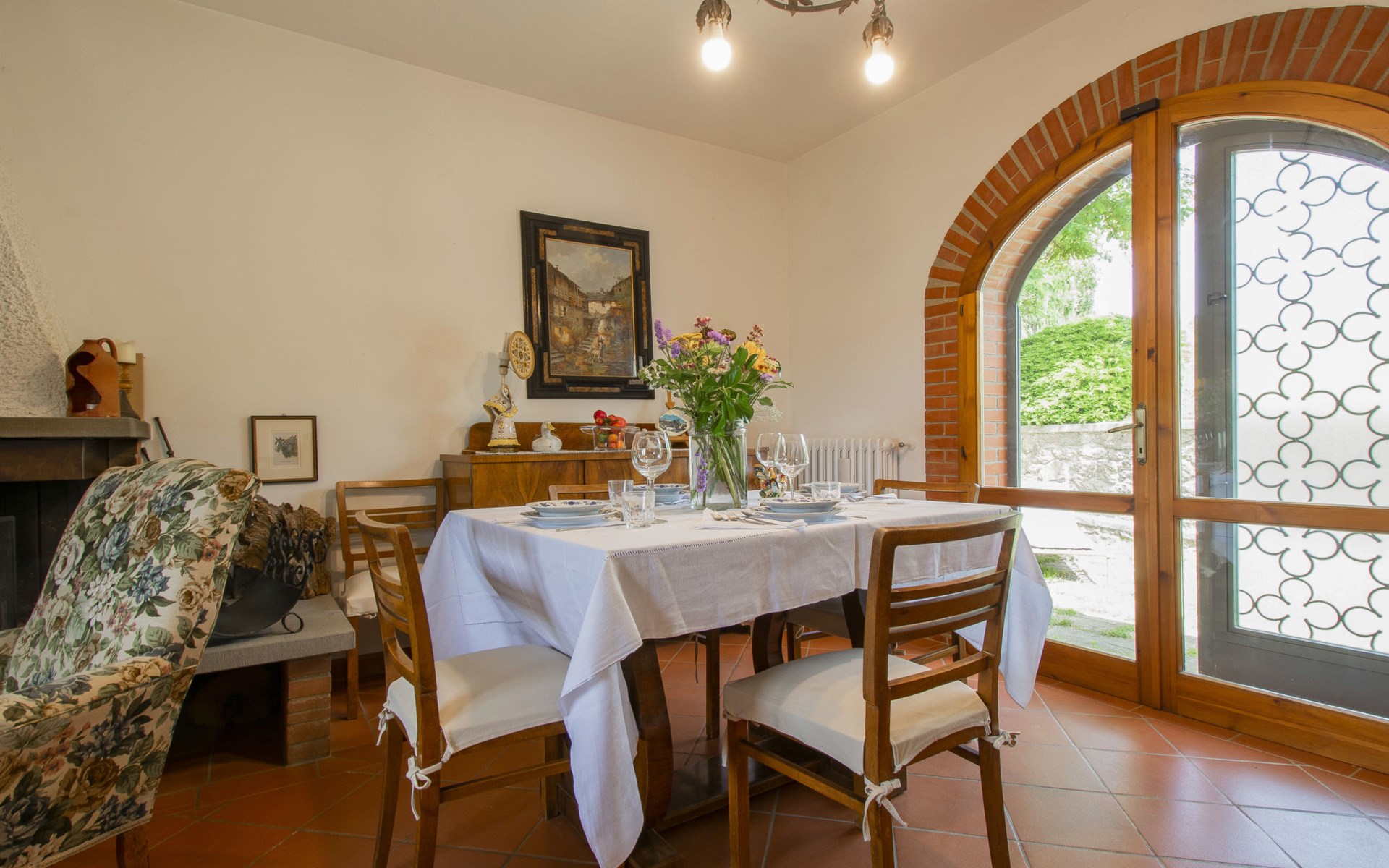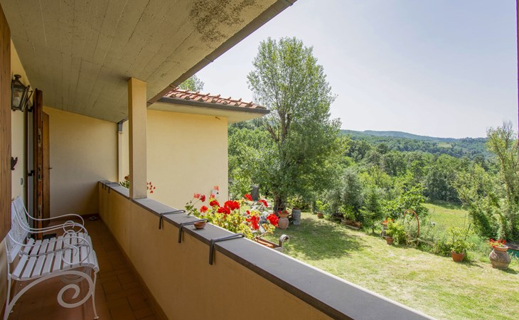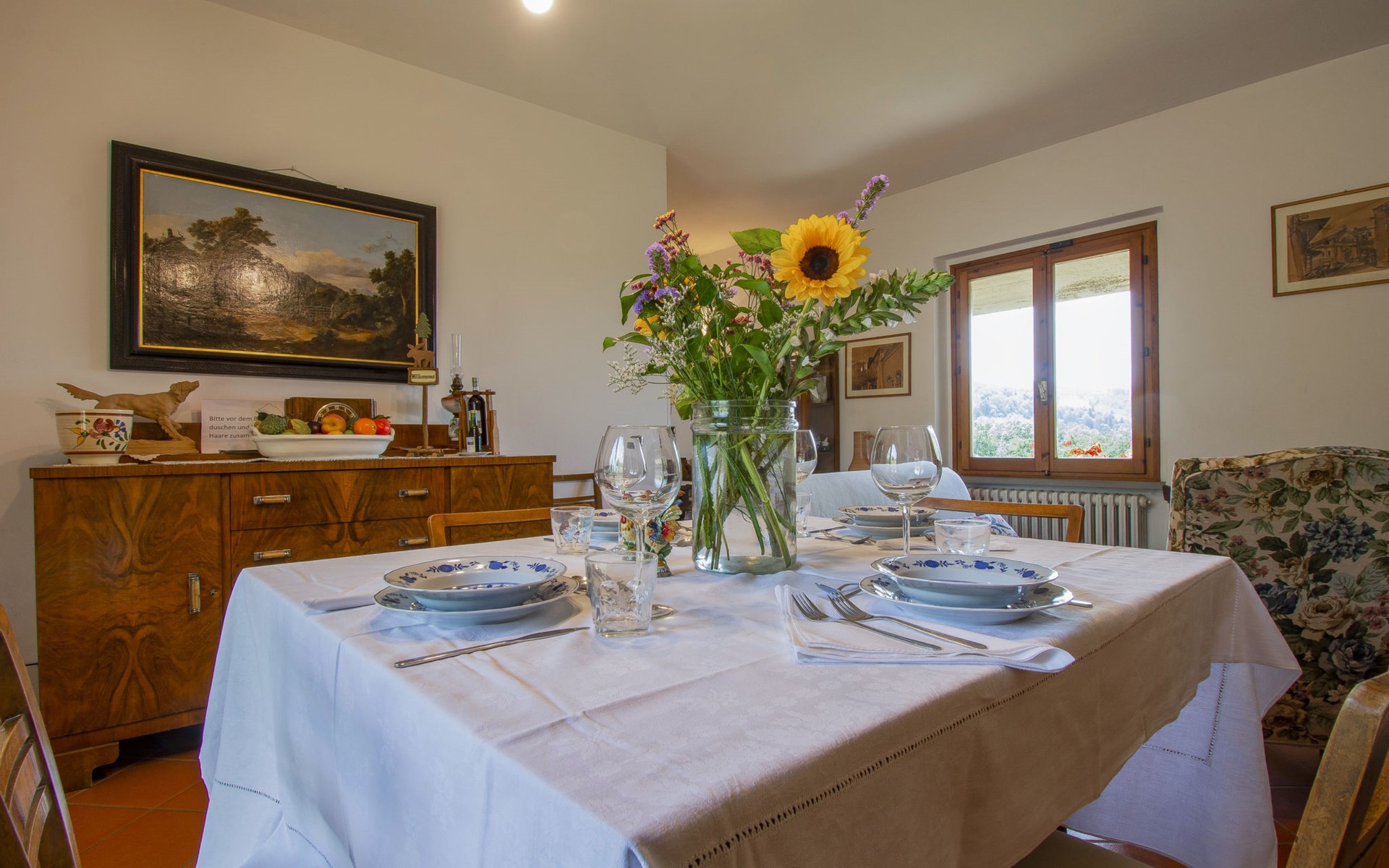Landwirtschaftlicher Betrieb "Allodola", umgeben von Feldern. Im Ortsteil Scopeti, 2 km vom Zentrum von Rufina, 8 km vom Zentrum von Pontassieve, 35 km vom Zentrum von Firenze, auf einem Hügel. Zur Mitbenutzung: naturbelassenes Grundstück 60'000 m2, terrassierter Garten mit Bäumen, Obstgarten, Schwimmbad eingezäunt (12 x 5 m, 110 - 220 cm tief, saisonale Verfügbarkeit: 01.Mai. - 15.Okt.) mit Rollladenabdeckung. Aussendusche, Tennis, Poolpflege durch den Besitzer/Gärtner. Zur Alleinbenutzung: Terrasse, Gartenmöbel, Grill. 400 m lange steile Zufahrt. Parkplatz auf dem Grundstück. Supermarkt 2 km, Bushaltestelle 500 m, Bahnstation "Rufina" 400 m. Nahe gelegene Sehenswürdigkeiten: Arezzo 75 km, San Gimignano 78 km, Siena 97 km. Auf dem Grundstück Tierhaltung. Ab Hof Verkauf von bäuerlichen Produkten. Bitte beachten: Der Besitzer wohnt auf dem gleichen Grundstück. Besitzer nutzt Räume im Haus.
