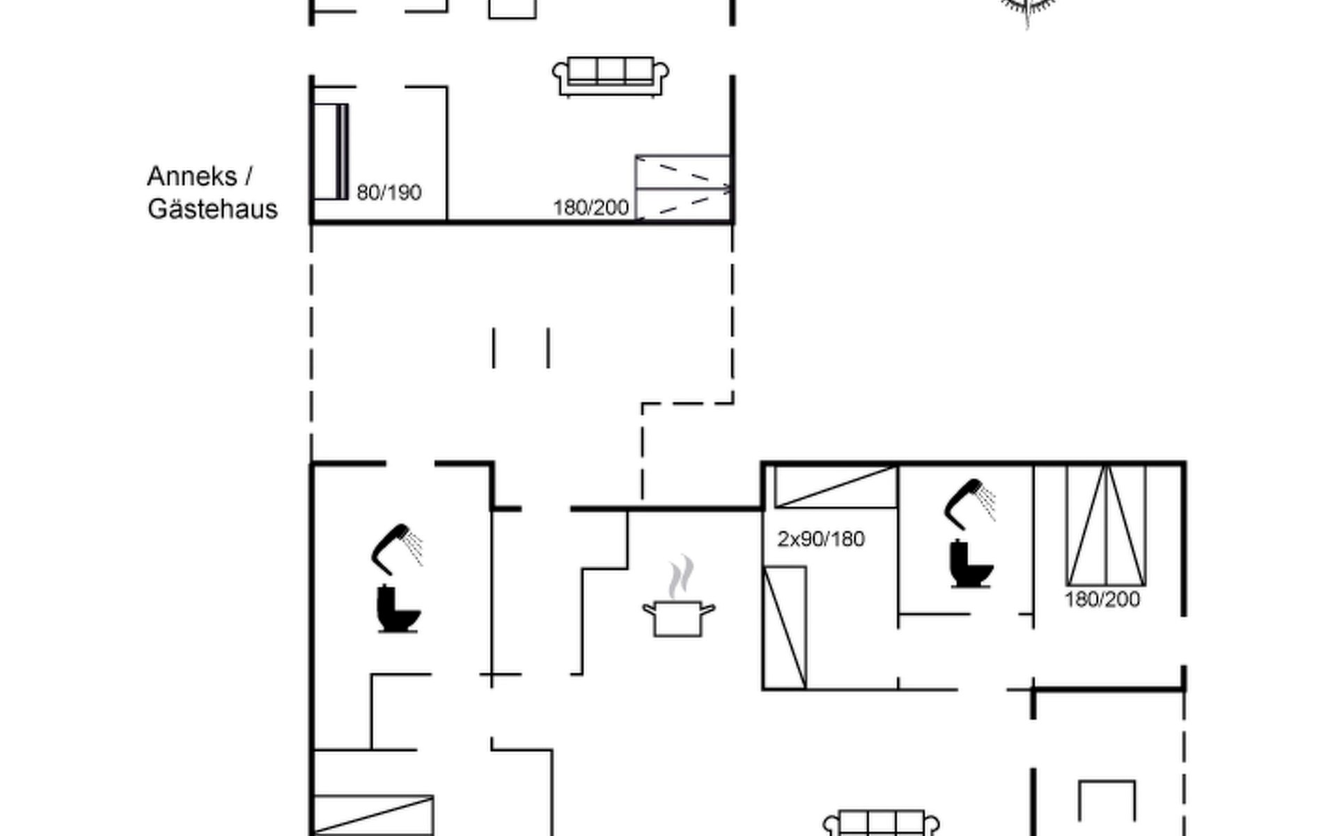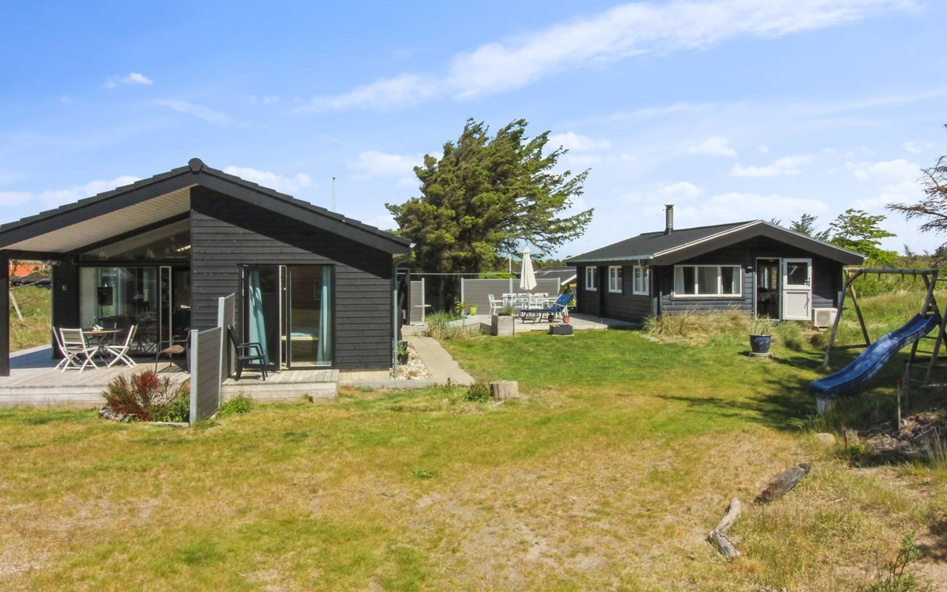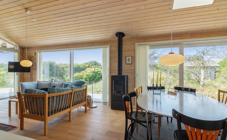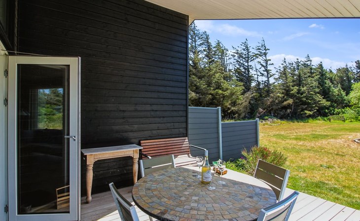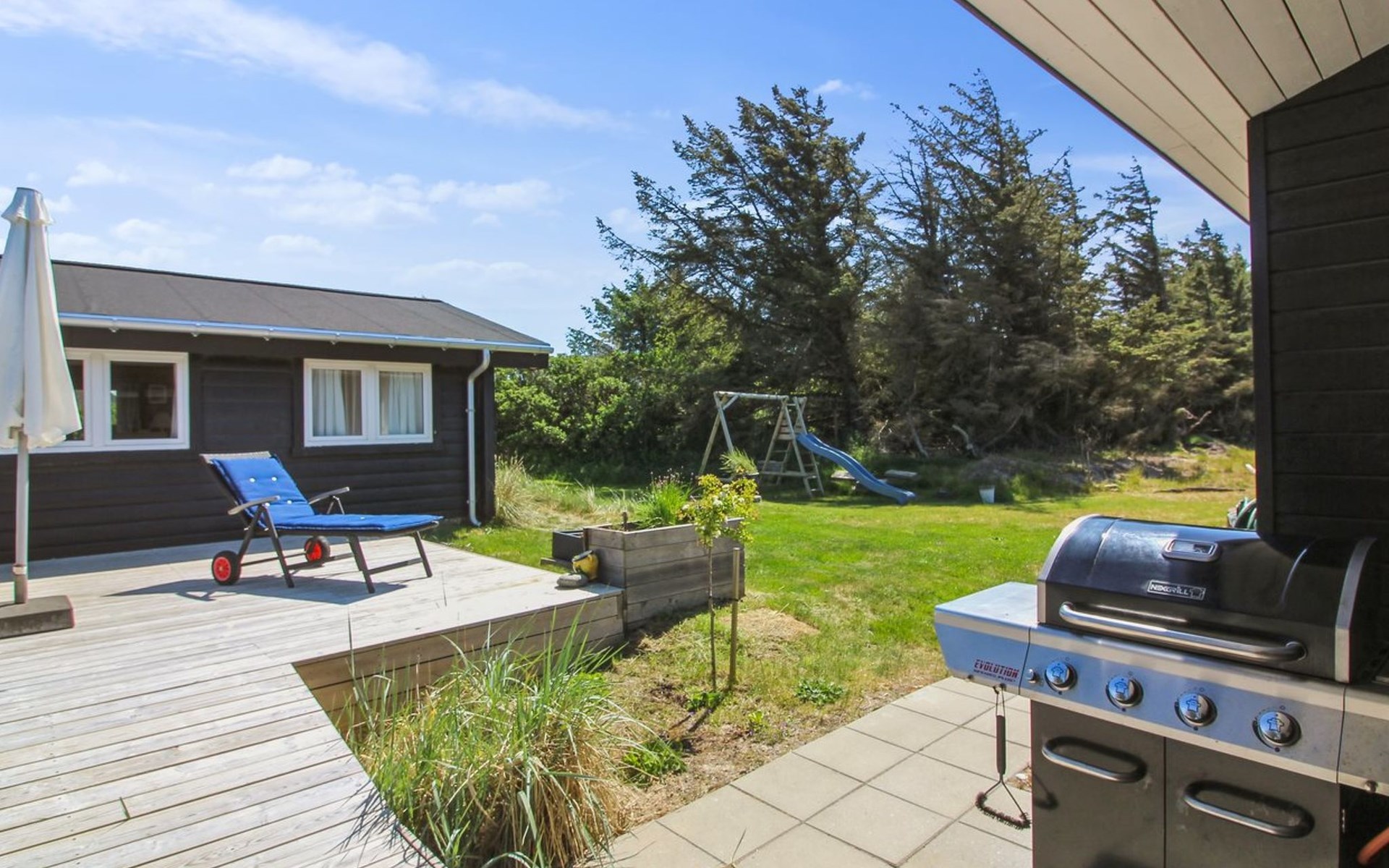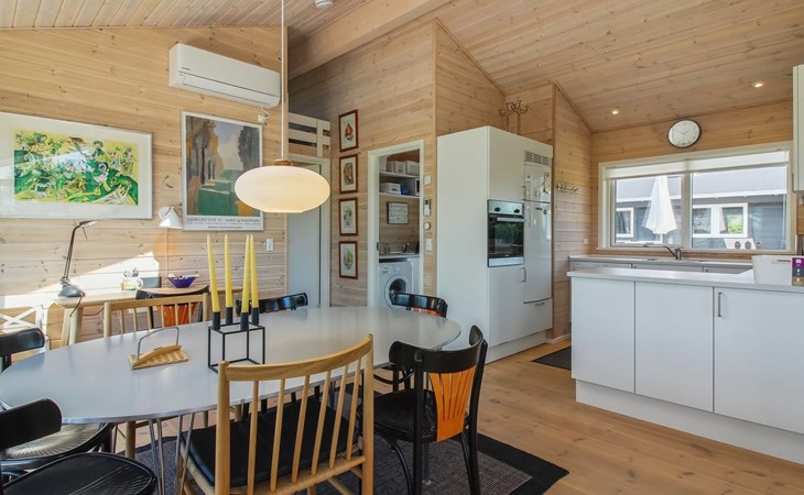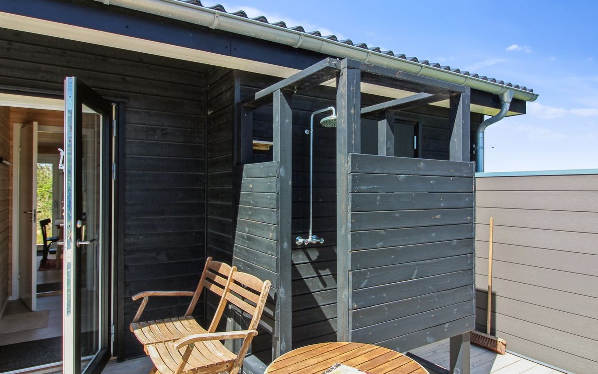 Einfamilienhaus, Baujahr 2020. 400 m vom Meer. Zur Alleinbenutzung: naturbelassenes Grundstück 1'750 m2. Aussendusche, Grill, Kinderspielplatz (Rutschbahn, Schaukel). Im Hause: Sauna, Waschmaschine. Parkplatz beim Haus. E-Ladestation. Lebensmittelgeschäft 4 km. Golfplatz 10 km. Der Besitzer akzeptiert keine Jugendgruppen.