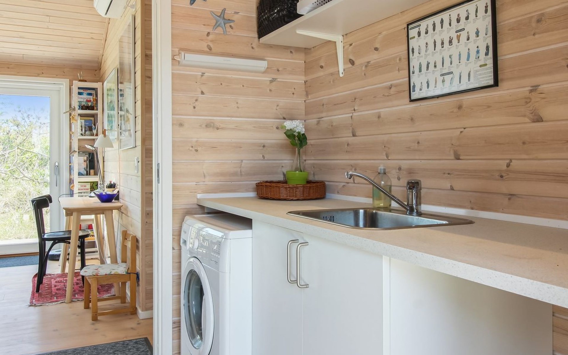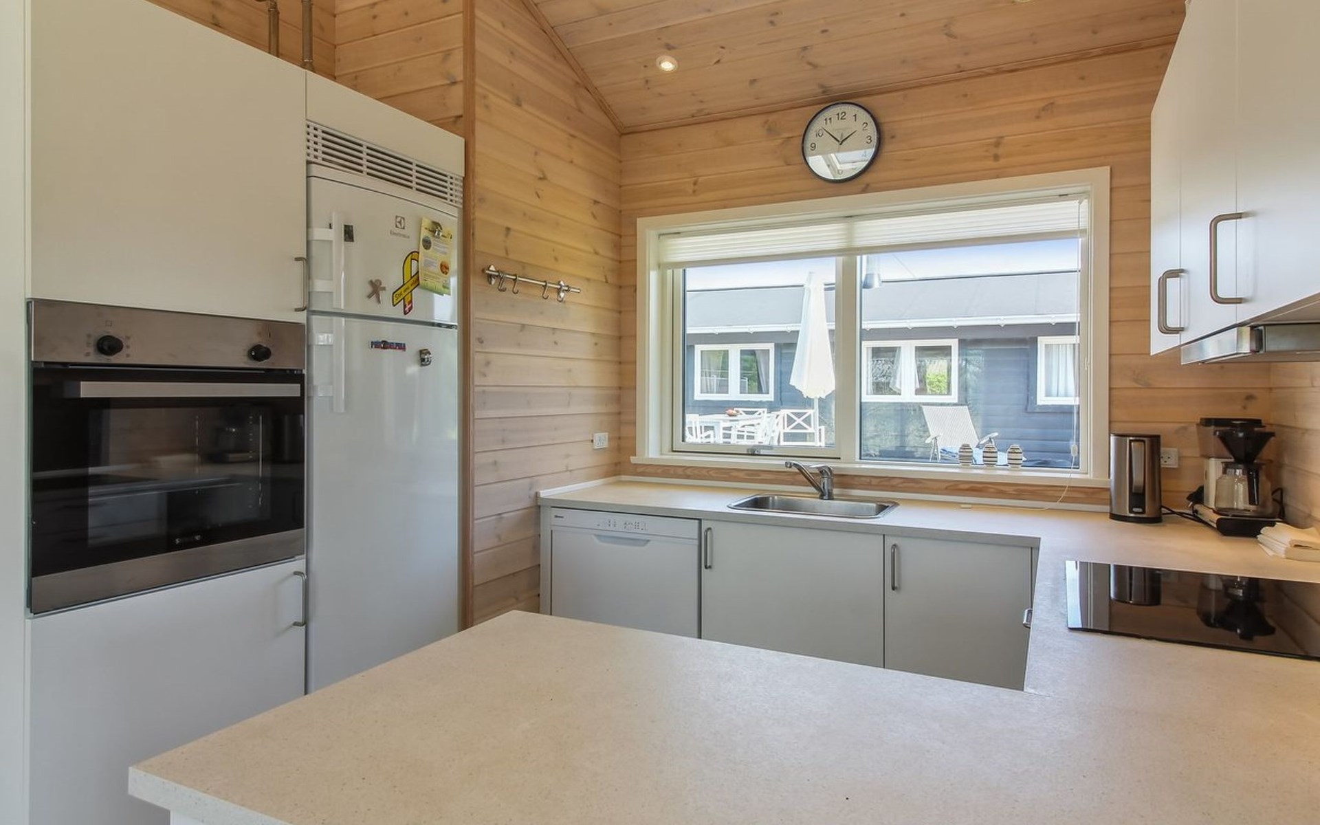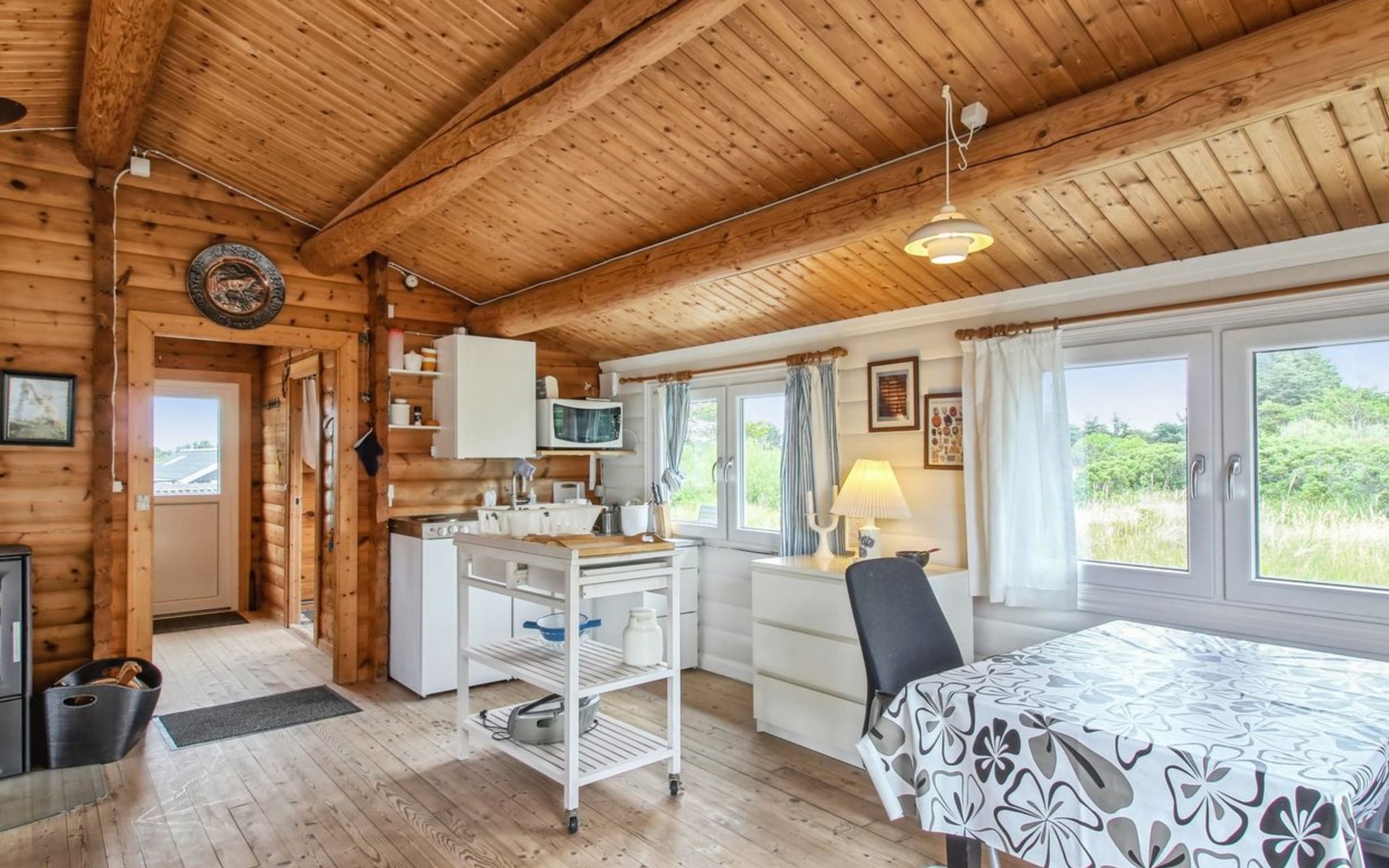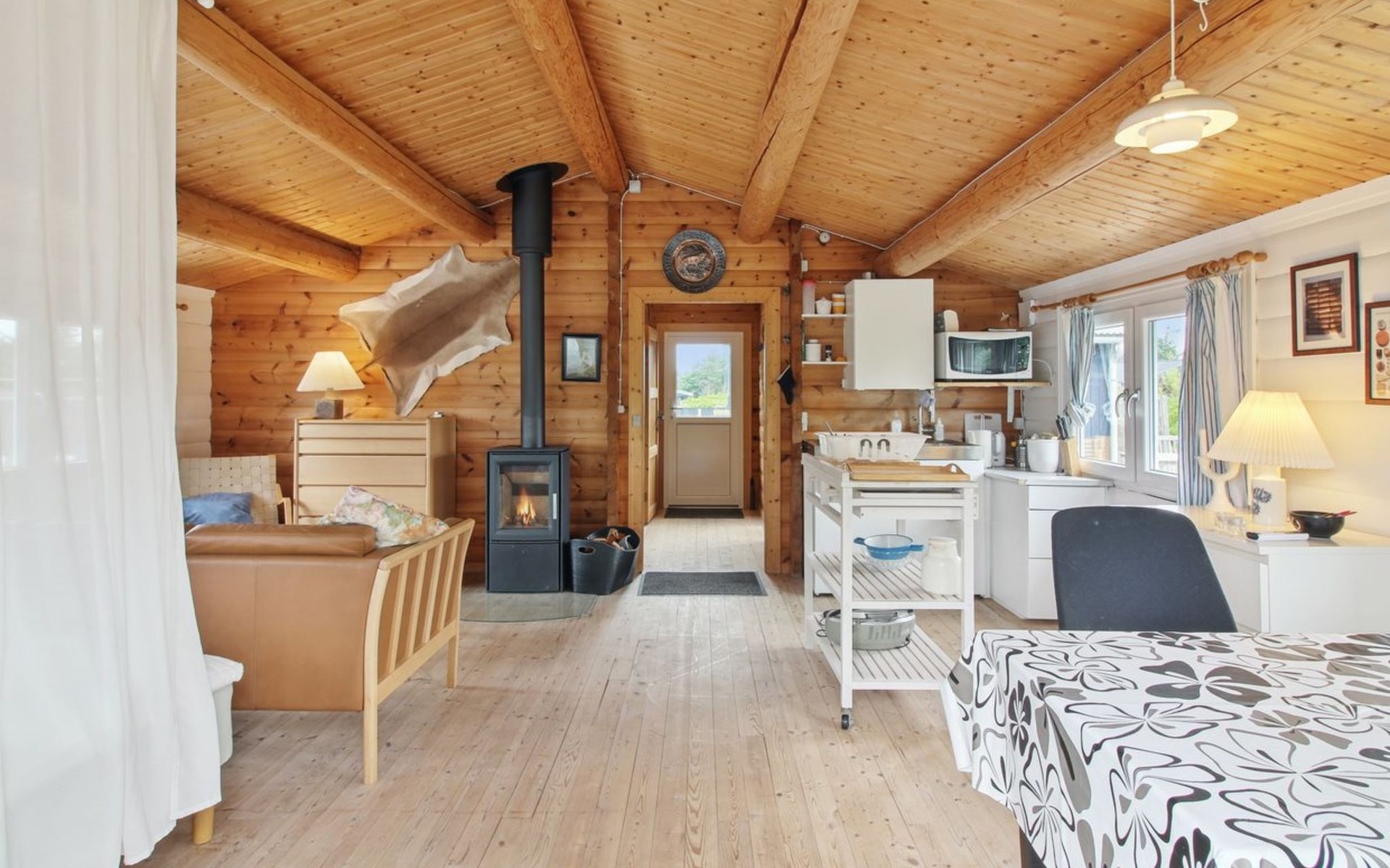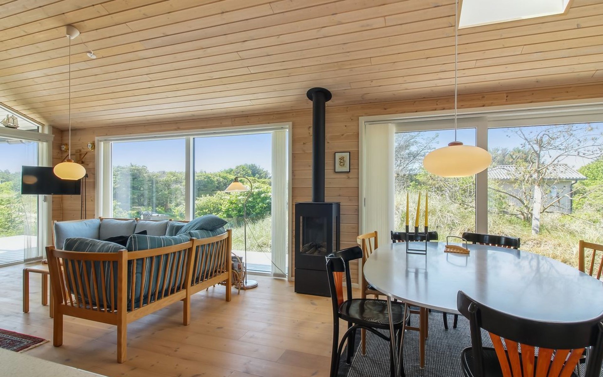 Einfamilienhaus, Baujahr 2020. 400 m vom Meer. Zur Alleinbenutzung: naturbelassenes Grundstück 1'750 m2. Aussendusche, Grill, Kinderspielplatz (Rutschbahn, Schaukel). Im Hause: Sauna, Waschmaschine. Parkplatz beim Haus. E-Ladestation. Lebensmittelgeschäft 4 km. Golfplatz 10 km. Der Besitzer akzeptiert keine Jugendgruppen.