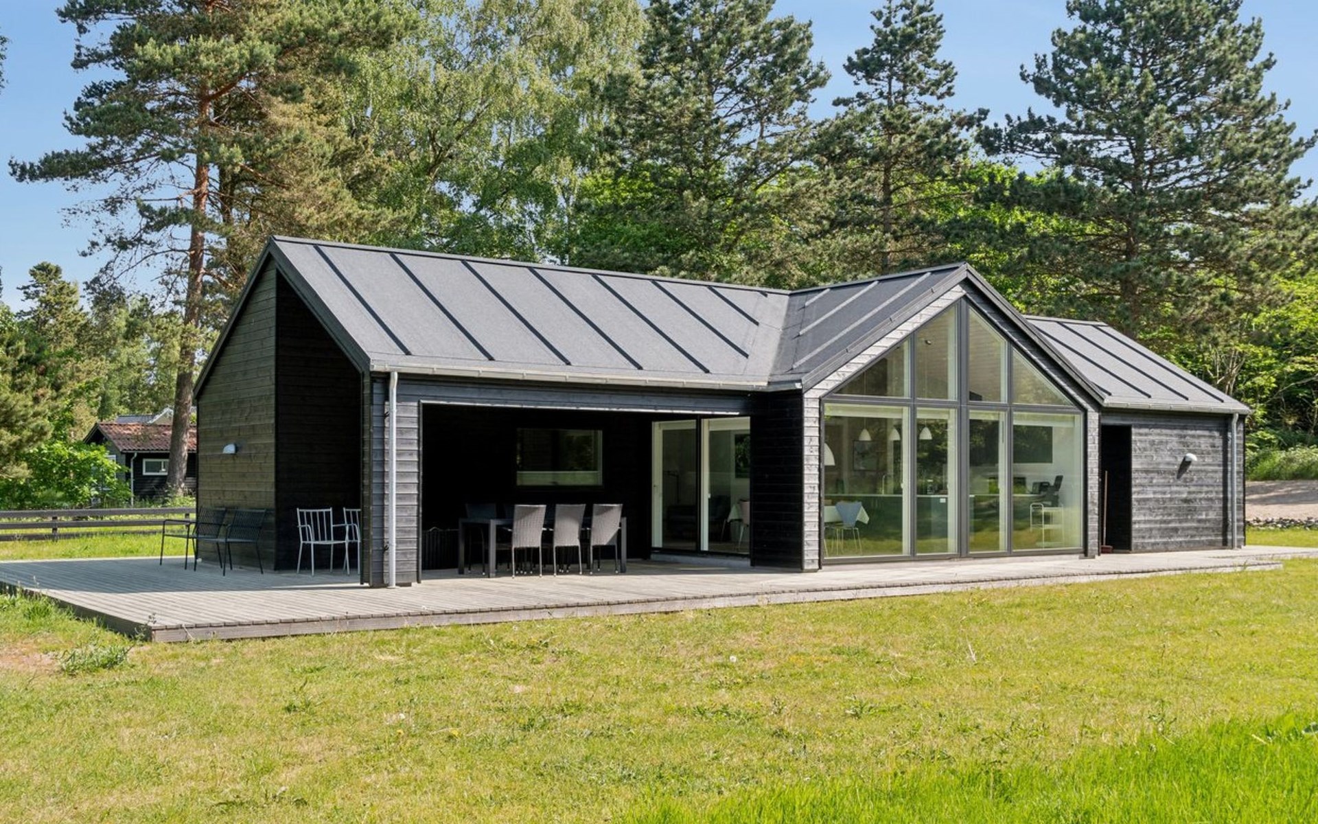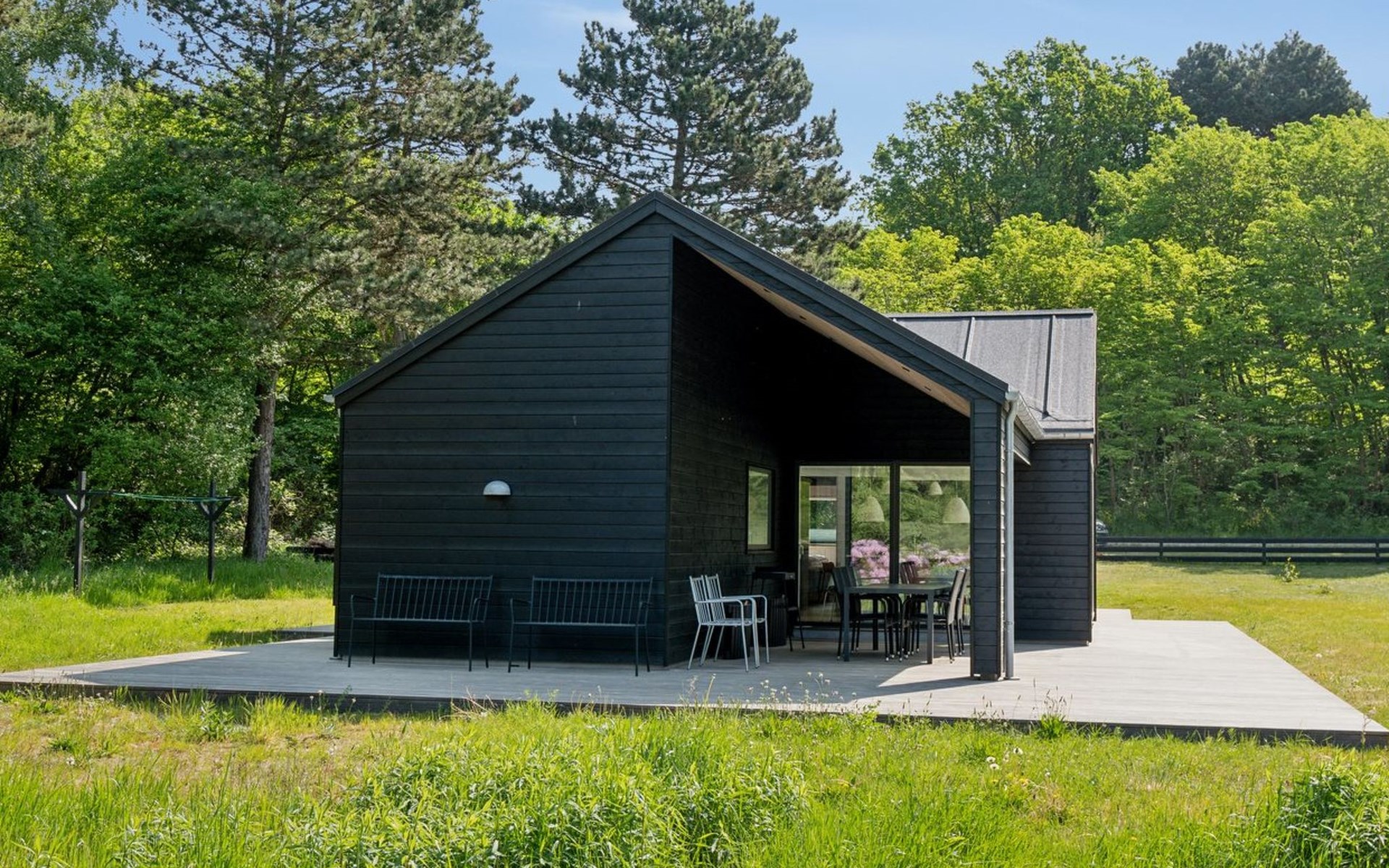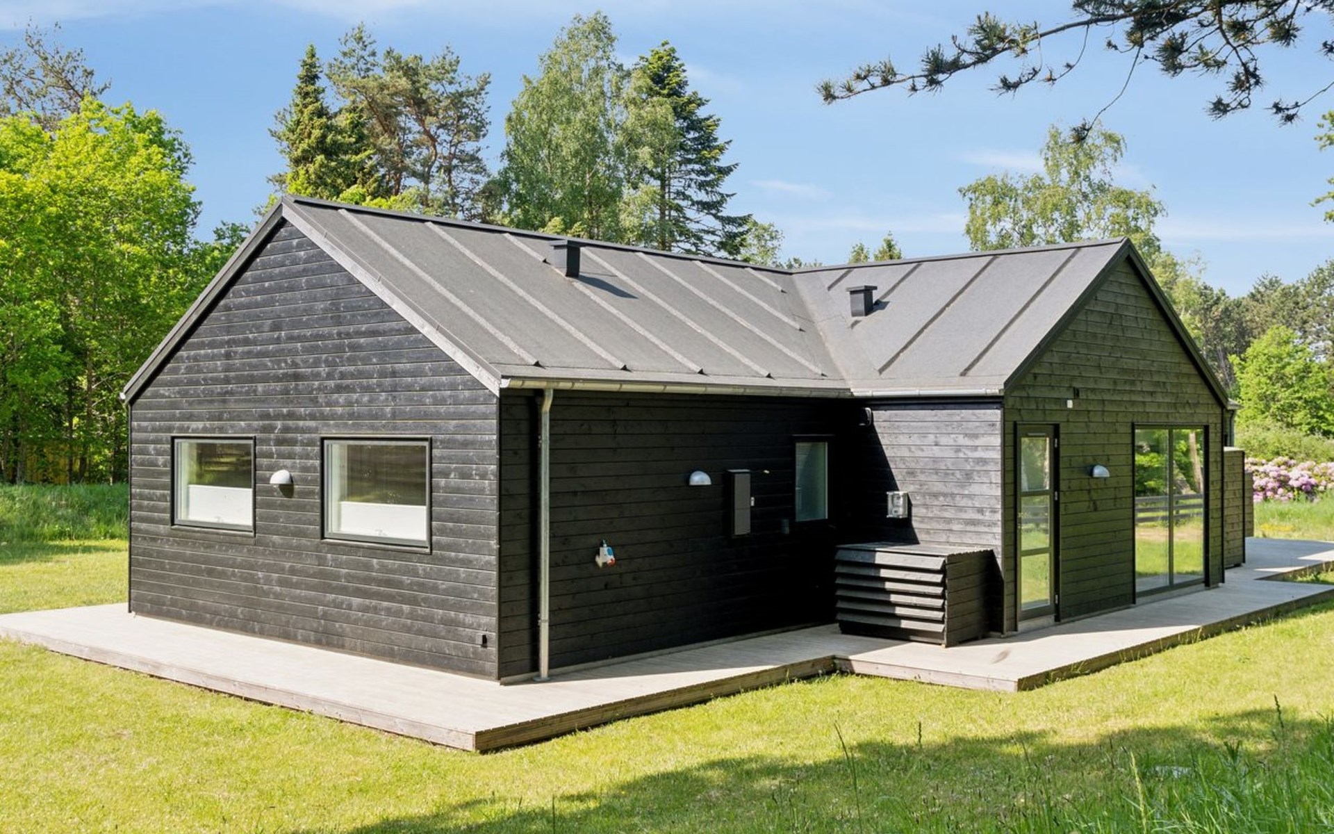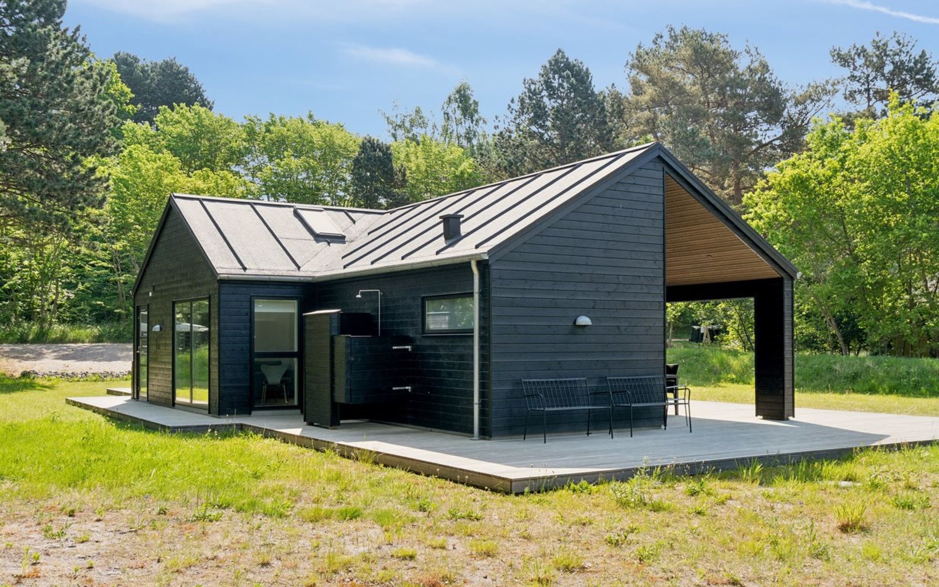 Einfamilienhaus, Baujahr 2021. 1.7 km vom Meer. Zur Alleinbenutzung: naturbelassenes Grundstück 2'000 m2. Aussendusche, Grill. Im Hause: Waschmaschine, Wäschetrockner. Parkplatz beim Haus. E-Ladestation. Lebensmittelgeschäft 1.1 km. Golfplatz 8.6 km. Der Besitzer akzeptiert keine Jugendgruppen.
