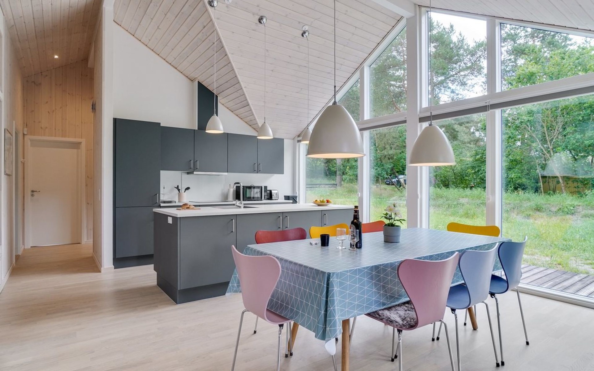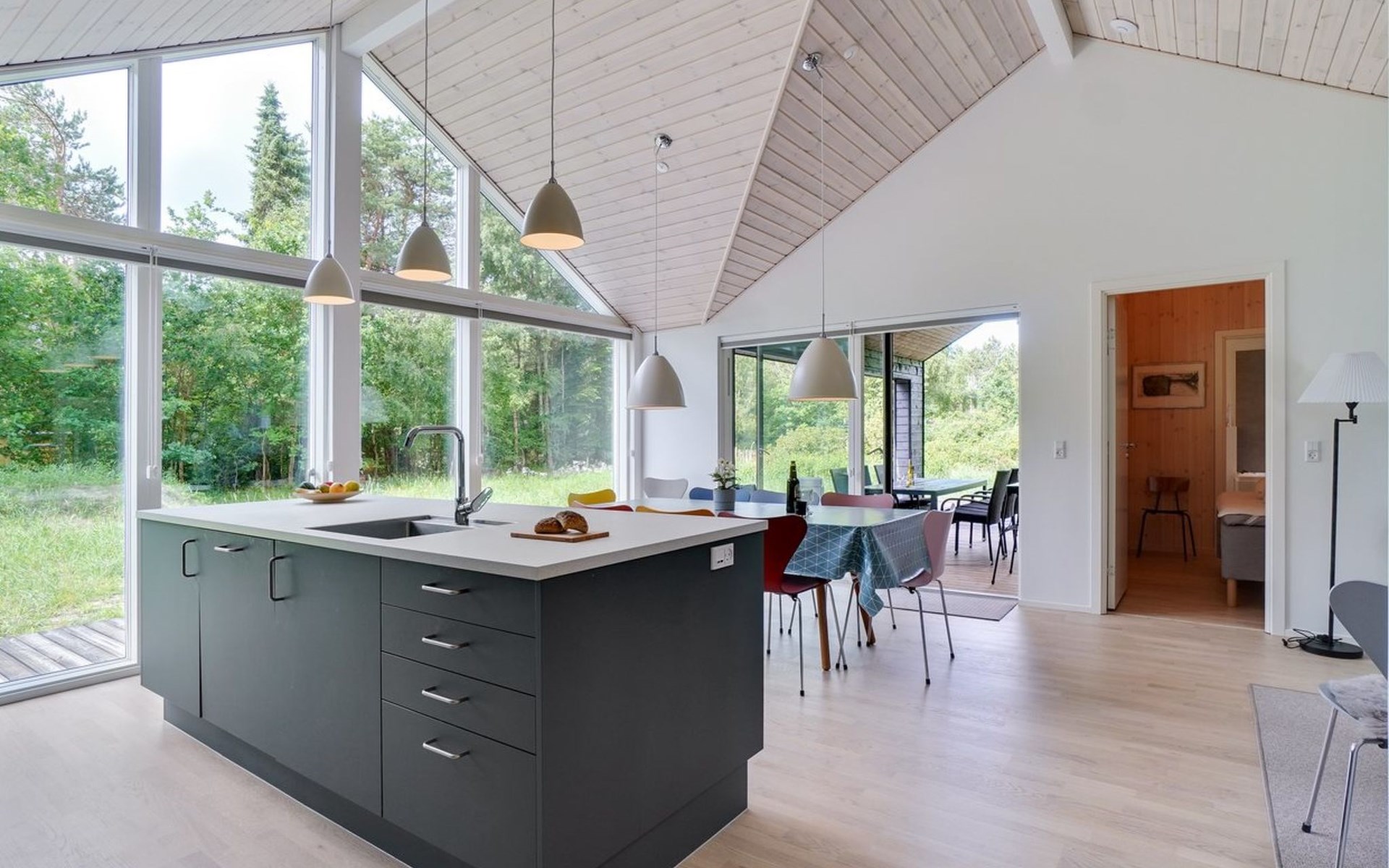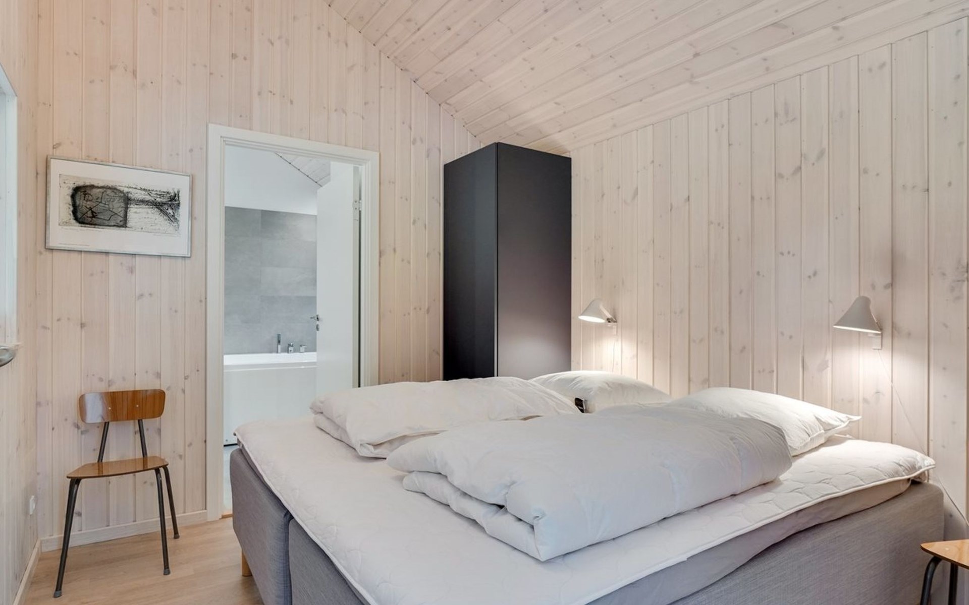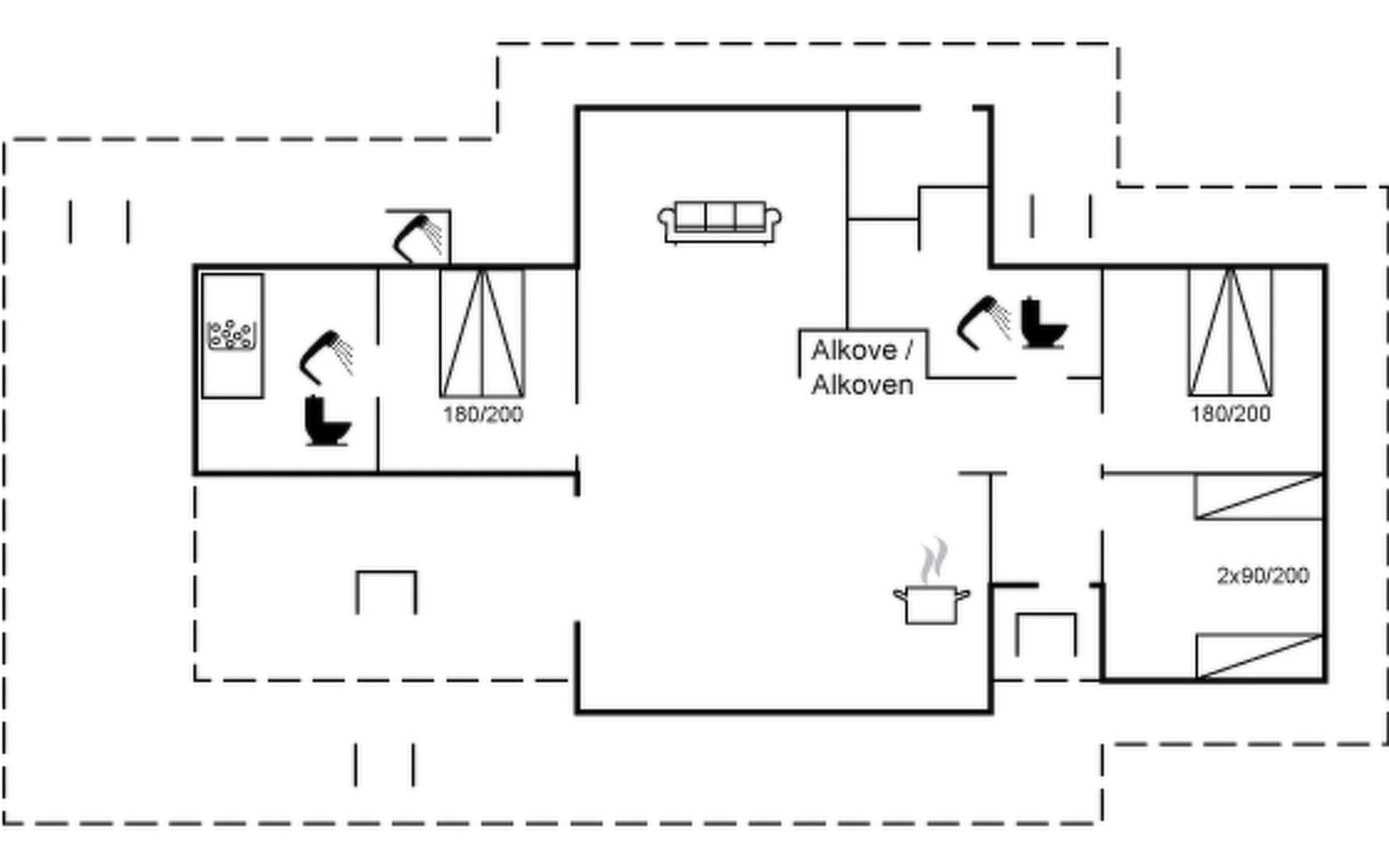 Einfamilienhaus, Baujahr 2021. 1.7 km vom Meer. Zur Alleinbenutzung: naturbelassenes Grundstück 2'000 m2. Aussendusche, Grill. Im Hause: Waschmaschine, Wäschetrockner. Parkplatz beim Haus. E-Ladestation. Lebensmittelgeschäft 1.1 km. Golfplatz 8.6 km. Der Besitzer akzeptiert keine Jugendgruppen.