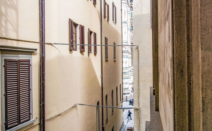 Die von uns angebotene Wohnung befindet sich in einer privilegierten Lage in der Via del Campanile, einer der eindrucksvollsten Straßen des historischen Zentrums. Diese Straße verbindet die Via delle Oche mit der Piazza del Duomo und blickt direkt auf den berühmten Glockenturm von Giotto, der ihr ihren Namen gibt. Dank ihrer Lage bietet die Wohnung unmittelbaren Zugang zu allen künstlerischen und kulturellen Wundern von Florenz und ist somit ideal für diejenigen, die im Herzen der Stadt leben möchten. Appartementhaus. Im Ortszentrum von Firenze, im Bezirk Duomo, im Herzen der Stadt, verkehrsberuhigte Zone, in einer Fussgängerzone. Im Hause: Zentralheizung, Heizung nur verfügbar von 01.Nov. - 15.Apr.. Einkaufsgeschäft, Lebensmittelgeschäft 50 m, Supermarkt 100 m, Restaurant 50 m, Bushaltestelle 500 m, Bahnstation "Firenze Santa M. Novella" 900 m, Sandstrand "Versilia" 95 km, Thermalbad "Montecatini Terme" 45 km, Badesee "Bilancino" 35 km. Golfplatz (18 Loch) 12 km. Nahe gelegene Sehenswürdigkeiten: Piazza del Duomo 50 m, Piazza della Signoria 280 m, Museo Nazionale del Bargello 350 m, Galleria degli Uffizi 400 m, Galleria dell'Accademia 650 m, Palazzo Pitti 1 km.