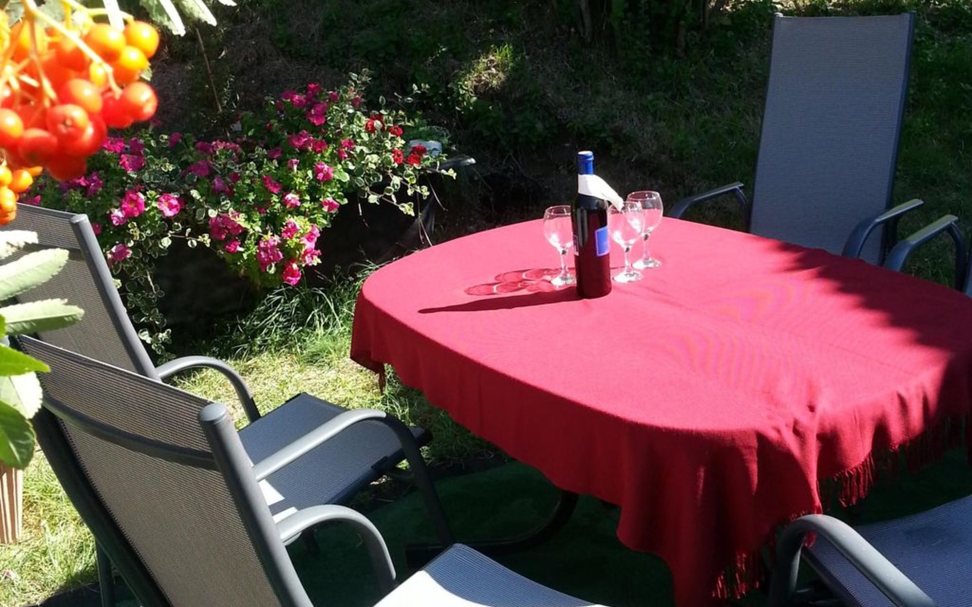 Das Grundstück endet direkt am Waldrand, wo die Kinder bestimmt so manches tolle Abenteuer erleben werden. Die Zufahrststraße ist sehr ruhig und somit keine große Gefahr für die kleinen Abenteurer. Die Erwachsenen können in dieser Zeit gemütlich auf der sonnigen Terrasse (Gartenmöbel vorhanden) bei einem Glas Wein die tolle Bergkulisse genießen, oder ein Sonnenbad im Garten erleben.