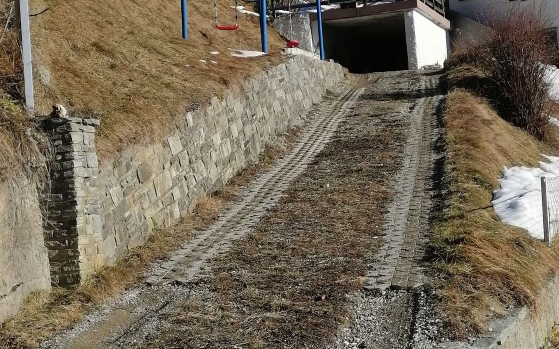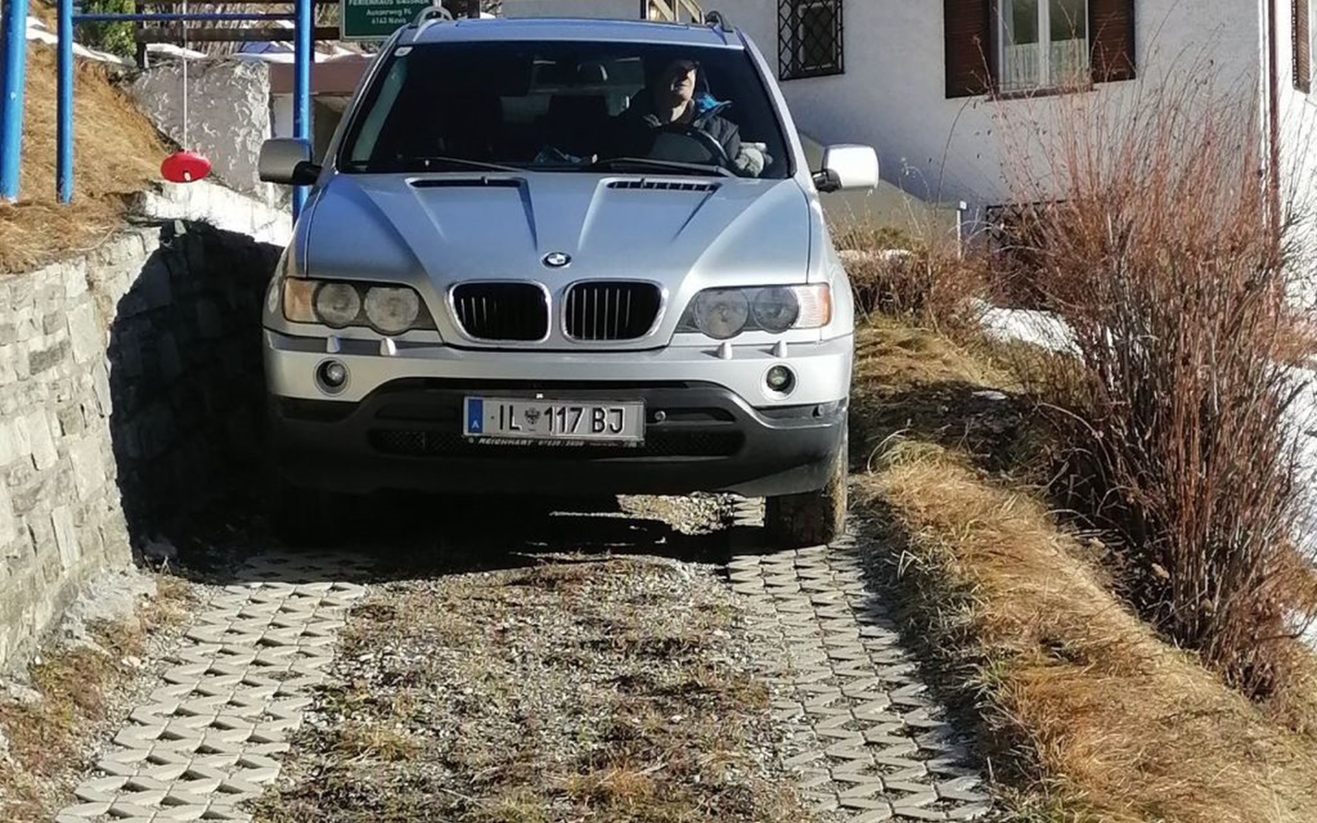 Es ist 1 Parkplatz pro Wohnung vorhanden. Unsere Auffahrt ist etwas steil (ca.22% ) 2,10m-2,30m breit und 25m lang Man sollte in der Lage sein diese Strecke auch rückwärts mit dem Fahrzeug zu bewältigen.