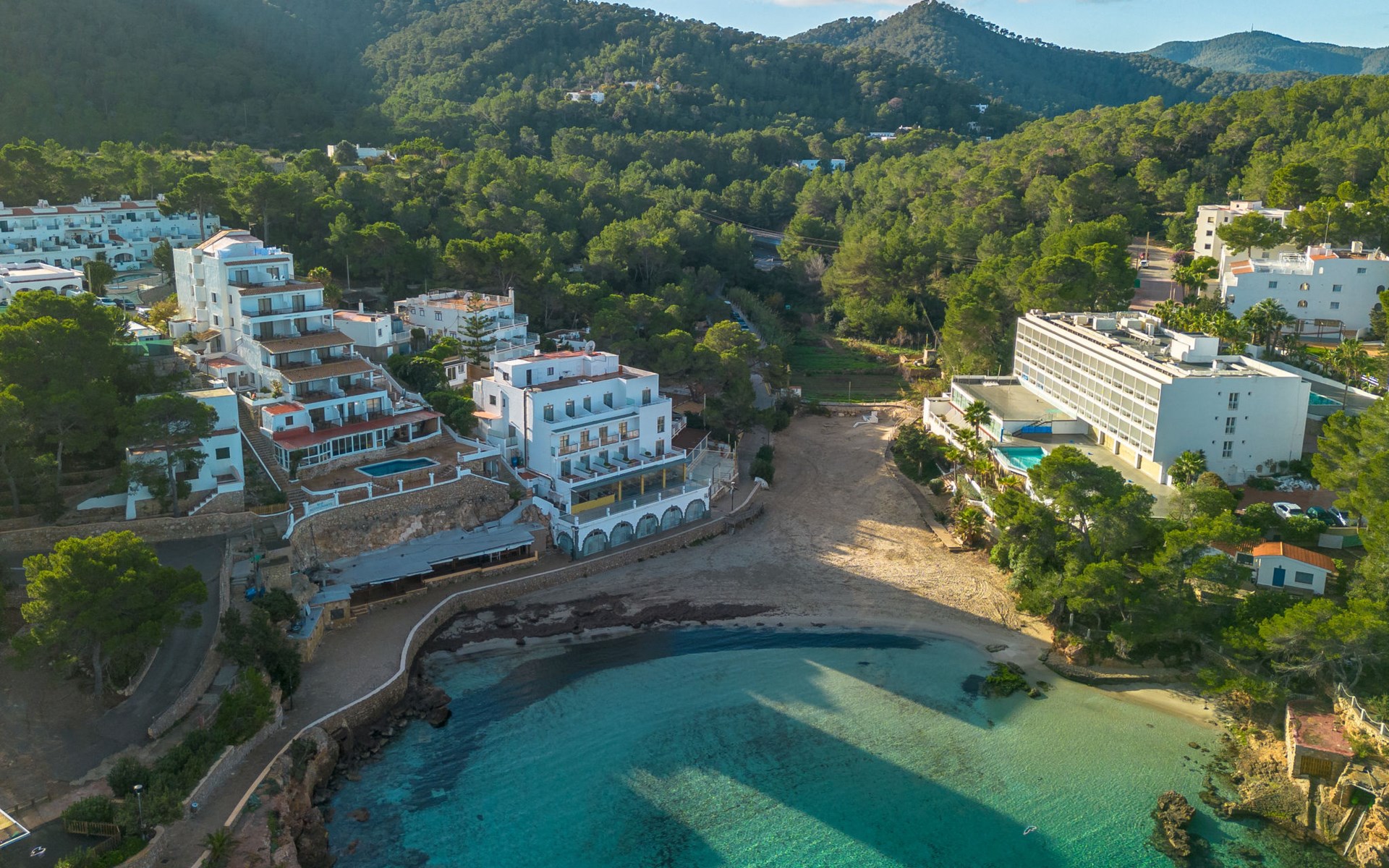 Portinatx 9 km von Sant Joan de Labritja: Gemütliches, einfaches Appartementhaus "Apartamentos Es Grop Portinatx". 17 Wohnungen im Ferienhaus. Zentrale, ruhige Lage, 1 km vom Waldrand, 30 m vom Meer, 30 m vom Strand, direkter Zugang zum Strand. Zur Mitbenutzung: Garten, Schwimmbad eckig (6 x 3 m, saisonale Verfügbarkeit: 01.Mar. - 31.Okt.). WC im Poolbereich, Aussendusche, Terrasse. Im Hause: Empfang, Restaurant, Bistro, Wireless LAN, Fahrstuhl, Klimaanlage. Parkplatz (für 10 Autos). Einkaufsgeschäft, Lebensmittelgeschäft 150 m, Supermarkt 200 m, Restaurant, Bar 10 m, Bäckerei 150 m, Café 100 m, Fußgängerzone 10 m, Bushaltestelle "Cala Portinatx" 350 m, Sandstrand "Platja Portinatx" 15 m, Tauchzentrum 2 km, Freibad 10 m. Nahe gelegene Sehenswürdigkeiten: Cala Xarraca 2 km, Cala de Xuclar 850 m, Cala d'en Serra 1.9 km, Faro de Portinatx 1.5 km, Faro de la punta de Moscater 2.5 km. Wandergebiete: Sendero del Far des Moscater 1.5 km. Bitte beachten: Be- und Entladen am Ferienhaus möglich. Bewachte Residenz. Hauptstrasse 60 m vom Haus. Flugplatz 36 km vom Haus. Das Foto ist nur ein Hausbeispiel. Das Leitungswasser hat keine Trinkwasserqualität. Die Mietobjekte können sich in Wohnfläche, Raumaufteilung, Ausstattung und Einrichtung unterscheiden.