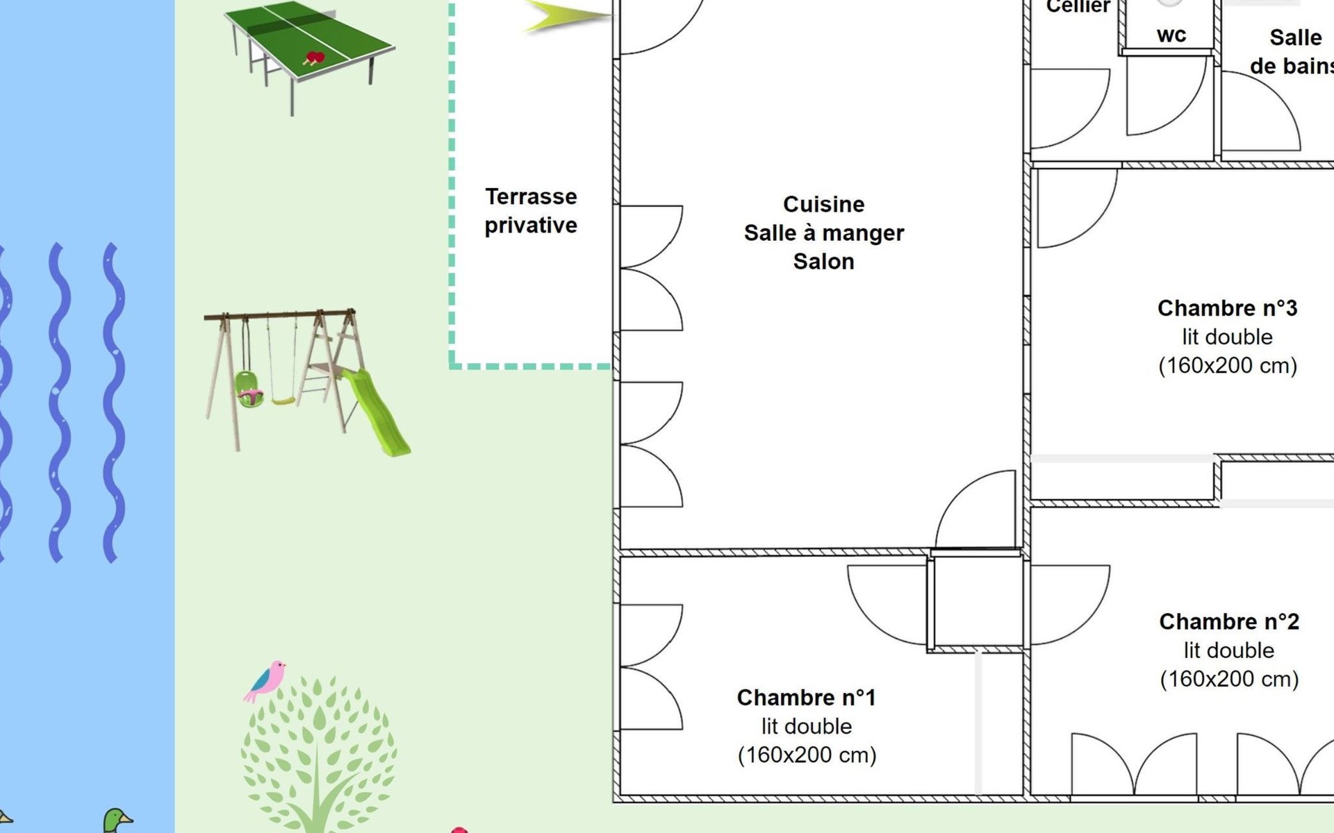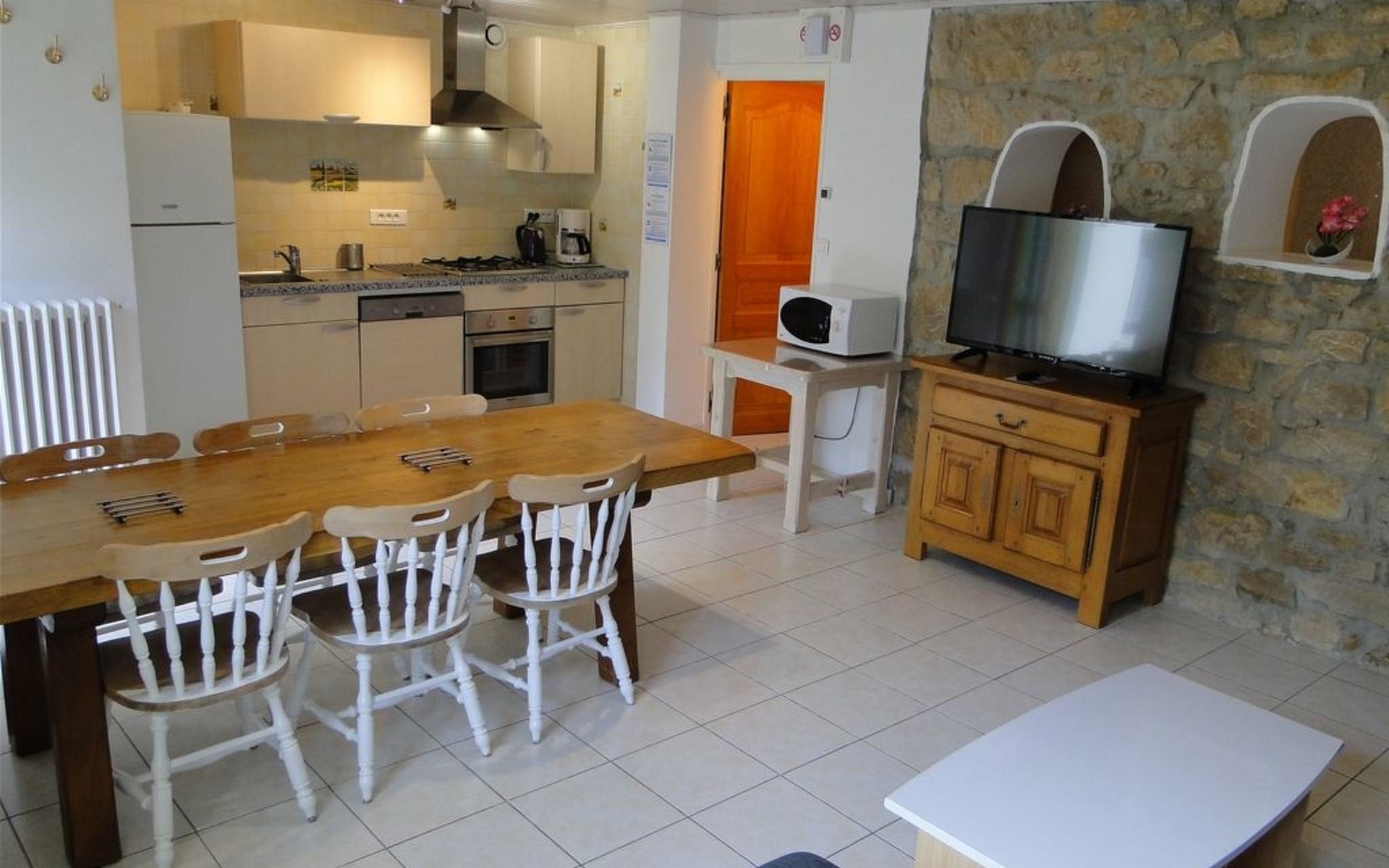 Ausgestattete Küche, Gaskochfeld, Töpfe, Teller, Besteck, Kaffeemaschine, Backofen, Mikrowelle, Toaster, Wasserkocher, Raclette- und Fonduegerät, Kühl- und Gefrierschrank, Geschirrspüler, Waschmaschine, Flachbildfernseher (TNT: 27 kostenlose Kanäle auf Französisch), Gartenmöbel, Grill.