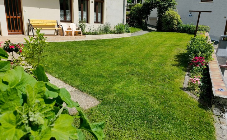 - komplett eingefriedet (mit Mauer, Zaun oder Hecke)