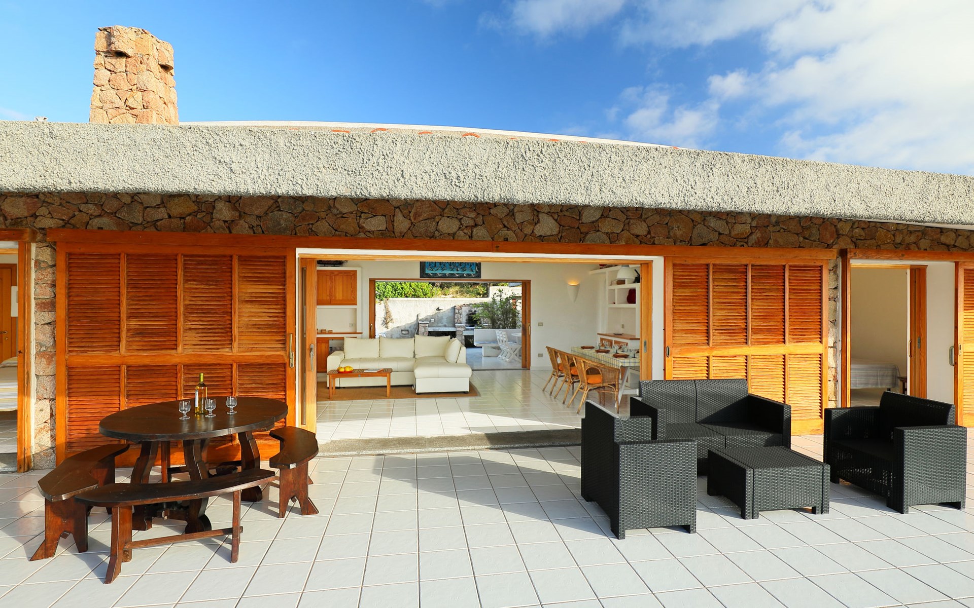 Einfamilienhaus "Matì". Im Weiler Portobello di Gallura, 16 km vom Zentrum von Aglientu, 7 km vom Zentrum von Vignola, am Hang, im Villenviertel, verkehrsberuhigte Zone, 150 m vom Meer. Zur Alleinbenutzung: Grundstück mit Pflanzen und Bäumen. Aussendusche, Grill. Zufahrt bis 30 m zum Haus. Treppenweg bis zum Haus. Parkplatz in 30 m auf dem Grundstück. Supermarkt 1.5 km, Restaurant 1.5 km, Bar 1.5 km, Bushaltestelle 7 km, Sandstrand 500 m. Jacht-Hafen 1.5 km, Tennis 500 m. Bitte beachten: Fahrzeug empfohlen. Tiere in der Umgebung.