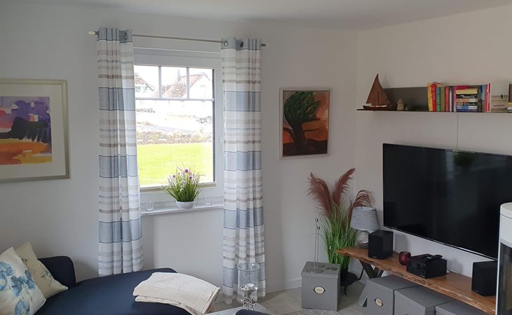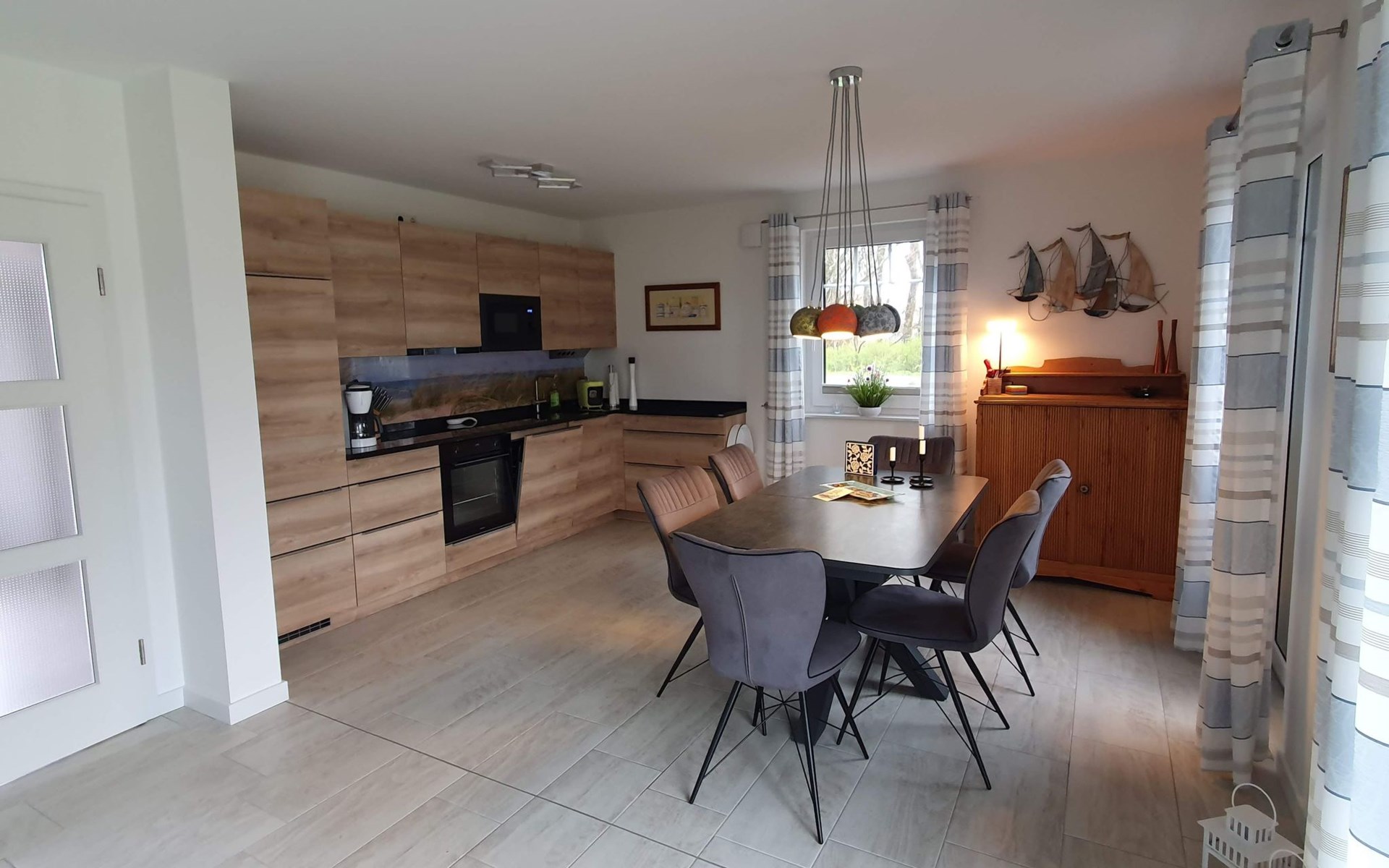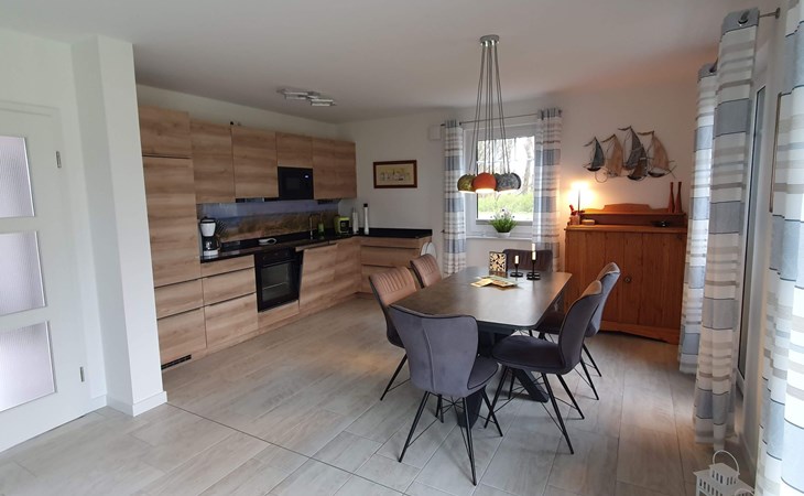 Unser Haus Hannes steht in einem kleinen und ruhigen Feriengebiet in Mellnitz-Hof bei Poseritz. Wir haben uns mit der Ausstattung viel Mühe gegeben um Ihnen als Urlauber den Aufenthalt so angenehm wie möglich zu machen. Neben einer voll ausgestatteten Einbauküche mit Cerankochfeld, Backofen, Mikrowelle, Raclette, Wok Pfanne Wasserkocher und Kaffeemaschine, Wird auch ein Esstisch für mind. 6-8 Personen zur Verfügung stehen. Der Wohnbereich wird mit einer gemütlichen Couch, einem Relax Sessel und einem Kaminofen ausgestattet. Von der Couch aus können Sie dann bei nicht so gutem Wetter auch das TV Gerät (55'' Diagonale) genießen. WLAN steht selbstverständlich zur Verfügung.2 der 3 Schlafzimmer sind jeweils mit einem gemütliche Doppelbett, Nachtischen, einer Kommode und einem Kleiderschrank ausgestattet. Das Kinderzimmer hat 2 Einzelbetten mit je einem Nachttisch und einem Kleiderschrank. Alle Zimmer sind mit unserem WLAN abgedeckt. Alle Zimmer sind mit einem TV-Gerät versorgt.Im EG befindet sich ein Bad mit Dusche und WC sowie einer Sauna. Im OG finden Sie ein Bad mit Dusche, Badewanne und WC.