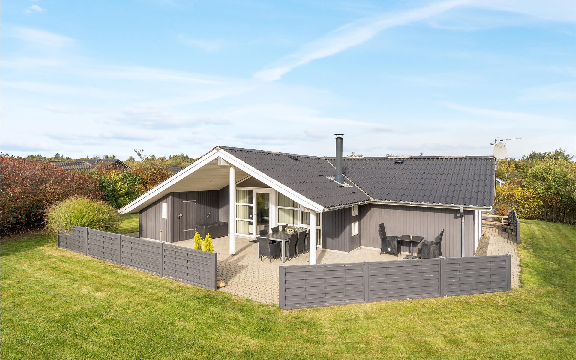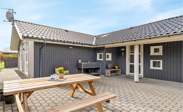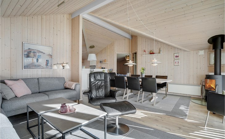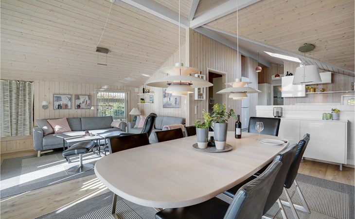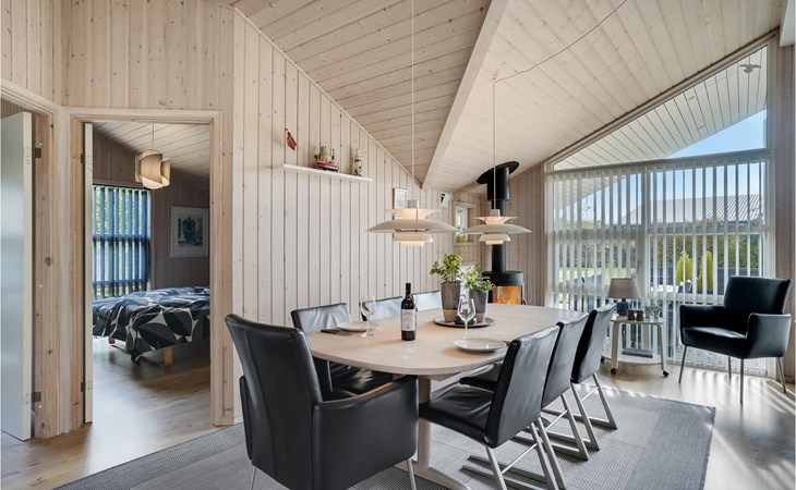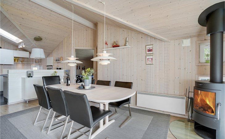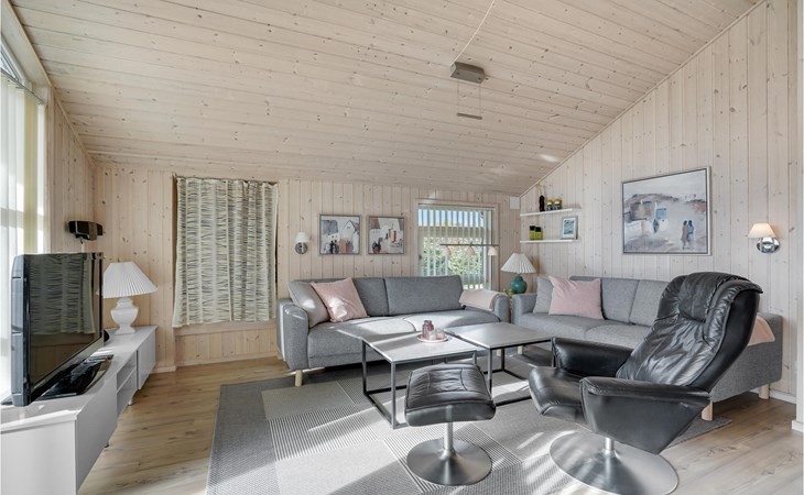 Das schöne Ferienhaus ist besonders gut für einen Entspannungsurlaub geeignet. Es ist komplett ausgestattet und liegt am Ende einer Sackgasse und total ohne Verkehrslärm. Das ungestörte Grundstück mit Windschatten und die drei Terrassen lassen Sie richtig gut die Sonne genießen. Das Haus liegt in der Nähe vom Wirtshaus Fahl, dem Wikingerdorf „vikinge-landsby“ und 800 m vom Fjord. In der Umgebung können Sie herrlich laufen, wandern und Rad fahren. Die MTB-Anlage von Blåbjerg liegt nur 10 km entfernt. Die brausende Nordsee ist nur 8 km weit weg.