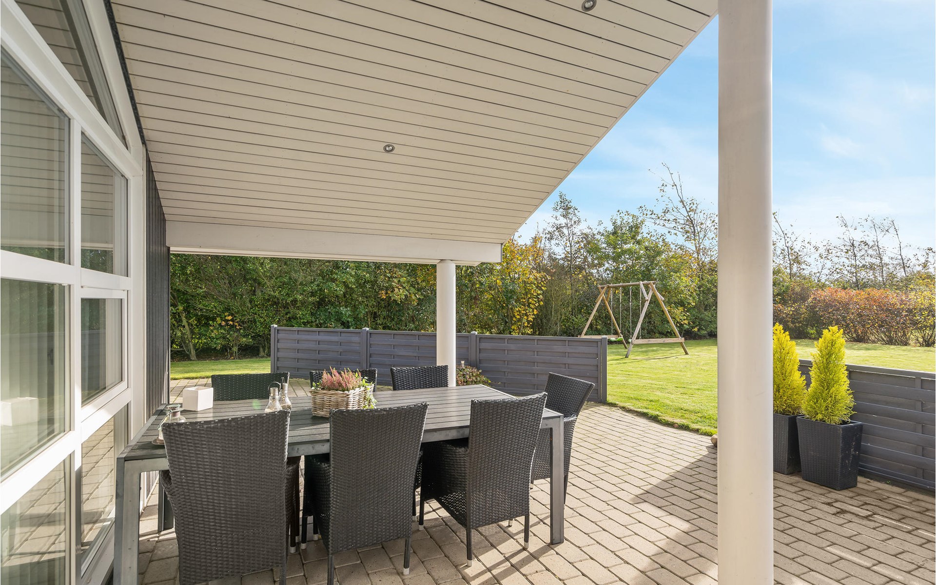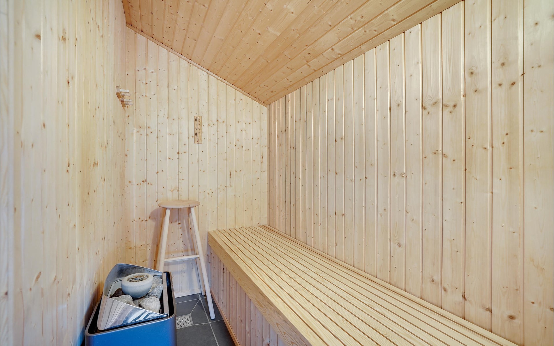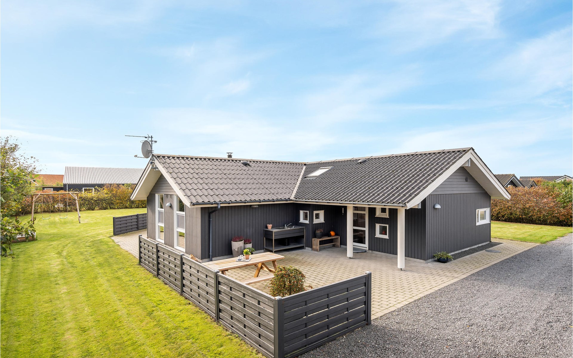 Das schöne Ferienhaus ist besonders gut für einen Entspannungsurlaub geeignet. Es ist komplett ausgestattet und liegt am Ende einer Sackgasse und total ohne Verkehrslärm. Das ungestörte Grundstück mit Windschatten und die drei Terrassen lassen Sie richtig gut die Sonne genießen. Das Haus liegt in der Nähe vom Wirtshaus Fahl, dem Wikingerdorf „vikinge-landsby“ und 800 m vom Fjord. In der Umgebung können Sie herrlich laufen, wandern und Rad fahren. Die MTB-Anlage von Blåbjerg liegt nur 10 km entfernt. Die brausende Nordsee ist nur 8 km weit weg.