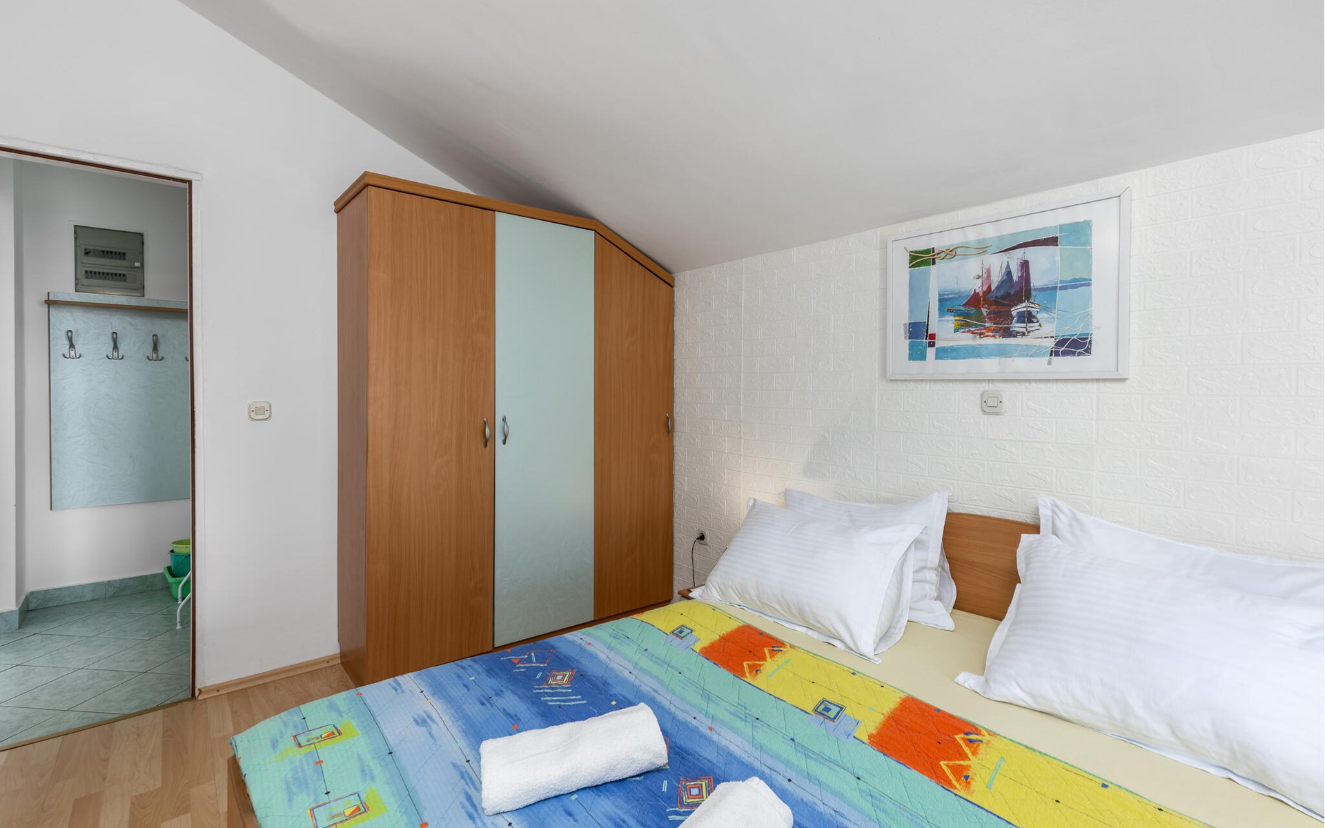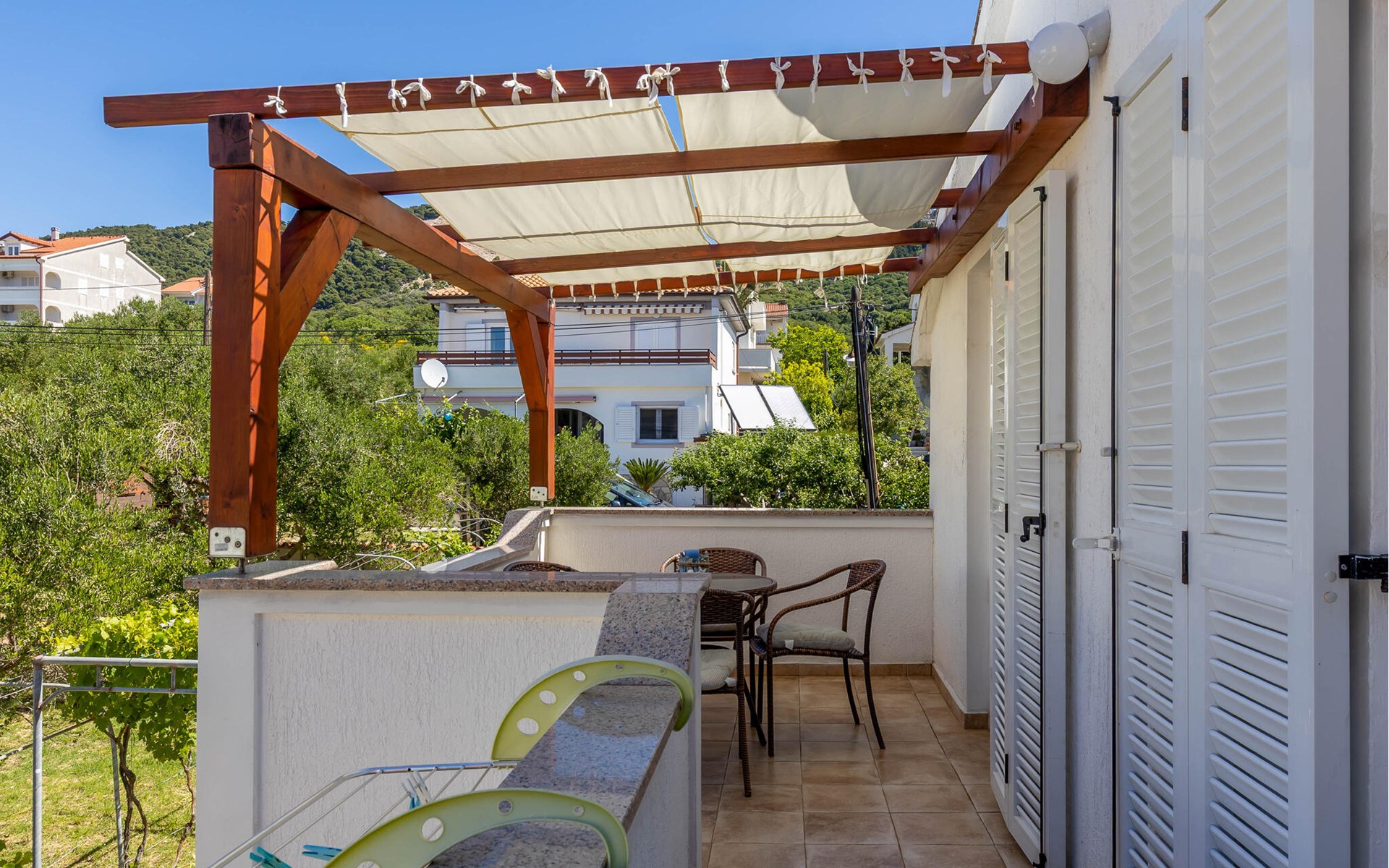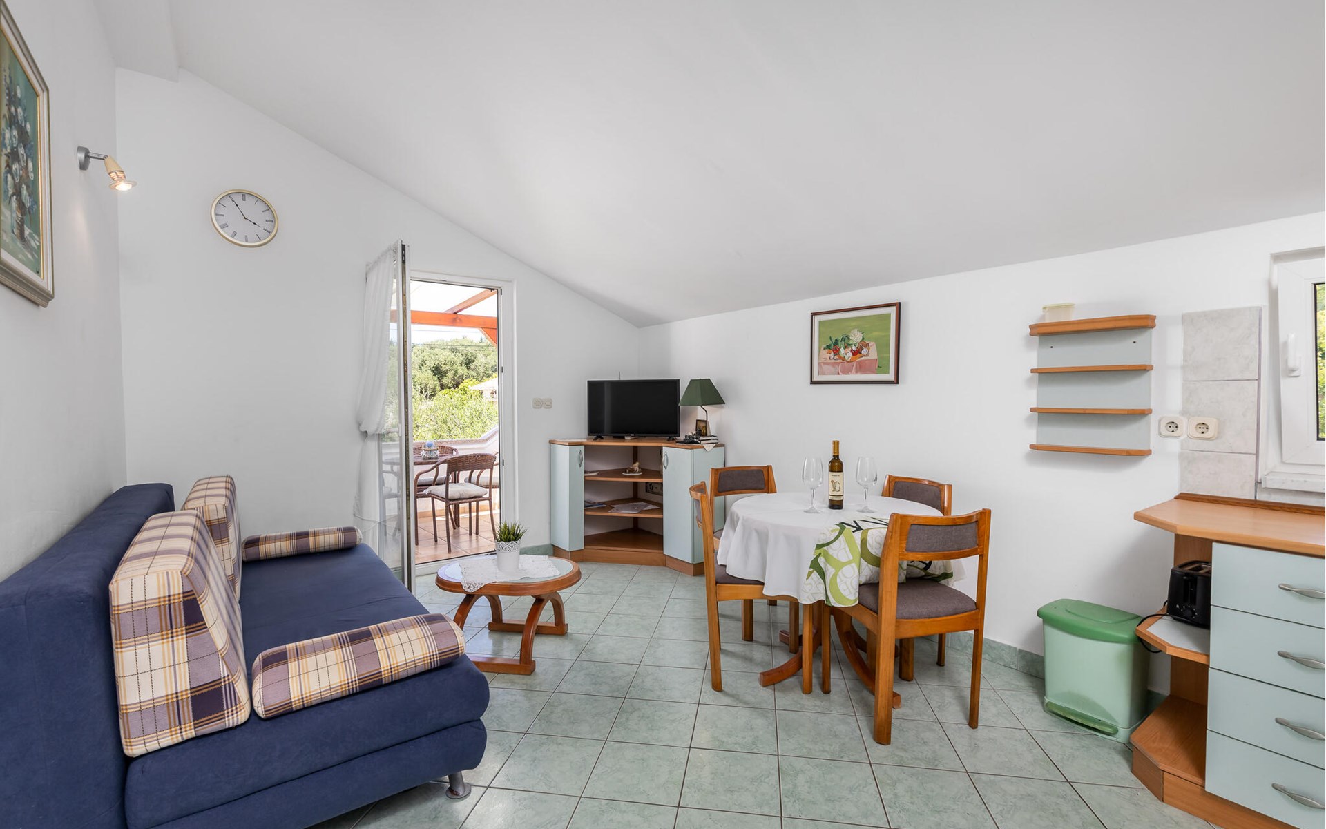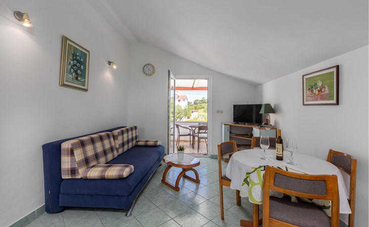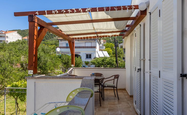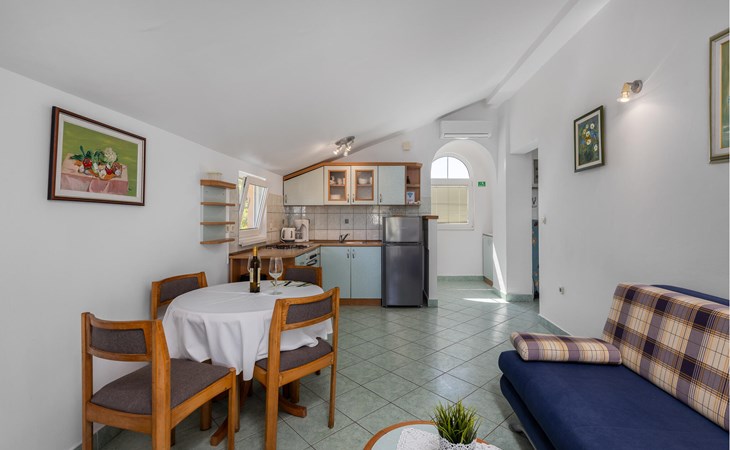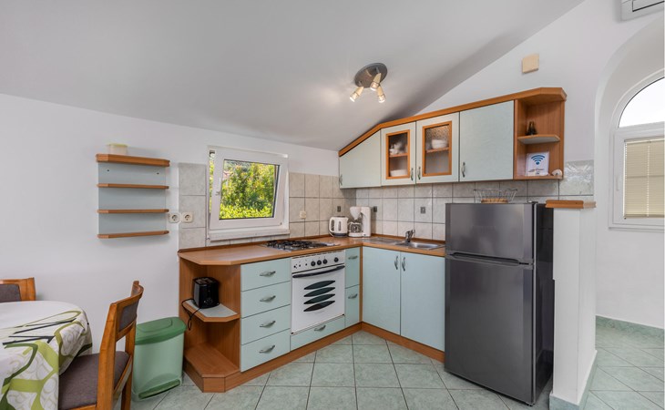 Im ersten Stock eines schicken Hauses befindet sich diese Wohnung, die ideal für eine kleine Familie ausgelegt ist. Obwohl es sehr nahe am Meer liegt, ist dies eine ruhige Gegend, was Sie während Ihres Urlaubs zu schätzen wissen werden. Sie können es sich in der gemütlichen, schlichten Ausstattung wunderbar bequem machen und vom Balkon aus die Sonnenstrahlen in Empfang nehmen. Nutzen Sie den Gemeinschaftsgrill, um auf eigene Faust lokale Spezialitäten auszuprobieren.