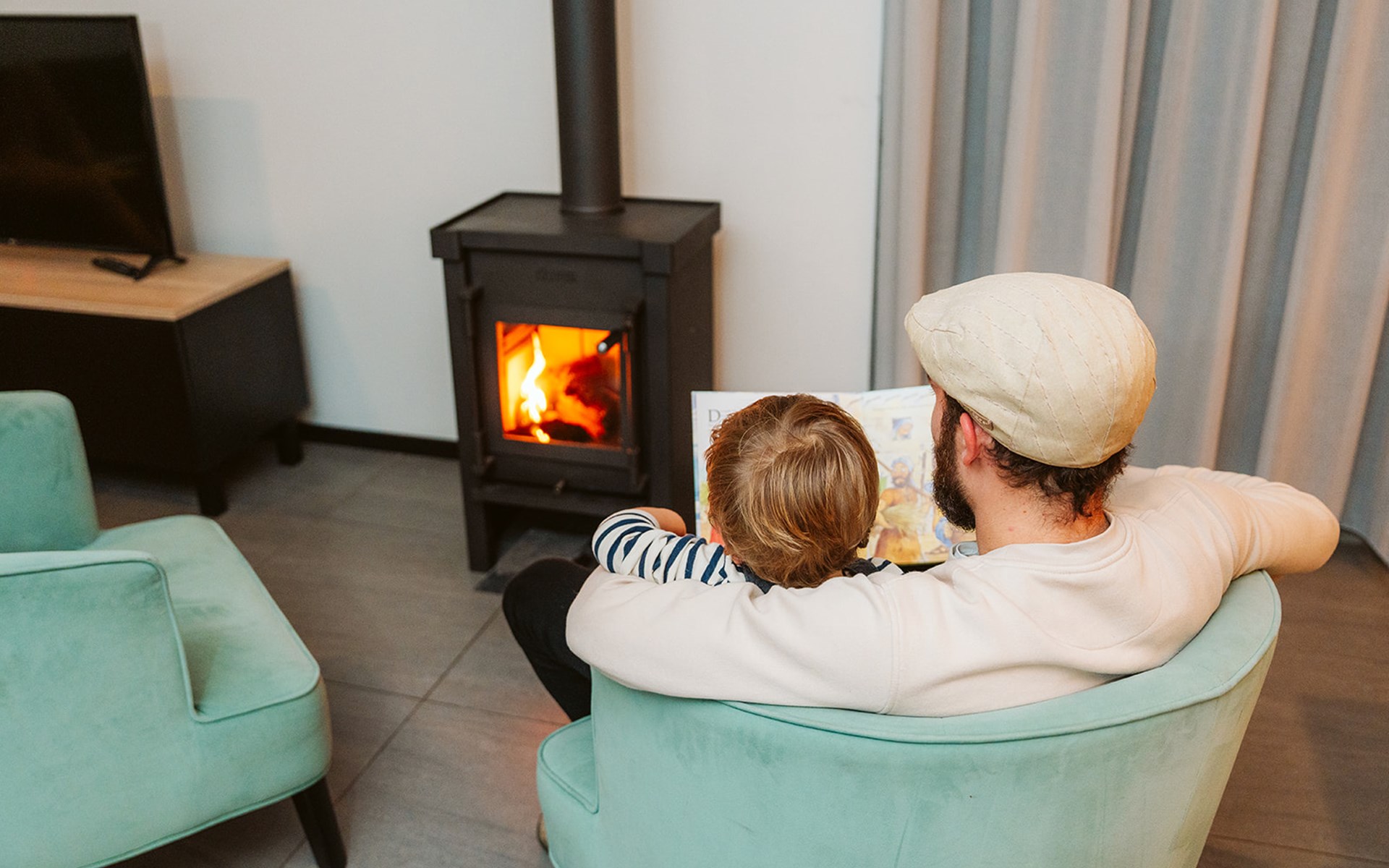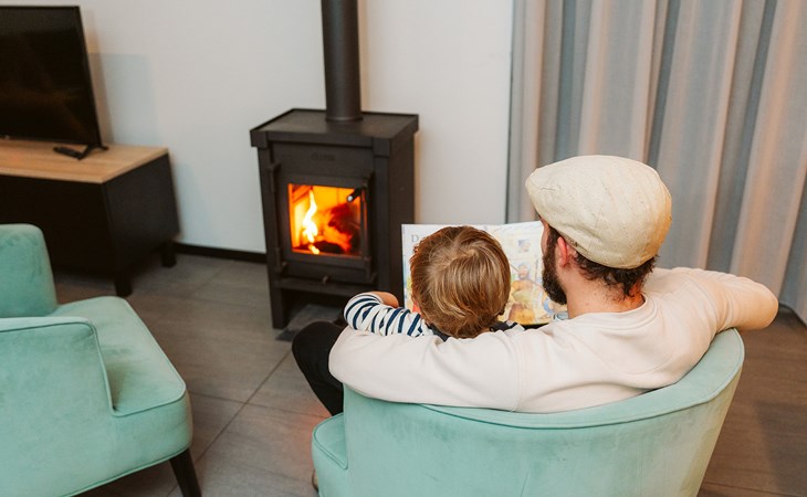 Zeer ruim en comfortabel. Buiten regenachtig, maar binnen gezellig aan de haard.