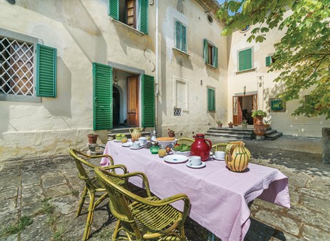 Eingebettet in die mediterrane Berglandschaft der Toskana und von einem romantischen Garten umgeben, wartet dieses charmante Ferienhaus darauf, Sie zu einem entspannten, naturverbundenen Urlaub einzuladen. Kochen Sie leckere Pastagerichte in der modernen, gut ausgestatteten Küche und servieren Sie diese im einladenden Essbereich. Freuen Sie sich auf Spieleabende im gemütlichen Wohnzimmer mit Terrakotta-Böden, Holzbalkendecke und Kamin oder schmökern Sie in einem guten Buch auf dem bequemen Sofa.