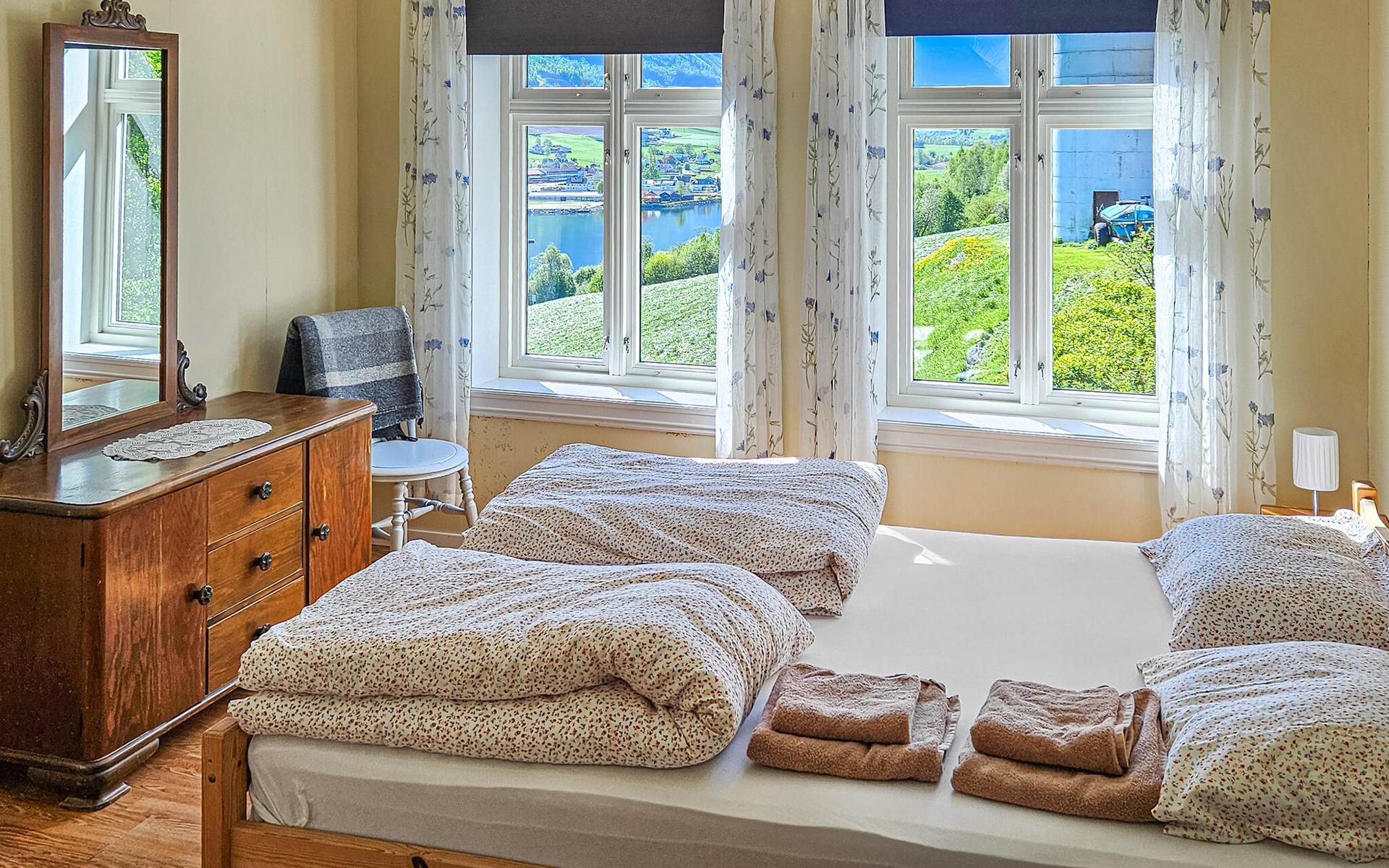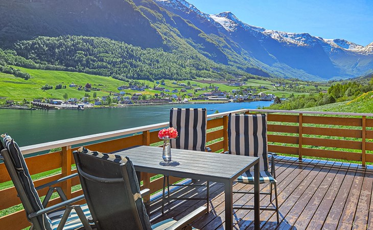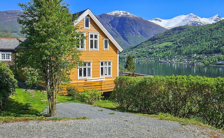 Älteres, modernisiertes Ferienhaus mit großer Terrasse auf einem Hof in ruhiger, schöner Natur gelegen. Panoramaaussicht. Gute Wandermöglichkeiten im Wald und in die Berge. Angelmöglichkeiten im Fjord und See. Guter Ausgangspunkt für Autotouren u.a. zum Gletscher Brikdalsbreen, Geiranger, Vestkapp und Stryn-Berge. Mit der Luftseilbahn Loen Skylift erreichen Sie schnell 1.011 M.ü.N.N., allwo Sie direkt in ein Restaurant mit Glaswänden einsteigen, welches eine phantastische Aussicht über Gewasser, Fjord und Berge anbietet. Sonst empfehlen wir Wanderungen auf den vielen markierten Pfaden in der Gegend sowie Klettern bei Via Ferata. Nachbar: 30m.