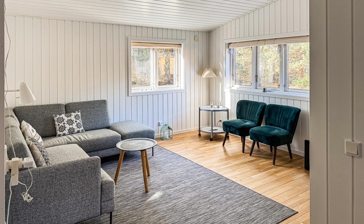 Ihr gepflegtes und freundlich eingerichtetes Ferienhaus erwartet Sie inmitten eines ruhigen Naturgrundstücks. Verbringen Sie entspannte Tage mit der Familie und profitieren Sie von der Nähe zum Strand. Das Haus überzeugt mit einem hellen, zeitgemäßen Einrichtungsstil. Nutzen Sie den offenen Wohn- und Essbereich für gemeinsame Stunden und bereiten Sie Ihre Mahlzeiten in der modernen Küche zu. Die gemütliche Sofaecke lädt zum Ausruhen in dieser freundlichen Atmosphäre ein. Für wohltuende Wärme sorgt die hauseigene Sauna, ideal zum Entspannen nach einem Tag an der frischen Luft. Auch für Unterhaltung ist gesorgt. Spielen Sie eine Runde Tischtennis mit der ganzen Familie.