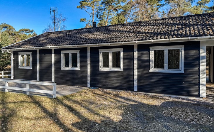 Der Außenbereich bietet viel Privatsphäre und Platz zum Durchatmen. Die große Terrasse umgibt das Haus und ist mit Gartenmöbeln ausgestattet. Genießen Sie Ihre Mahlzeiten unter freiem Himmel, lesen Sie ein Buch in der Sonne oder lassen Sie einfach die Ruhe auf sich wirken. Das idyllische Naturgrundstück grenzt direkt an den Wald.