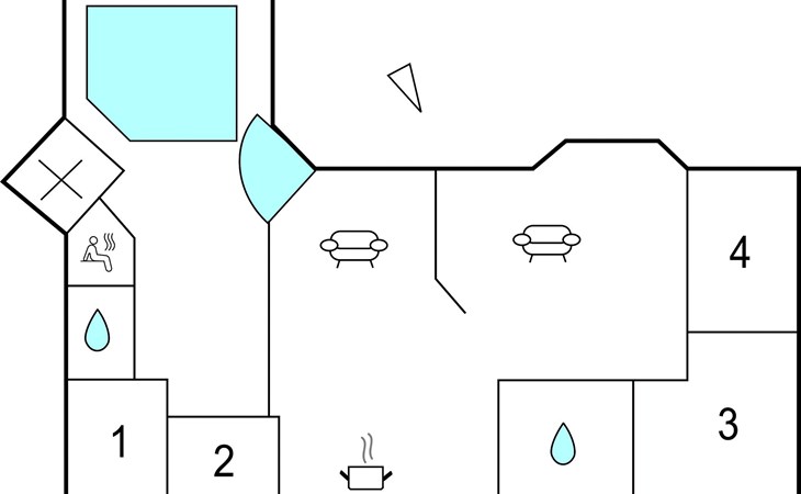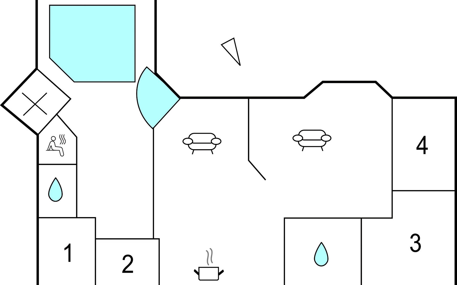 Since the house is divided into two sections, each with 2 bedrooms and a bathroom, it is well suited for 2 families. The pool has a swimming trainer. If you prefer to relax, take a dip in the jacuzzi or have a sauna session, after which you can make yourself comfortable in front of the TV - of course with a fire in the stove.