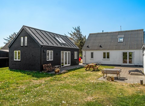 You want a relaxing vacation with your loved ones without sacrificing comfort, coziness and design? Then you are exactly right here! Arrive with your extended family and several families of friends and feel right at home. The large living room skillfully combines get-togethers for cooking, playing and relaxing and enjoys plenty of natural light through the large and numerous windows. Make yourself at home here and after restful nights in the bedrooms, come together for breakfast and freshly brewed coffee on the covered terrace.