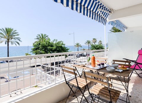Enjoy a beautiful panoramic view in this bright vacation apartment by the sea.