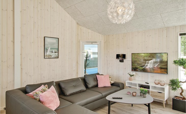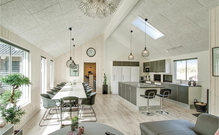 On the north coast of Djursland, in Fjellerup, in a wonderfully undisturbed, enclosed vacation area, this large vacation home with swimming pool and whirlpool awaits you. Here you can spend an unforgettable vacation where no one has to be bored. Enjoy life in the large living room, which is practically open connected with the kitchen. There are pleasant bedrooms and modern bathrooms. Relax on the terraces, where you can choose between sun, shade and windbreak, or go to the beach, where there is plenty of space to lie in the sun all day. Here every day the trawlers come by with their fresh catch. In the area there are many forests, castles and small roadside stands where you can buy freshly harvested fruits and vegetables. Also take a trip to Djurs Sommerland with many activities for the whole family. In the cozy trading town of Grenå you can take a walk across the square in front of the church or along the harbor, and watch the sharks in the Kattegat Center.