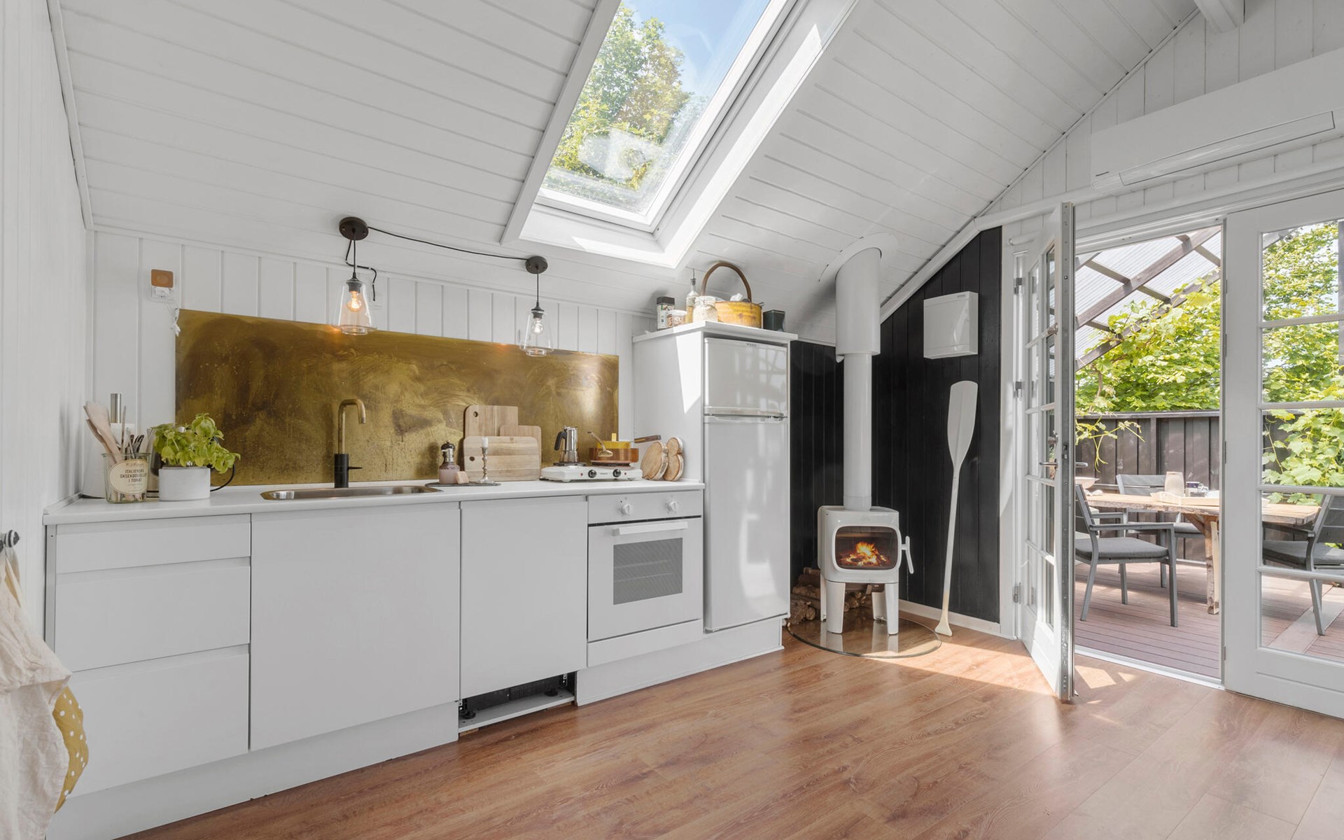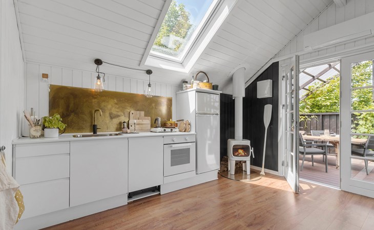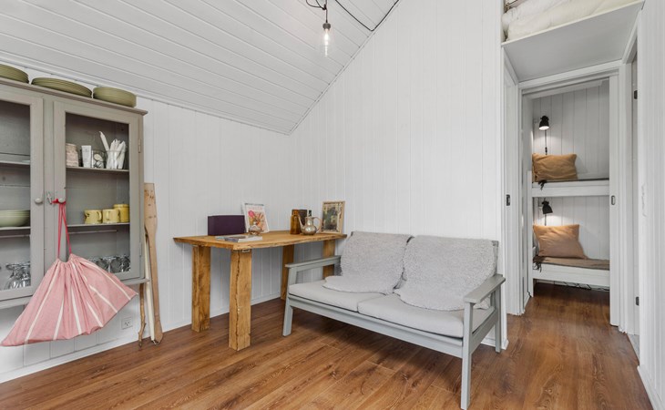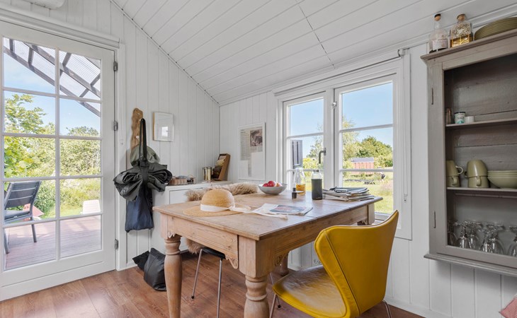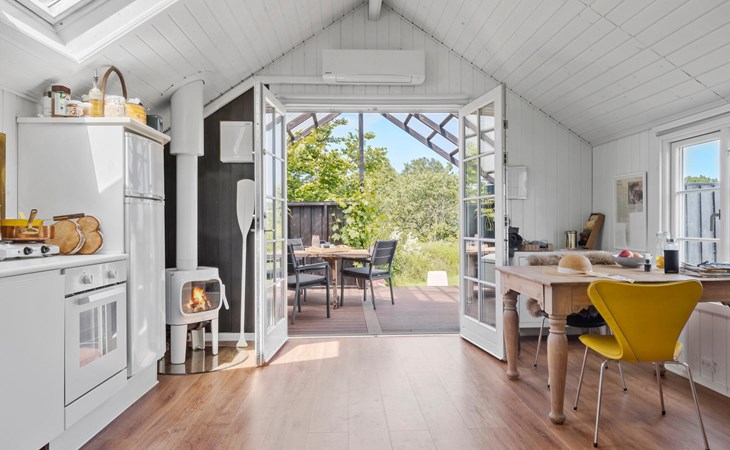 Your holiday home on Djursland is ideal for anyone who values a natural environment. Enjoy the quiet location and the uncomplicated style of the house. The open-plan living room is bright and functional. Make yourself comfortable on the small sofa, prepare your holiday meals in the open-plan kitchen or sit together at the table with a view of the greenery. Loving details add a personal touch.