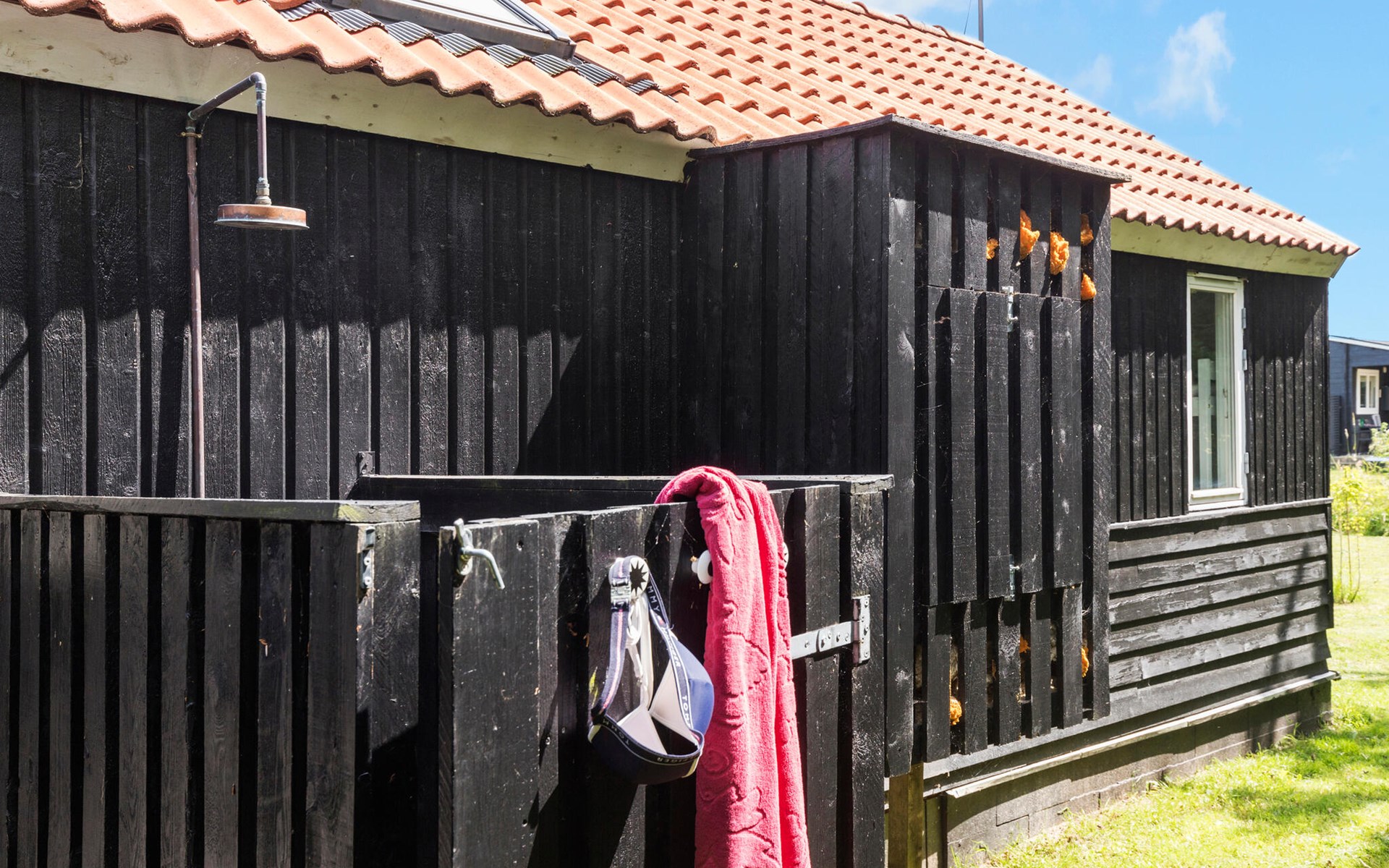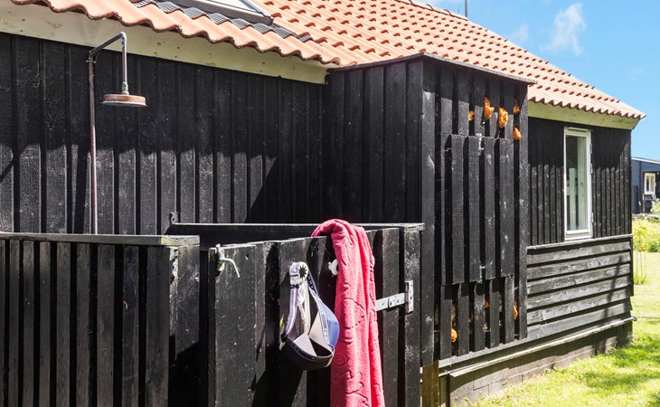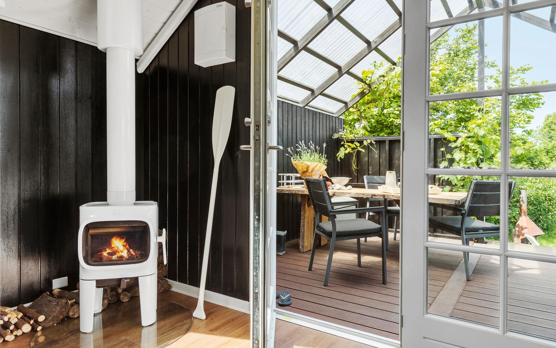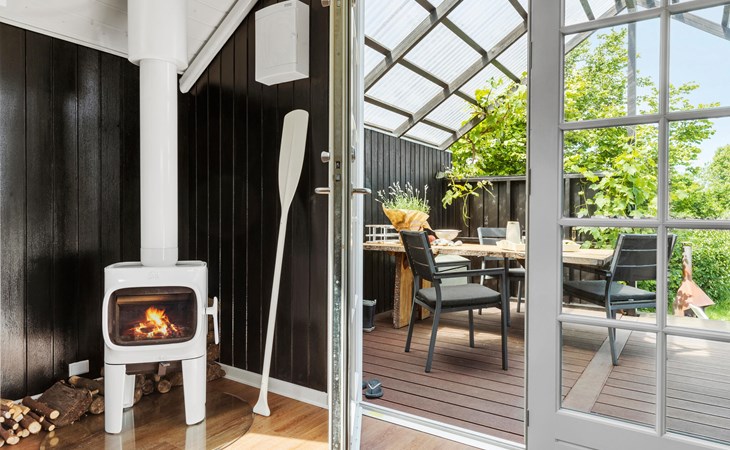 Spend your days outside on the covered wooden terrace. Take a seat at the table, enjoy your meals in the fresh air or lean back in one of the garden armchairs. Make use of the small sun terrace with sun loungers or gather wood for a cosy campfire in the evening. A practical outdoor shower is ideal for warm summer days, and a shelter hut is also available.