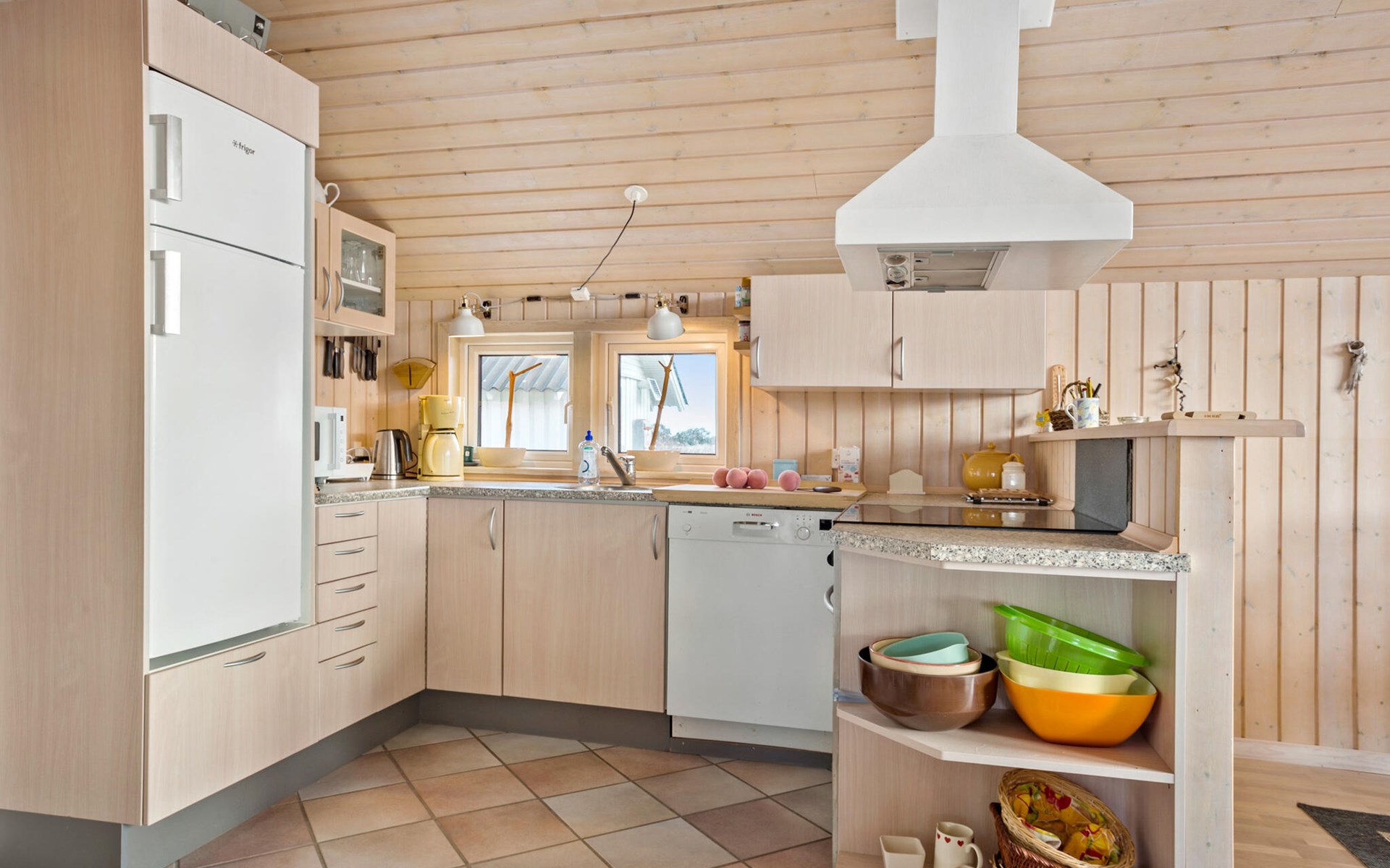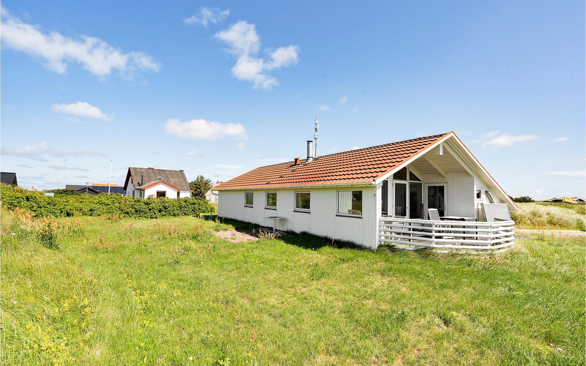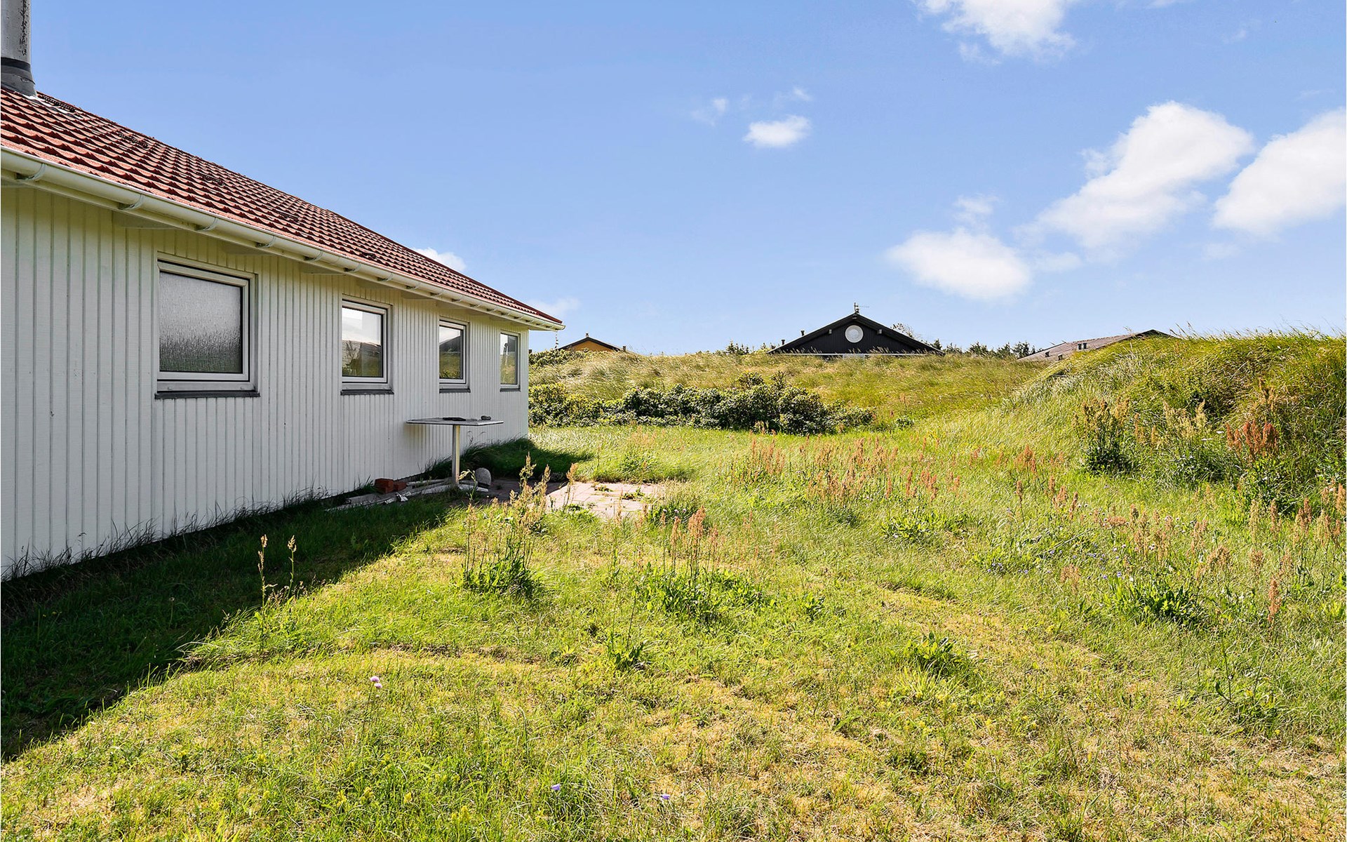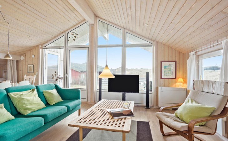 From the terrace you can look out over the hilly surroundings and the houses in the neighborhood. The Lild Plantage forest stretches along the coast, where heather and coniferous and deciduous trees grow along well-maintained forest paths. Jammer Bay with its magnificent hilly landscape invites you to take refreshing walks with magnificent views from the peaks. The enormous natural forces that have created the Jammerbucht have also produced the impressive dune formations that adjoin the kilometer-long sandy beach. So enjoy the wonderful bathing life on the beautiful sandy beaches between Bulbjerg and Blokhus. Take your bath towel and sunscreen under your arm and find a nice sunny spot on the beach. If it gets too warm, the waves rolling in offer refreshing cooling, as the water quality here is excellent.