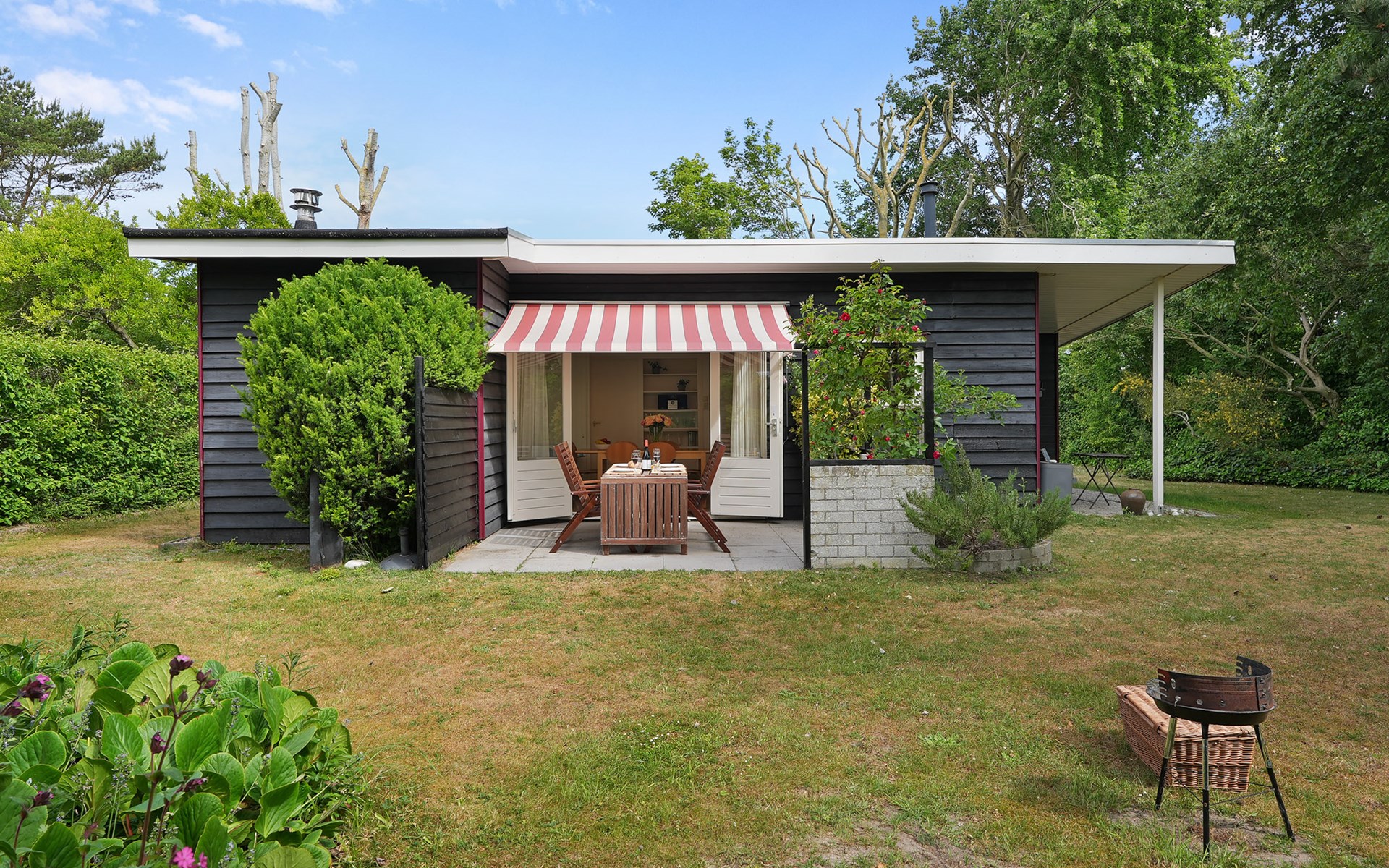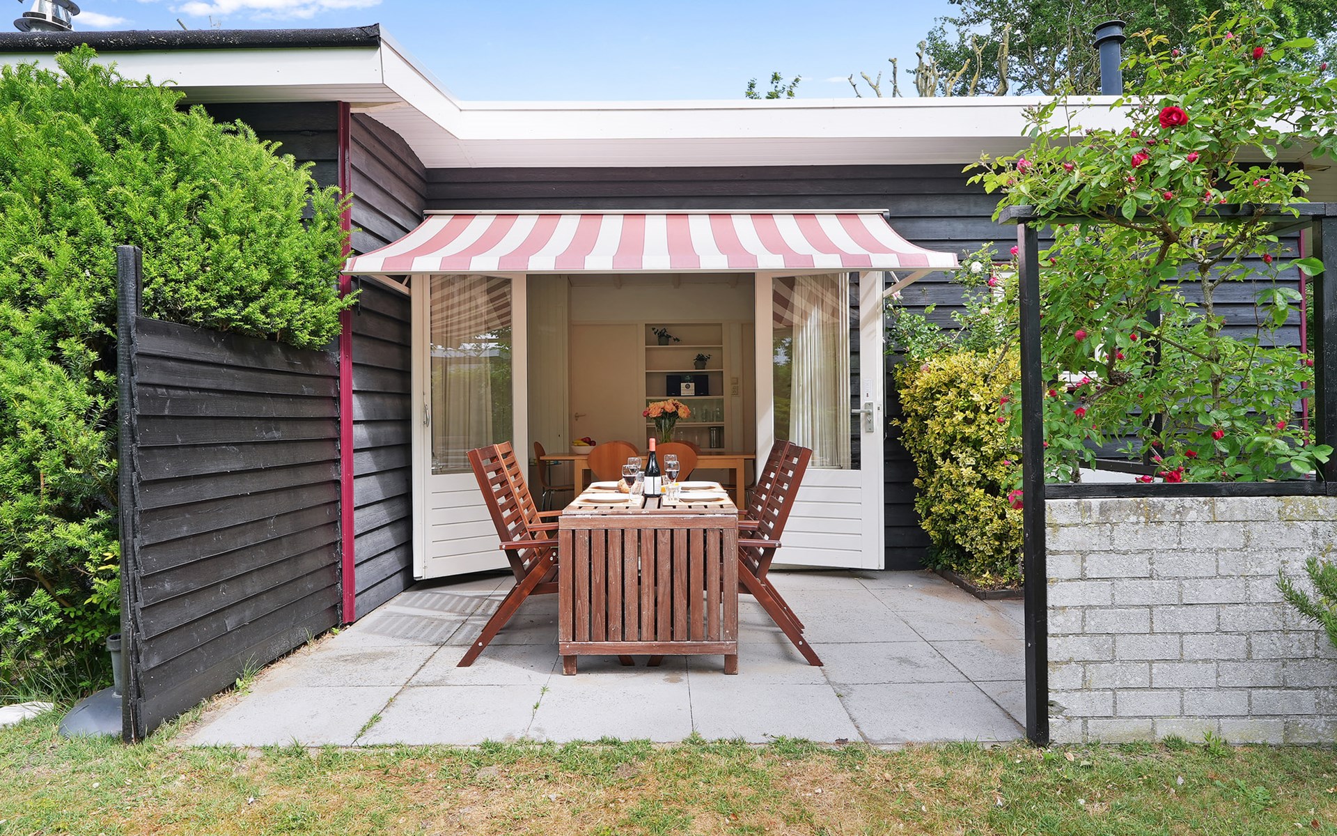 The house has a large green garden surrounding it, offering both sunny and shady spots. You can easily park two cars on the property, providing extra convenience. Its location close to the park entrance makes arrival and departure easy, especially for families with children. A lovely holiday home for a carefree stay!