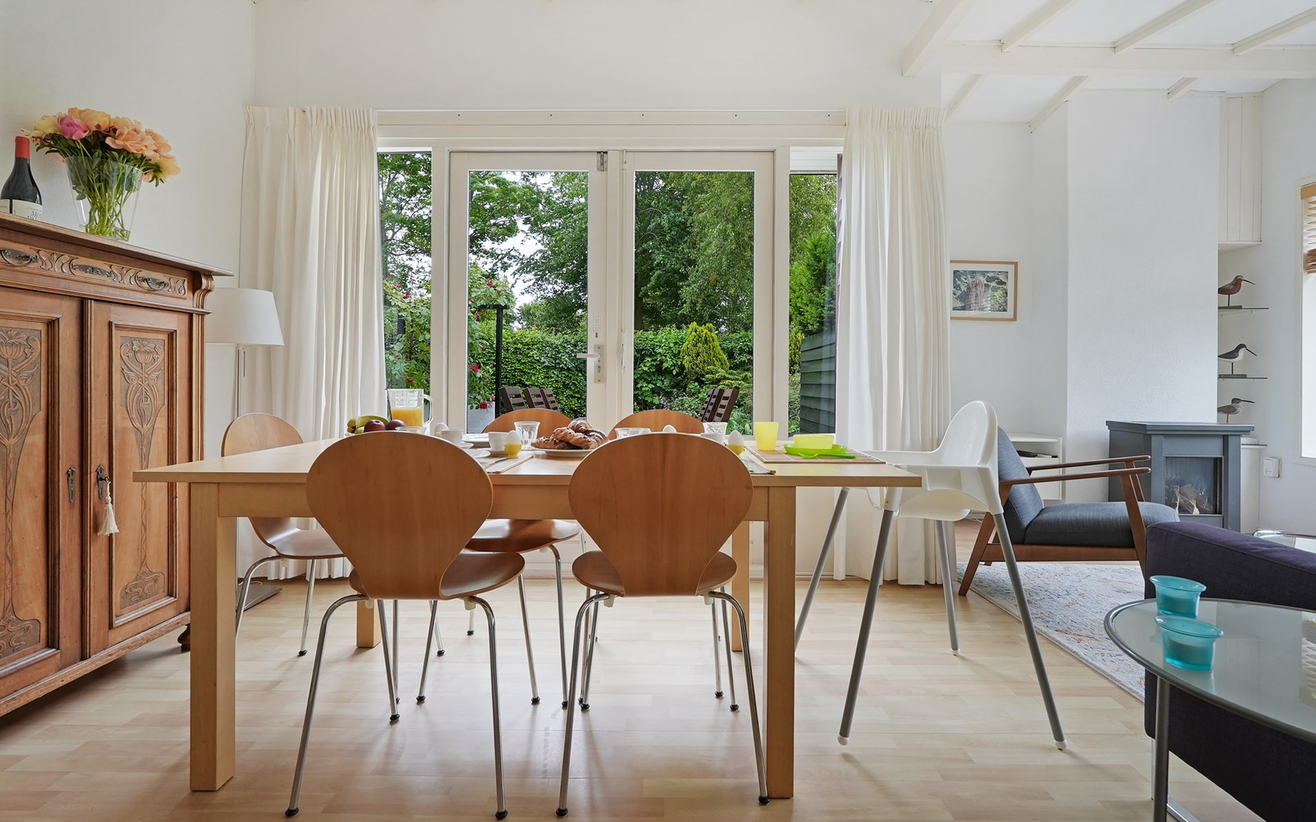 Prinsenhof 88 is a ground-floor, child-friendly holiday home with a spacious layout and practical setup. As you enter through the front door, you step into the well-equipped kitchen, which leads to the bathroom, separate toilet and living room. The living room features a cosy seating area, gas heater, TV, wifi and French doors to the garden. There are two bedrooms with comfortable beds and plenty of storage space. The separate utility room includes a washing machine, dryer, extra fridge and useful extras like a high chair and baby changing mat.