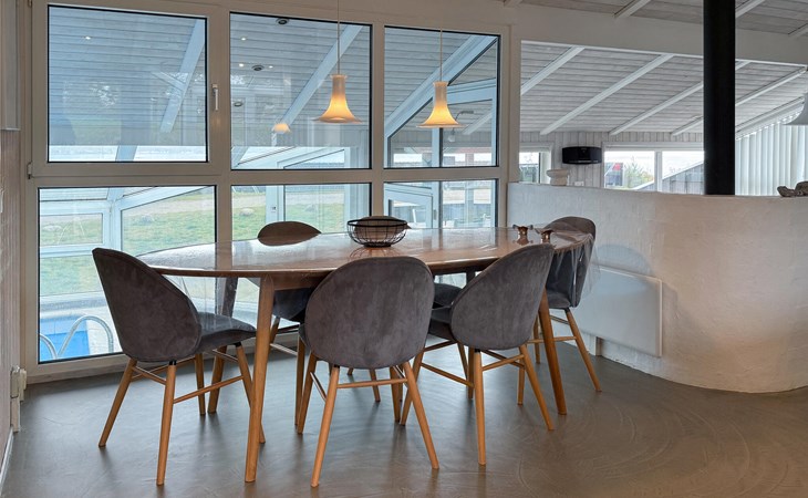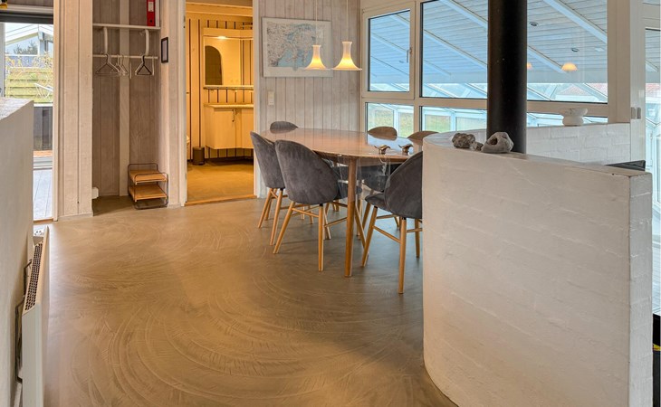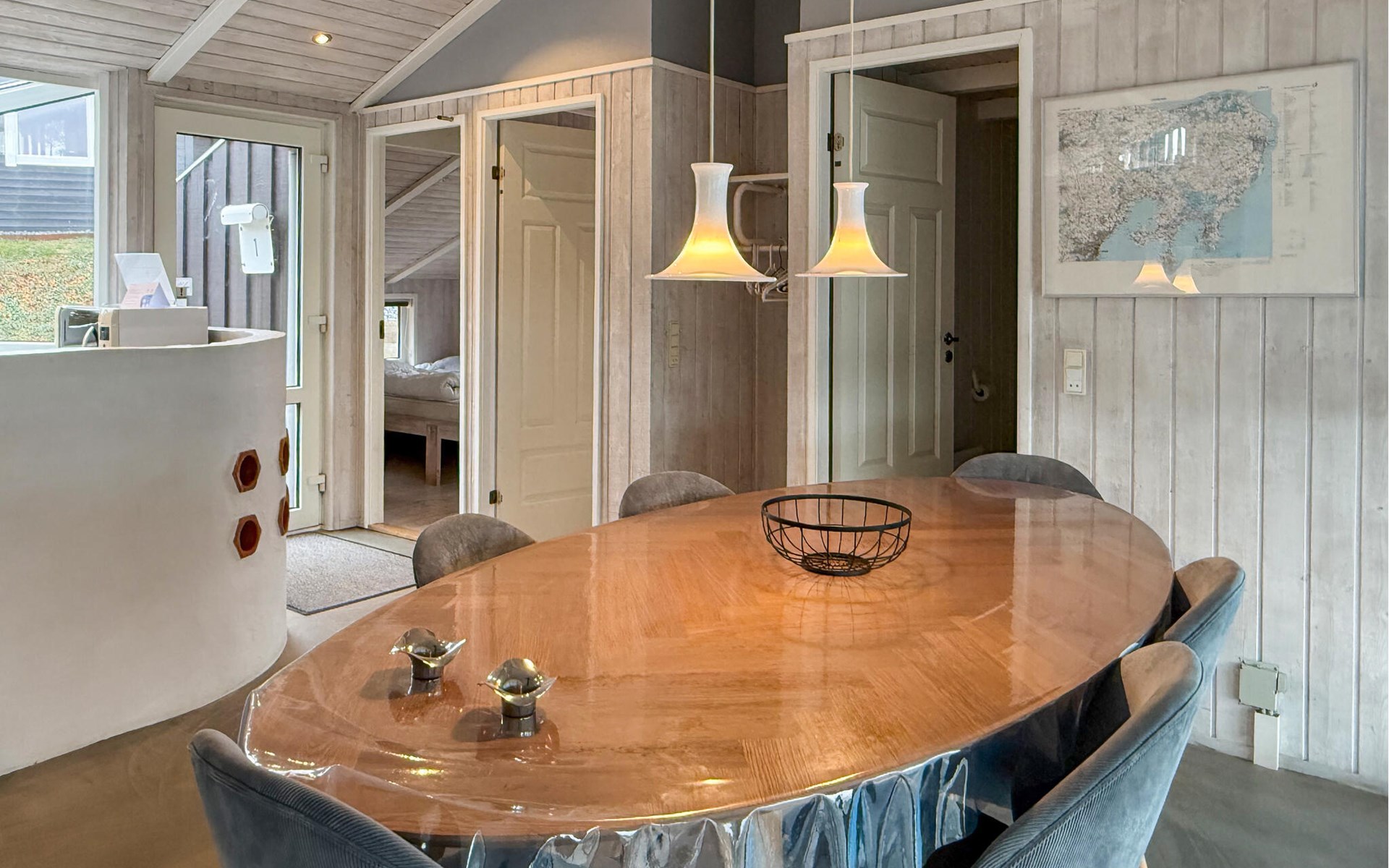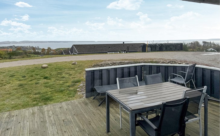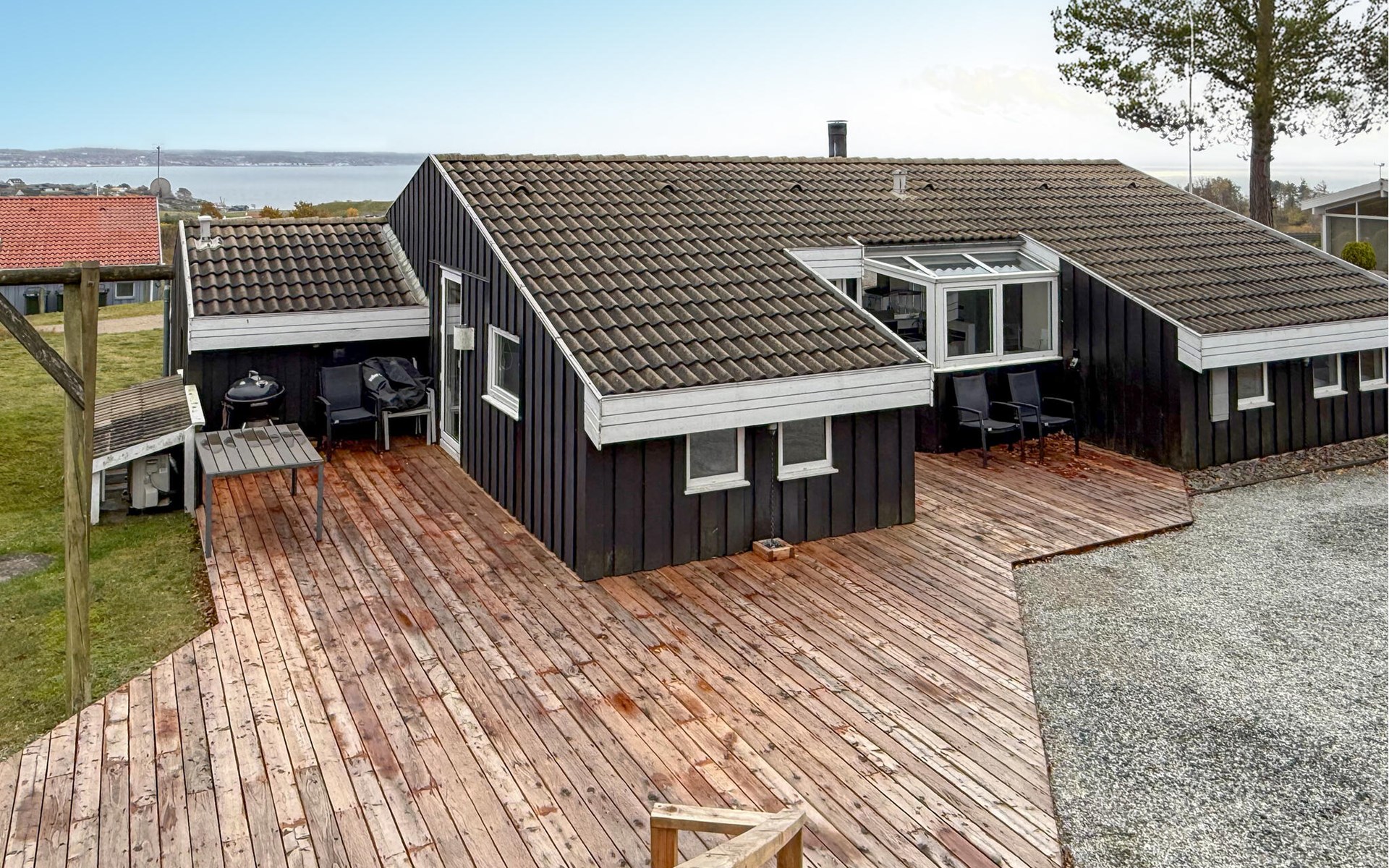 The unique view over the whole bay is best enjoyed from the beautiful viewing terrace. On a clear day you can see as far as the northern tip of Samsø. From the living room you have a view of the beach and Ebeltoft. The house was modernized in 2000 and appears as new. It is modernly furnished and has the latest technical comforts, such as low electricity consumption and air conditioning. In addition, it has 2 bathrooms with floor heating. The house is located in a very popular area with good beaches and several good restaurants. Possibilities for long cycling and walking tours in the large area of natural beauty bordering Handrup Bakker.