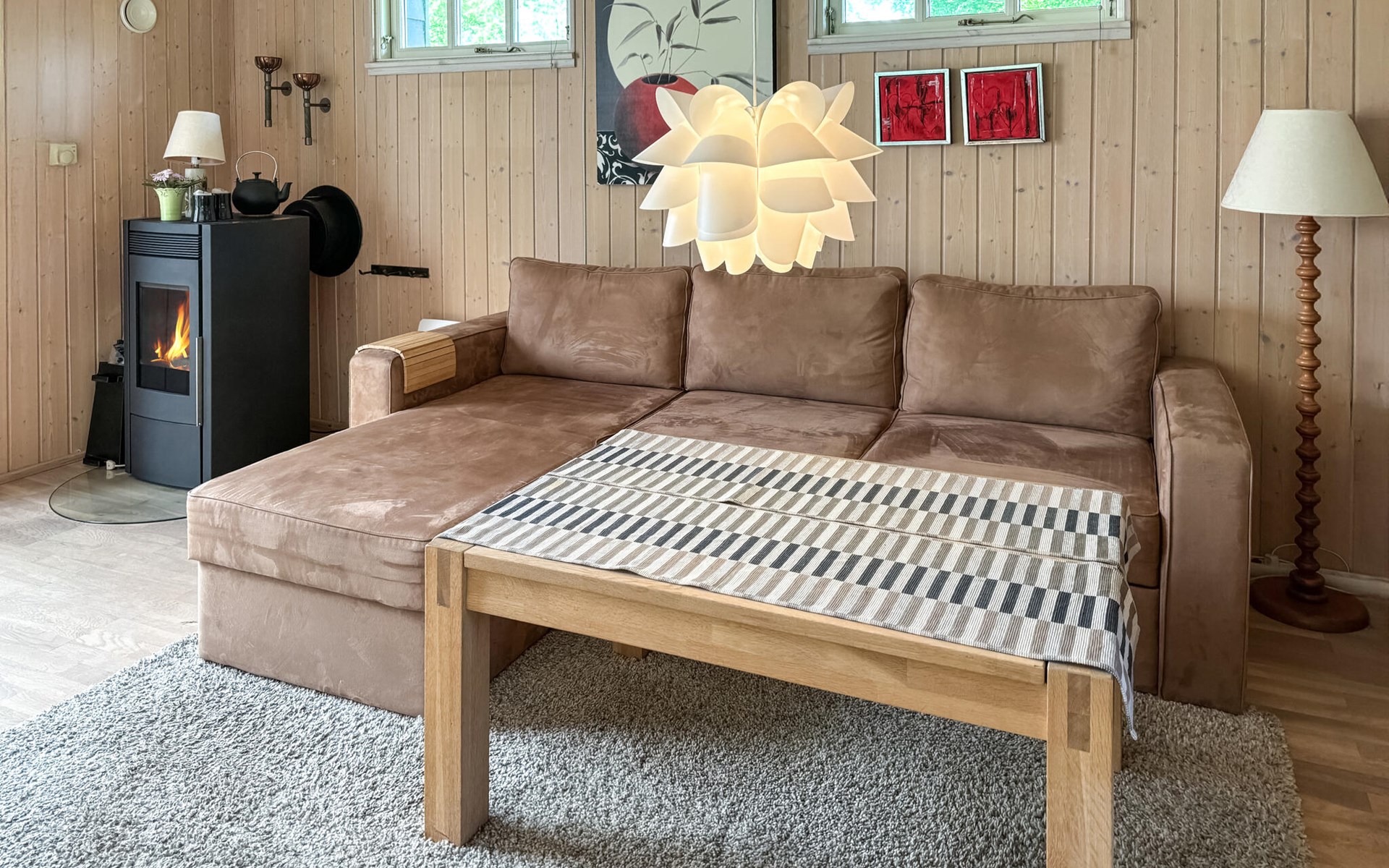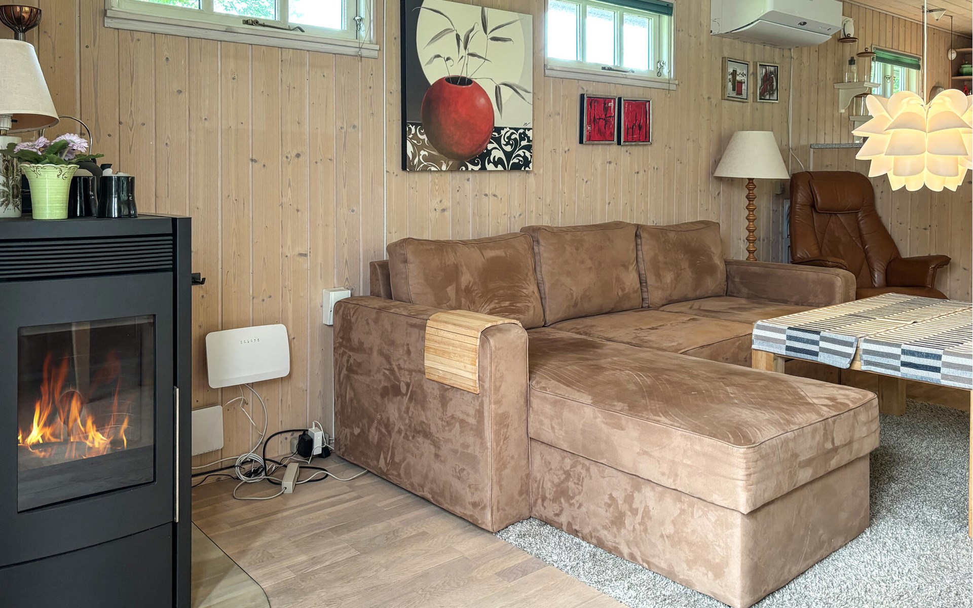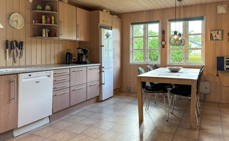 Pure cosiness and a real feel-good atmosphere welcome you to this beautiful holiday home not far from the fjord. Look forward to convivial cooking evenings in the cosy kitchen and cheerful games evenings in the cosy living room, while the wood-burning stove crackles softly. Those seeking peace and quiet will find cosy retreats with a view of the greenery for relaxing hours of reading.