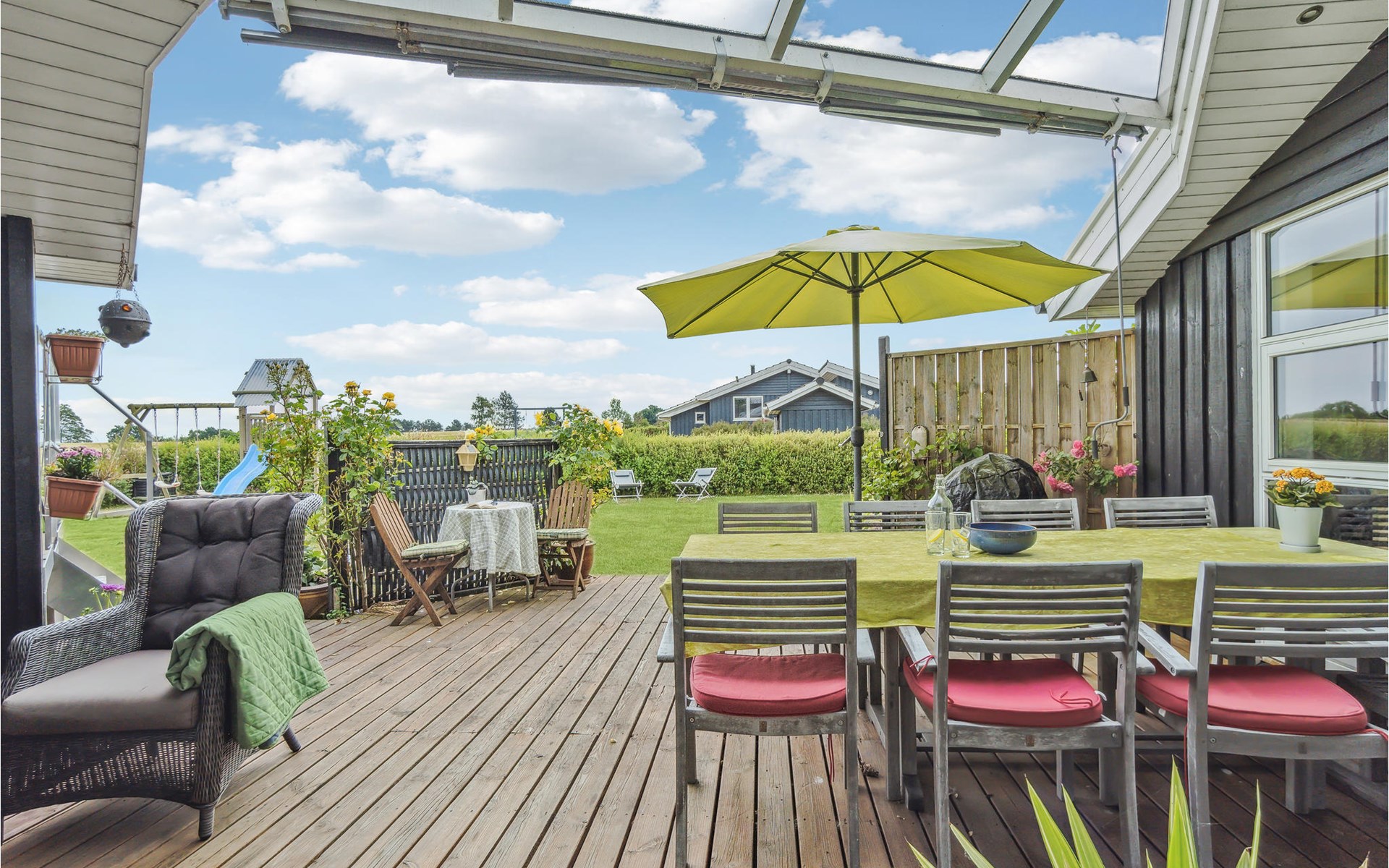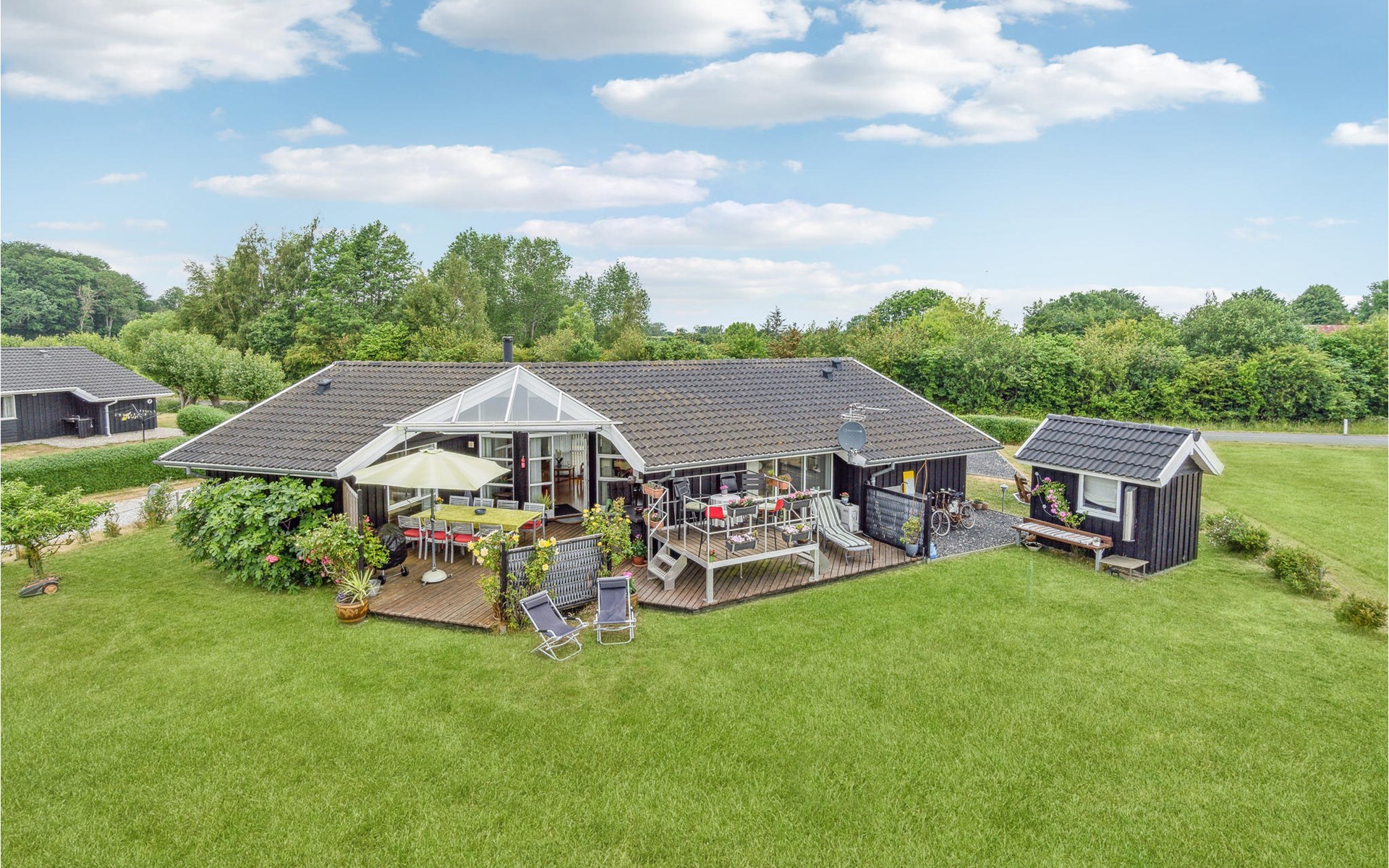 The beautiful island of Langeland is a wonderful vacation destination. The most beautiful child-friendly beaches are here, they have a beautiful blue water and are available for the whole family and their beach activities. This beautiful and very well furnished vacation home is located in the attractive vacation home area of Spodsbjerg, close to the beach. The landscape here is famous for its beauty and tempts you to take relaxing walks and bike rides. From the cozy harbor in Spodsbjerg goes a ferry to Lolland. Good fishing grounds can be found along the coast, in various Put&Take lakes and on the sea. The charming Rudkøbing is only 10 km away, where charming buildings and winding cobblestone streets invite you to stroll.