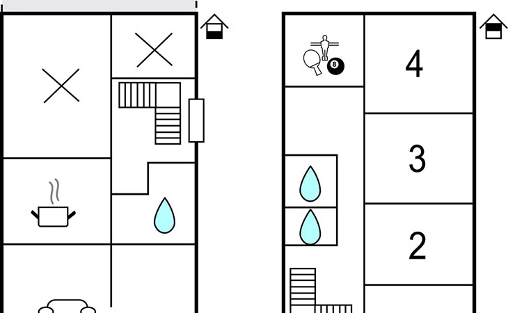 The cottage is spread over two floors and offers space in 4 bedrooms, 2 bathrooms, a kitchen, a living room and a separate toilet. The heart of the house is the living room with fireplace, where you can light a fire in the fireplace on cool days and spend a quiet evening with the cozy fire in the background.