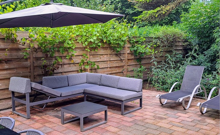 Relax on the stylish terrace, which is equipped with modern seating furniture, sun loungers and a parasol. The well-tended garden with shrubs and shady trees offers an oasis of calm. Be inspired by nature or enjoy a meal outdoors.