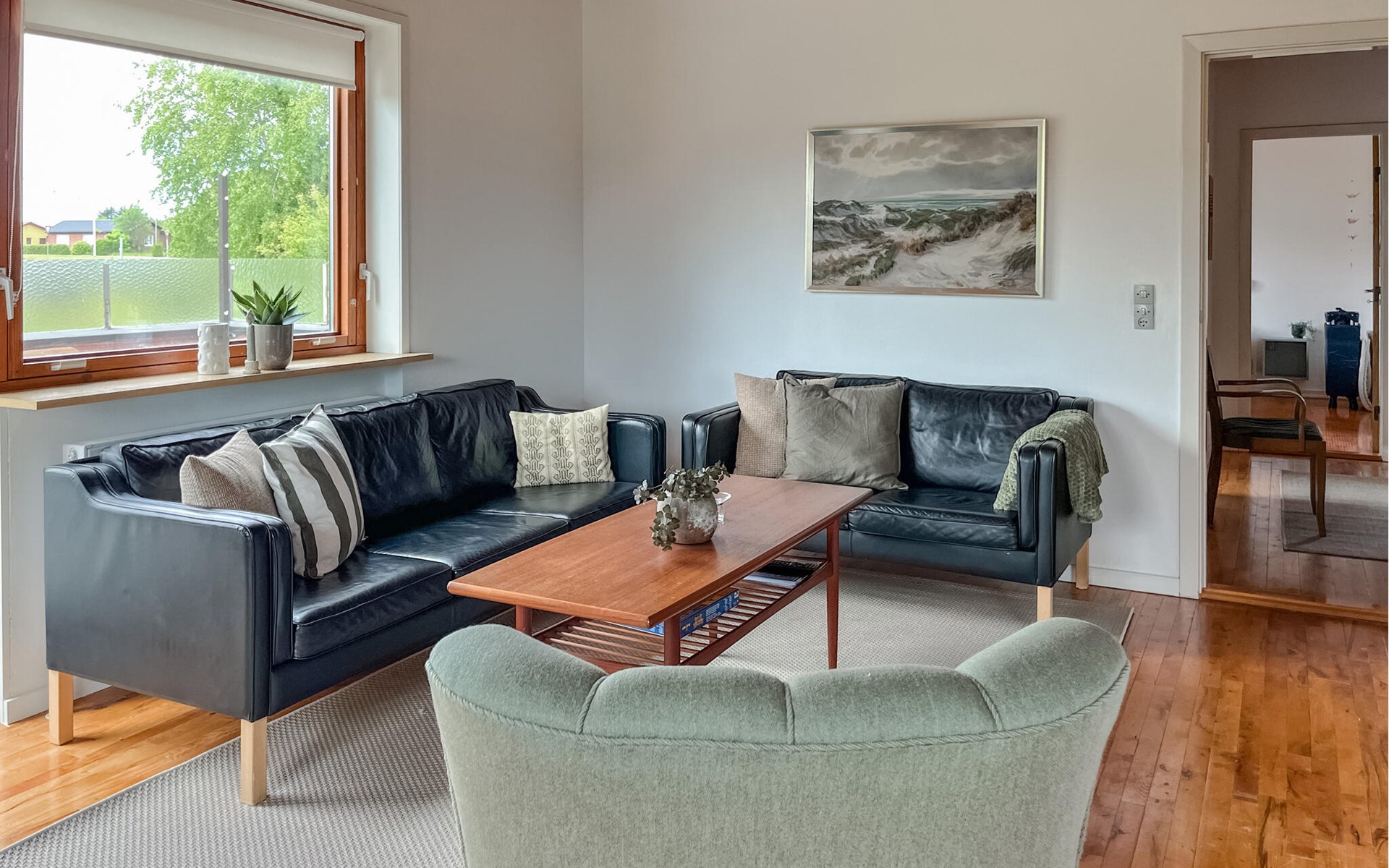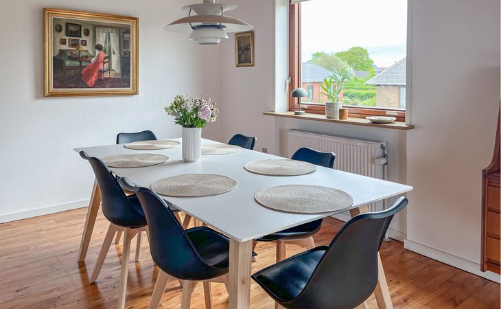Bright, cosy rooms welcome you to this holiday home, where you can make yourself comfortable with your loved ones. Conjure up delicious meals together using fresh ingredients from the farm shop, plan your adventures over cheerful meals in the inviting dining room and get together for a cosy games evening after a long day in the fresh air.