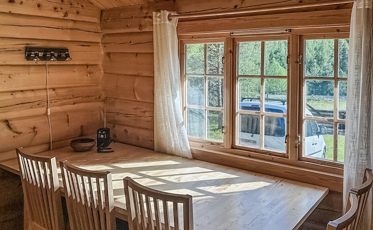 Experience a relaxing holiday in this rustic holiday home near Lake Savalen. The cosy wooden house with a green roof offers plenty of privacy and is ideal for families or small groups who appreciate peace and nature. Relax in the central living area with comfortable sofas, wood-burning stove and TV. Enjoy meals together at the dining table or read a book in the cosy, warm wooden atmosphere.