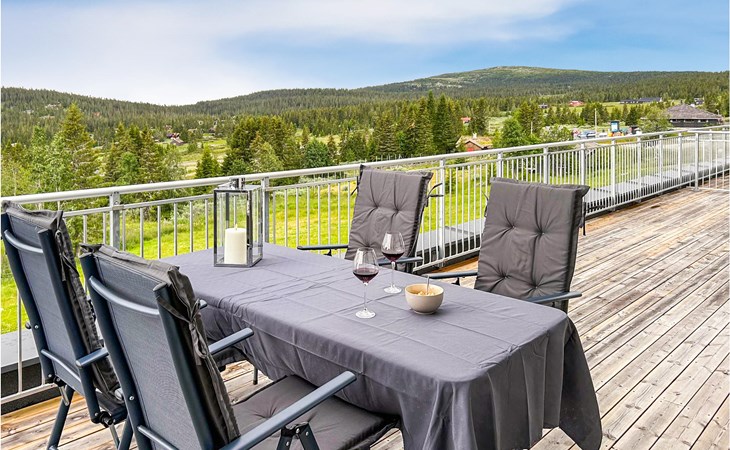 Look forward to this great apartment in Nevra on Nordseter. The apartment is modern and very well equipped and is located on the 3rd floor. Enjoy the welcoming ambience of the bright and airy accommodation and relax after active days watching TV or playing games in the living room. In summer you can enjoy your meals with a beautiful view on the terrace and make plans for your activities. In the complex there is a shared fitness center, sauna, lounge and grease shed, so nothing stands in the way of your sporty vacation.