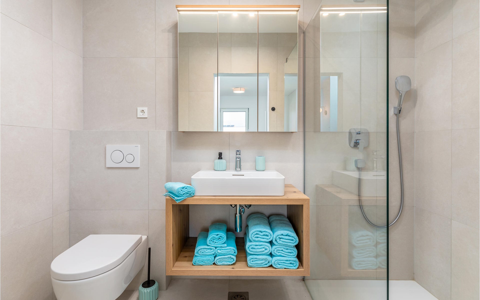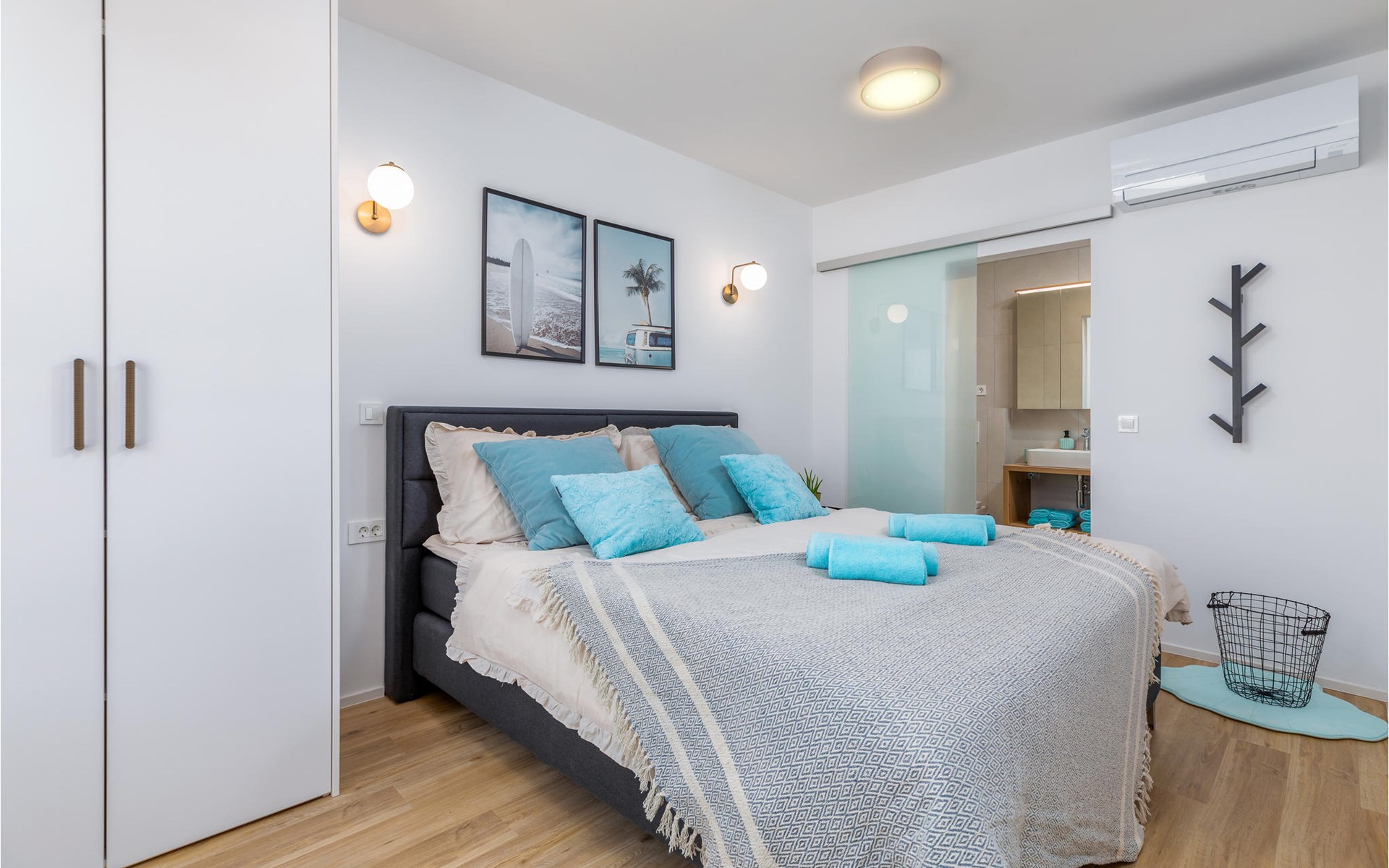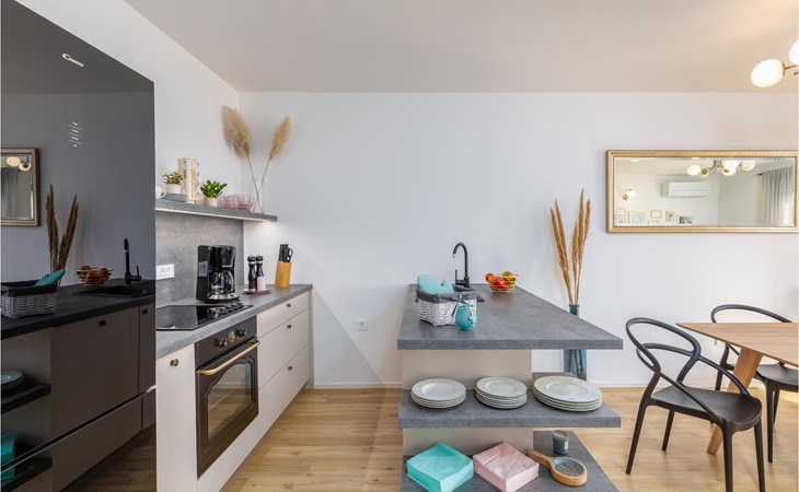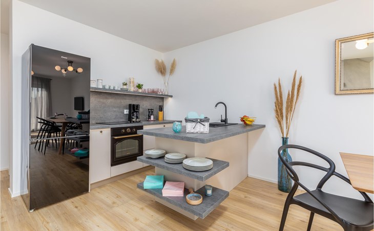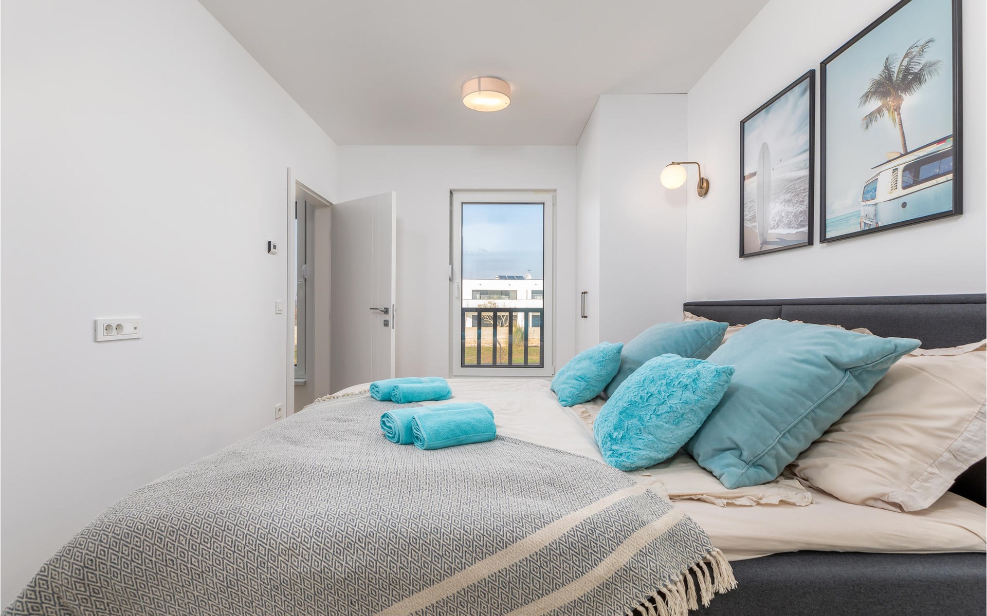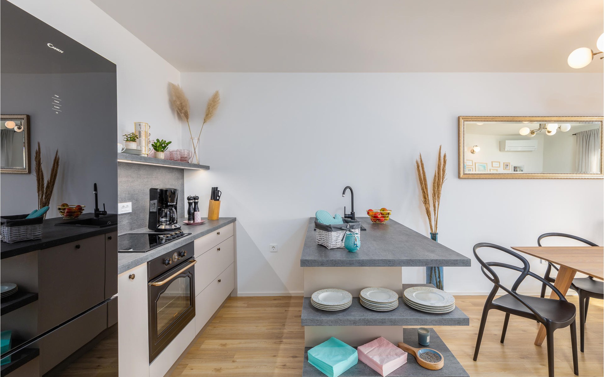 The house is spread over two floors and is furnished in a modern and high quality. On the 1st floor are the 2 bedrooms and bathrooms and from here you have sea views. The center of the house is the open kitchen with dining and living area, where you can prepare delicious meals together and spend sociable evenings.