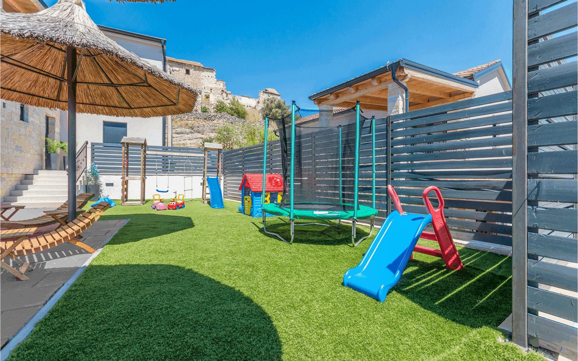 Enjoy the fantastic view from the garden, which invites you to relax with a heated pool, sun loungers, a children's play area and an outdoor barbecue, perfect for families or evenings with friends. Several terraces offer you lovely places to relax, drink coffee and read.